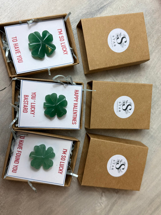 Lucky in Love - Valentines Clover Carving - four leaf clover