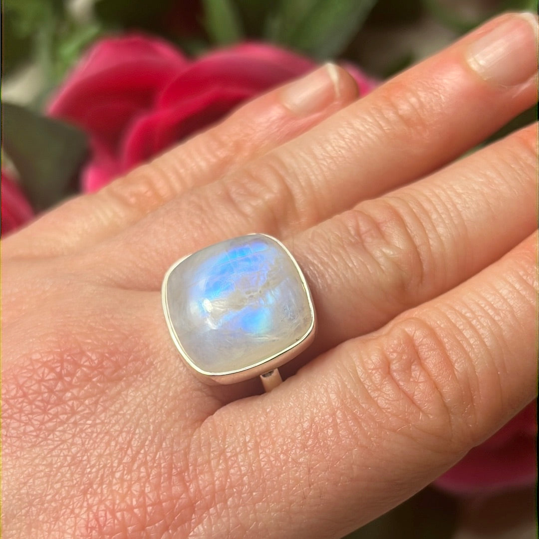 Rainbow Moonstone AA GRADE 925 Sterling Silver Ring - Size S