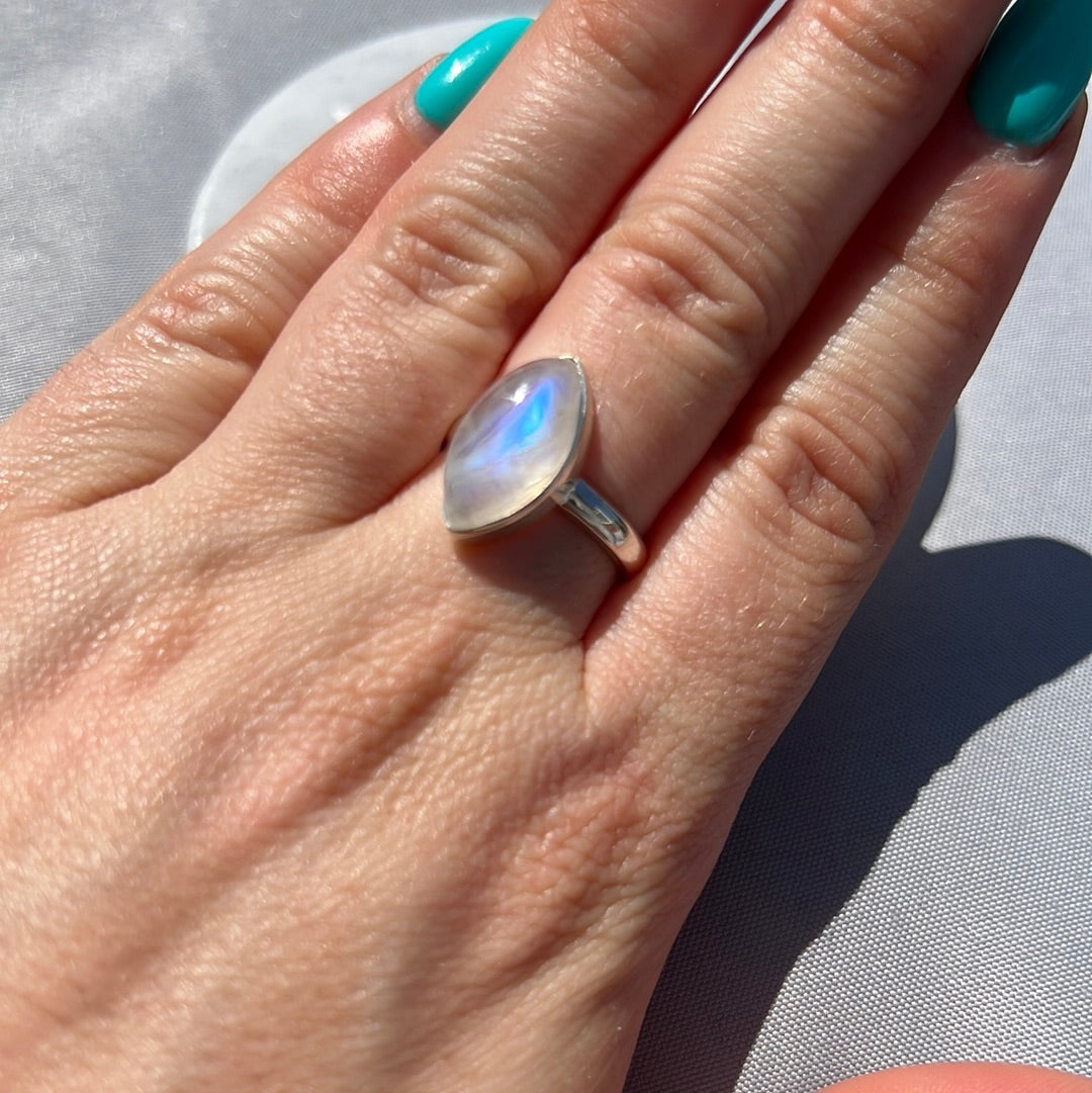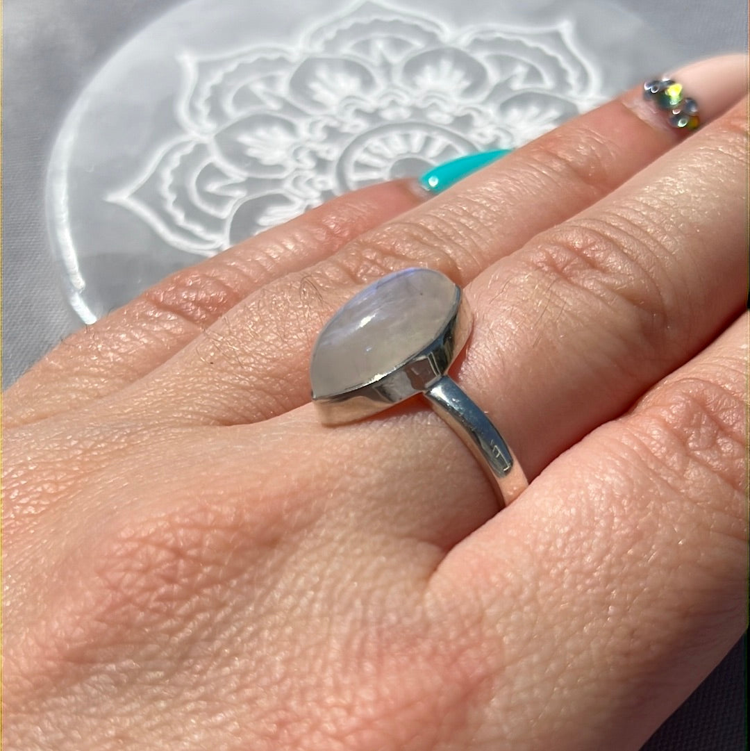 Rainbow Moonstone 925 Sterling Silver Ring - Size N 1/2 - O