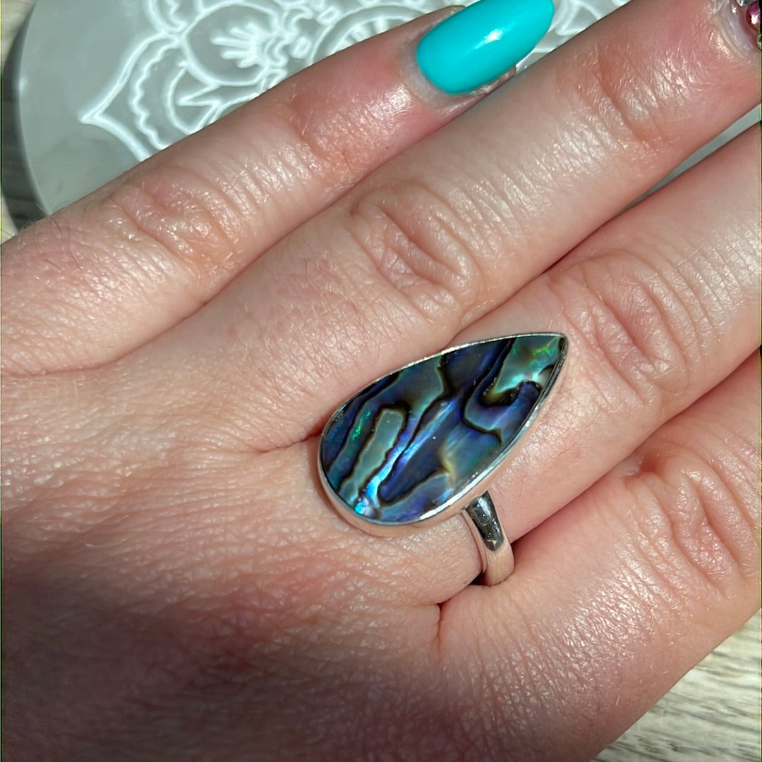 Abalone Shell 925 Silver Ring - Size P 1/2 - Q