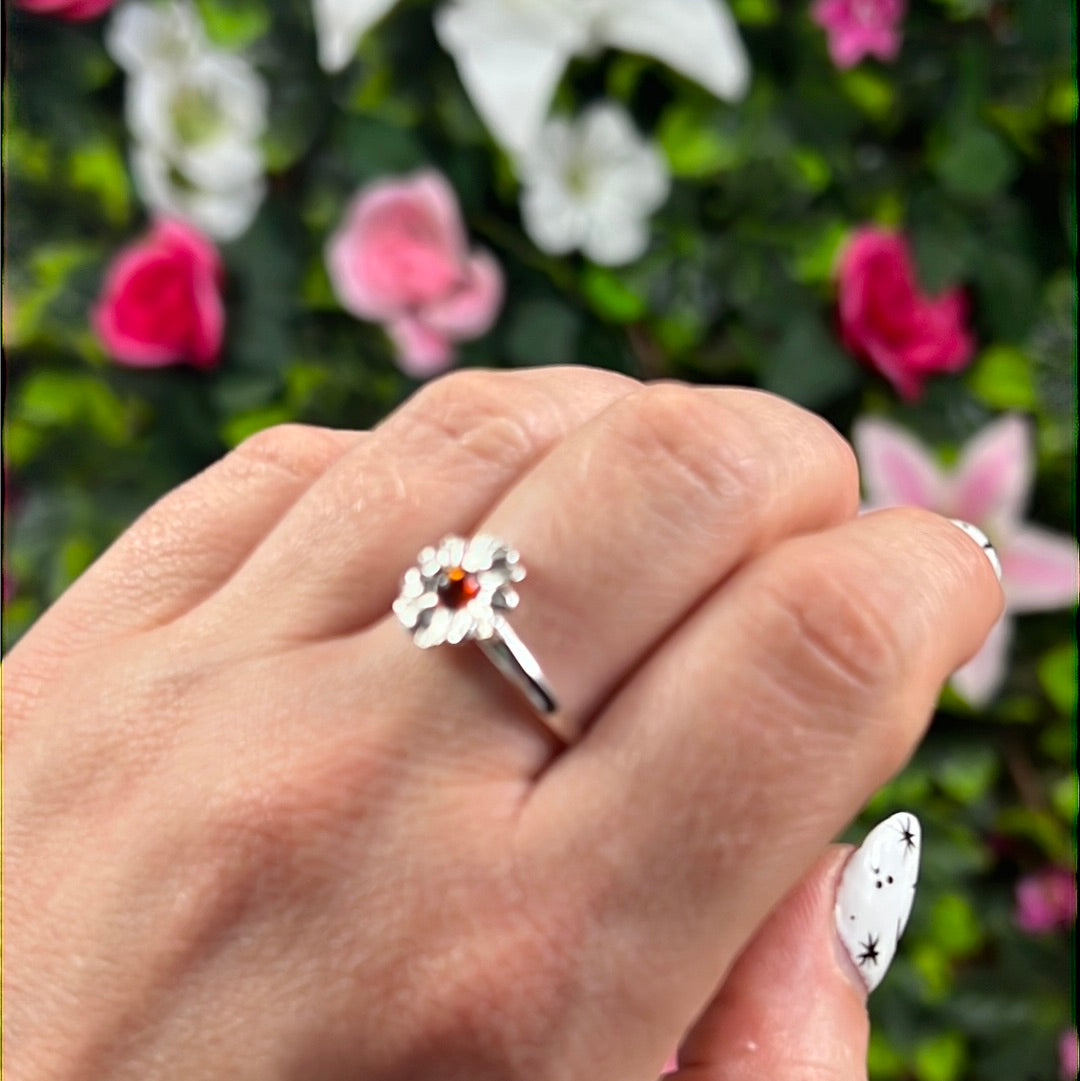 Amber Daisy Flower 925 Sterling Silver Ring - Size O 1/2 - P