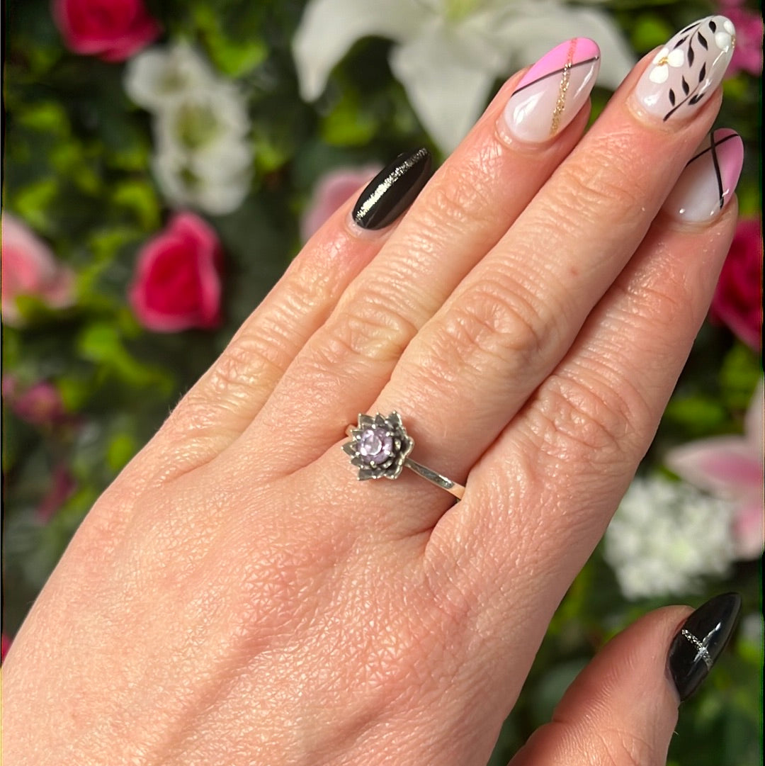 Amethyst Flower 925 Silver Ring - Size P 1/2 - Q Facet cut