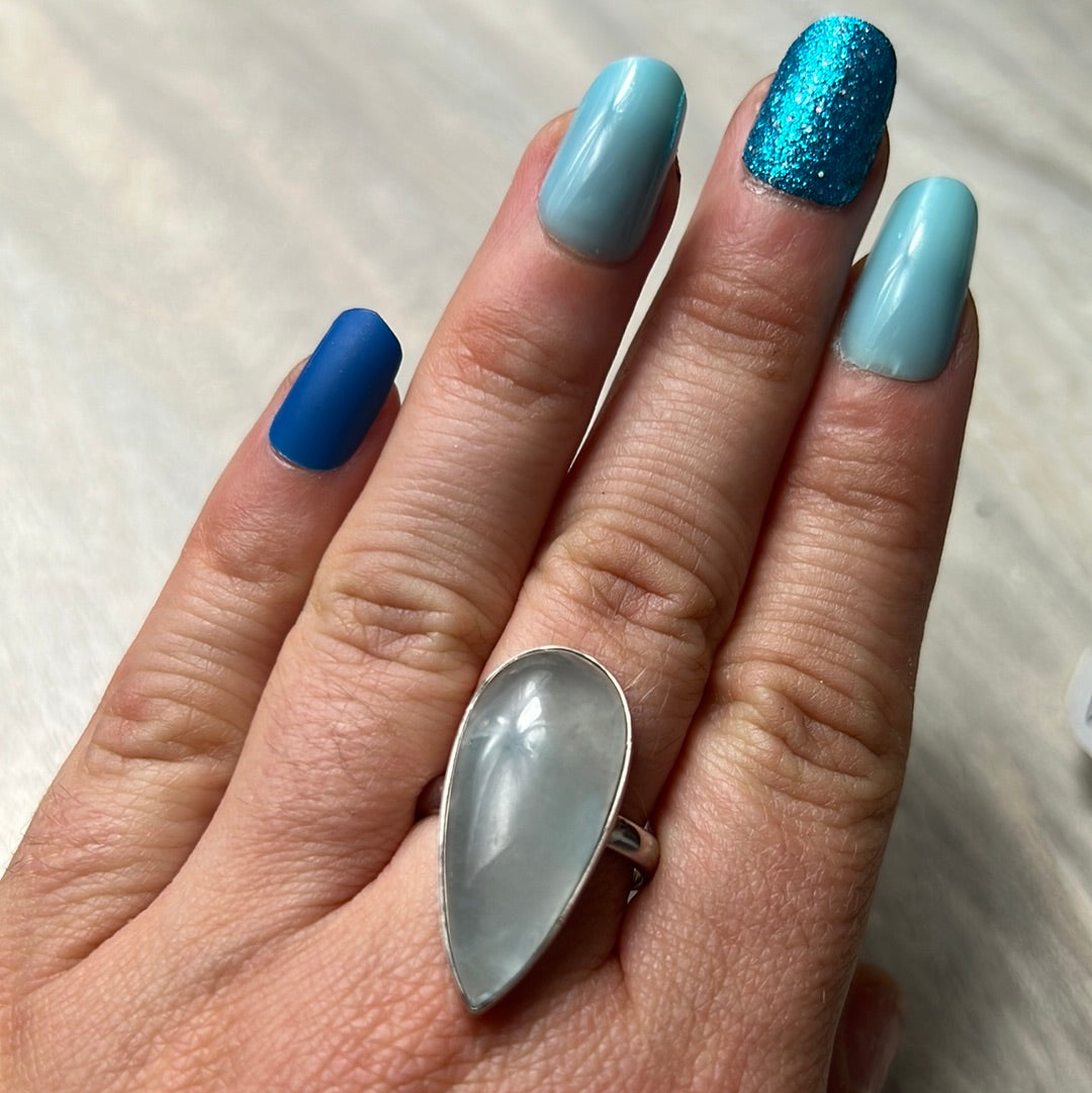 Aquatine Lemurian Calcite 925 Sterling Silver Ring - Size P 1/2