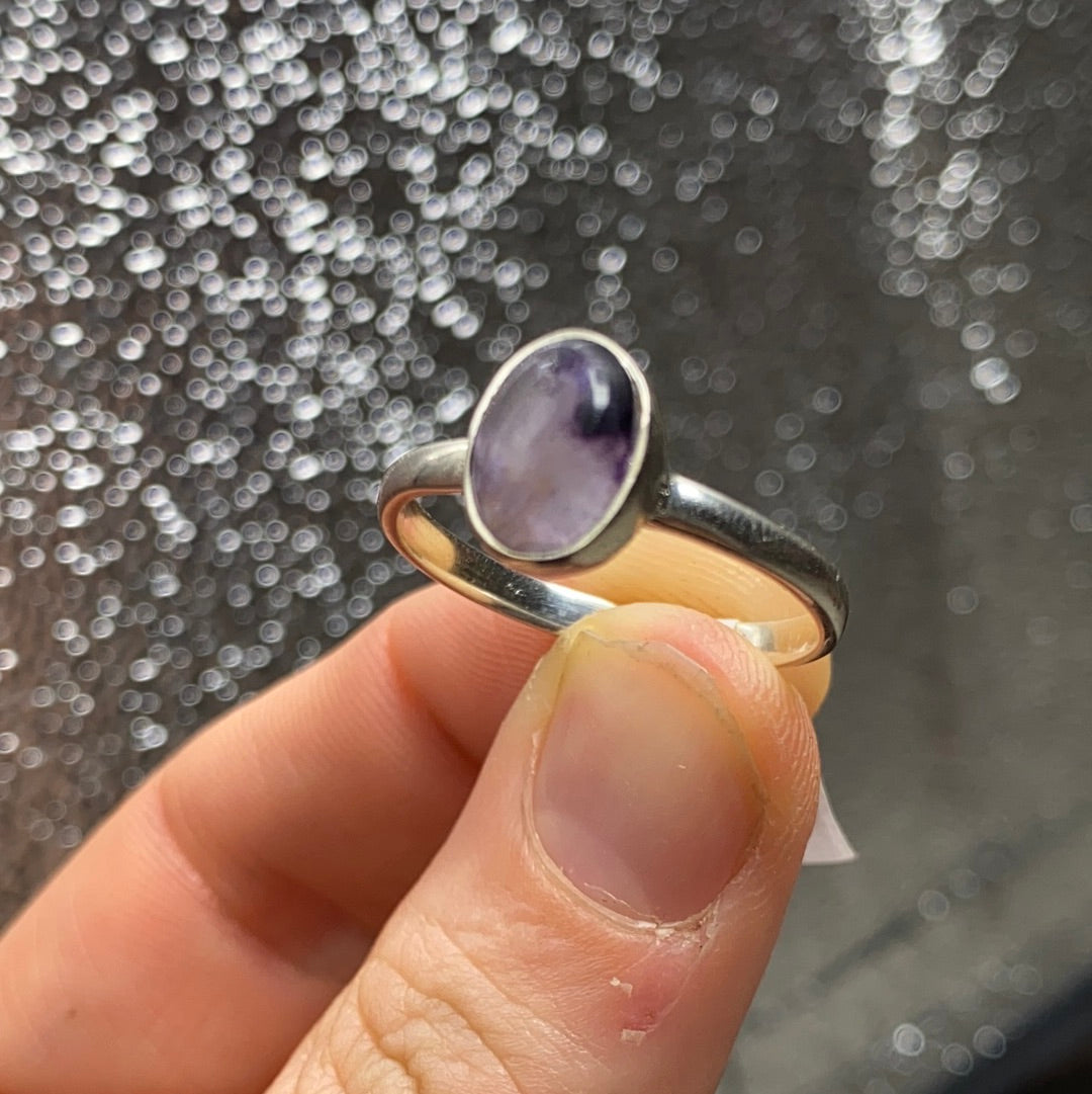 Blue John UK Fluorite Ring Size R1/2 - S 925 Silver