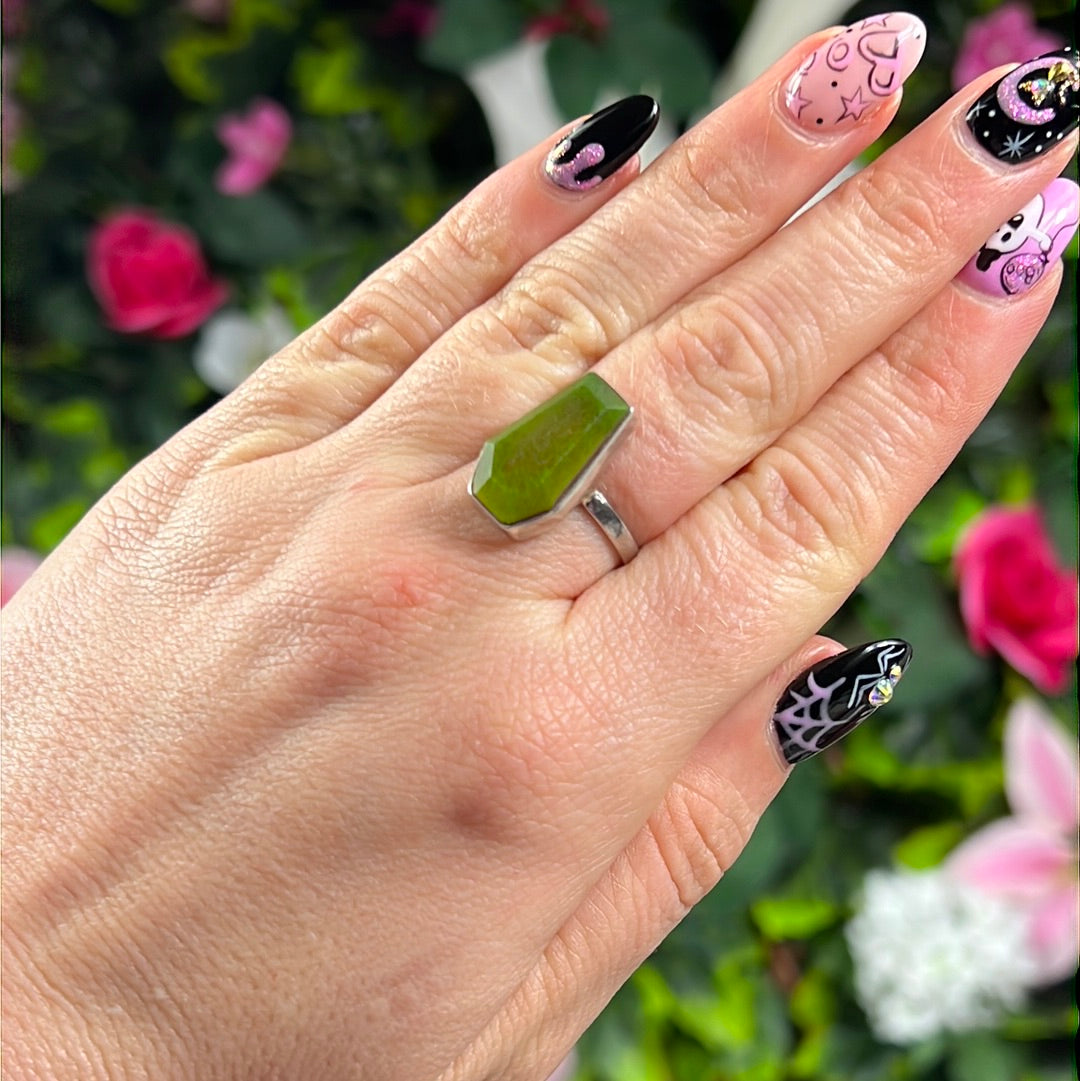 Nephrite Jade Coffin 925 Sterling Silver Ring - Size M 1/2