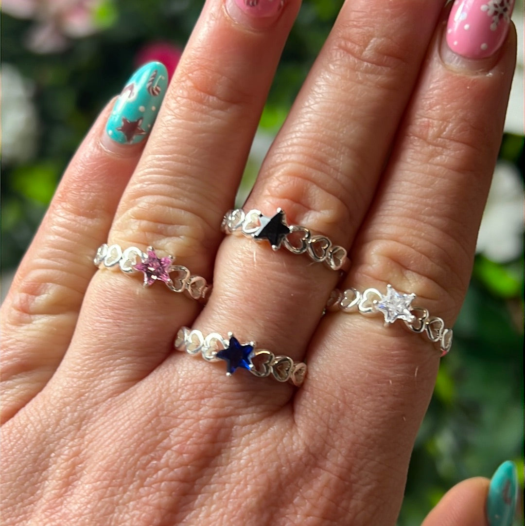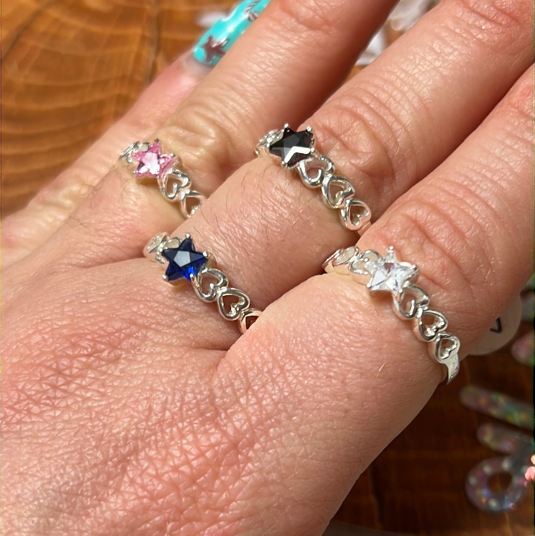 Star & Heart Band CZ - 925 Sterling Silver Ring