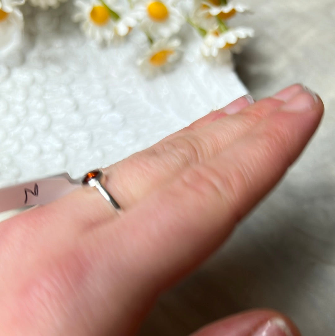 Amber Double Sided Heart Sterling 925 Silver Ring - Size N