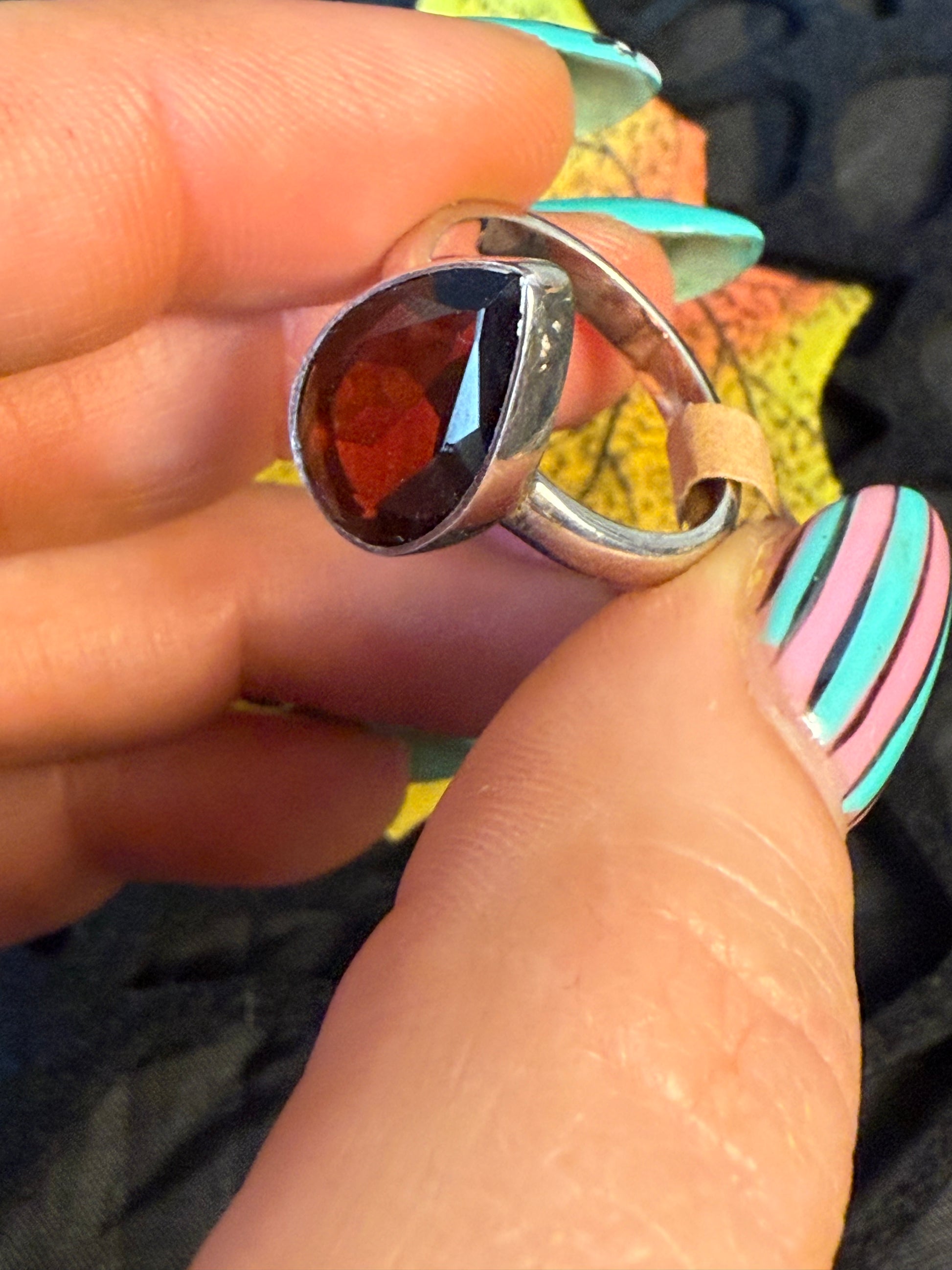Garnet Facet 925 Ring - Size N 1/2 AA GRADE