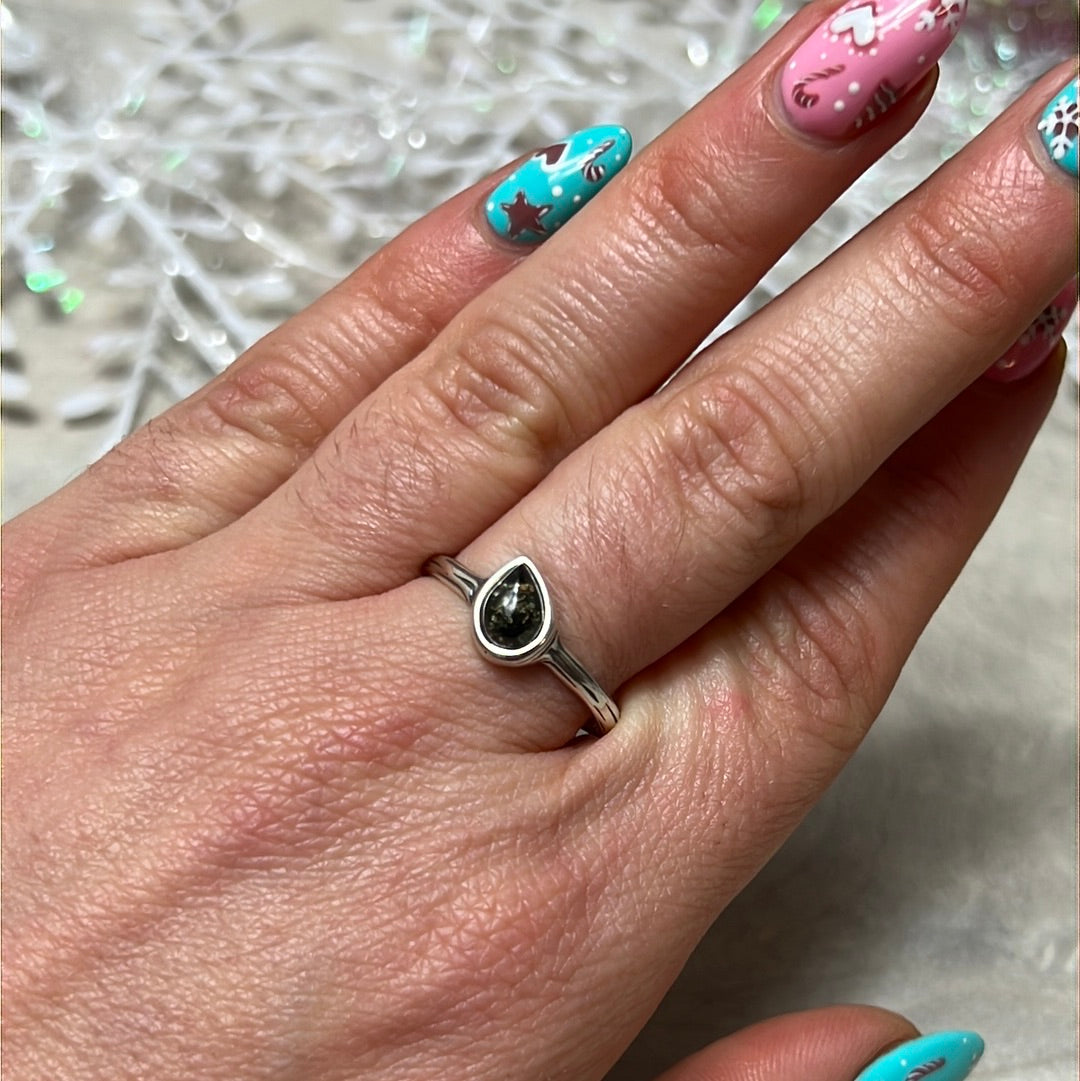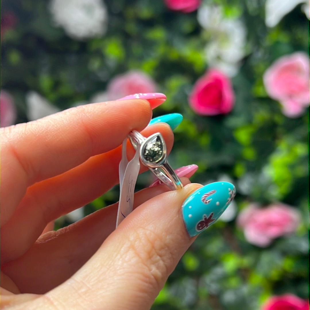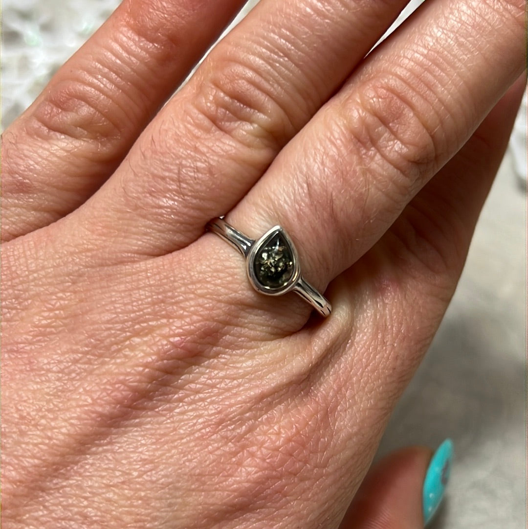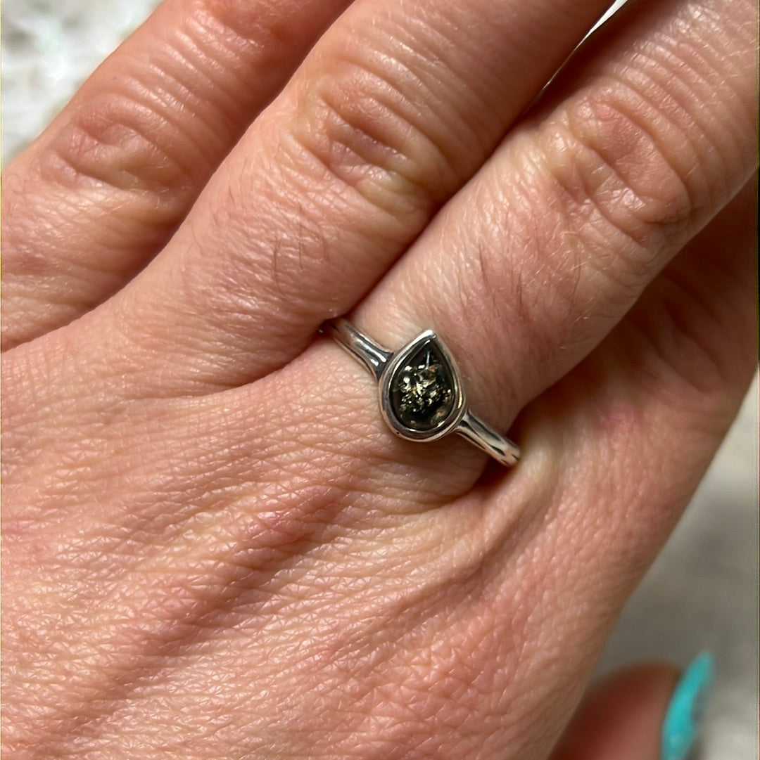 Amber 925 Sterling Silver Ring - Size S - S 1/2 - green amber