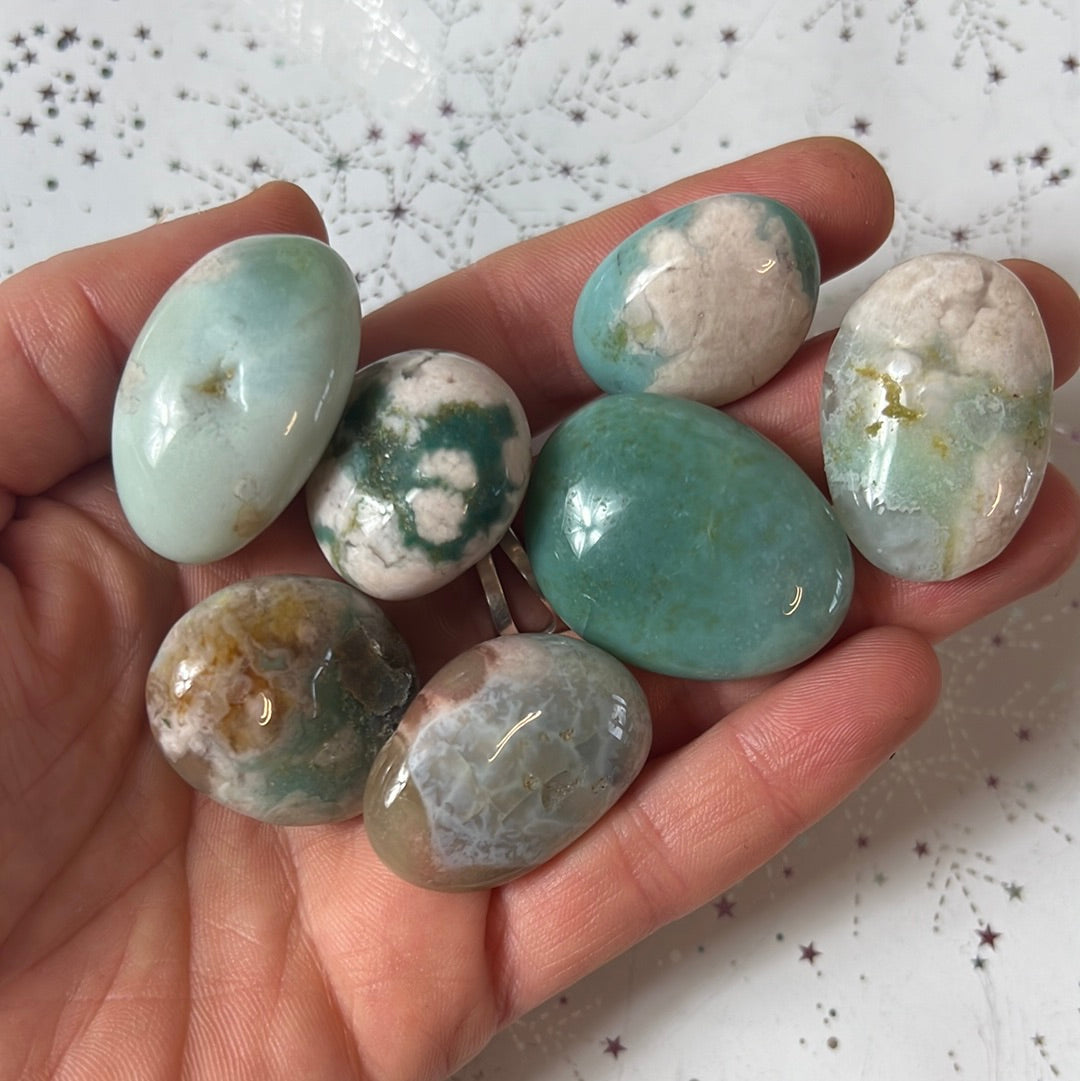 Green Flower Blossom Sakura Agate Tumble Tumblestone
