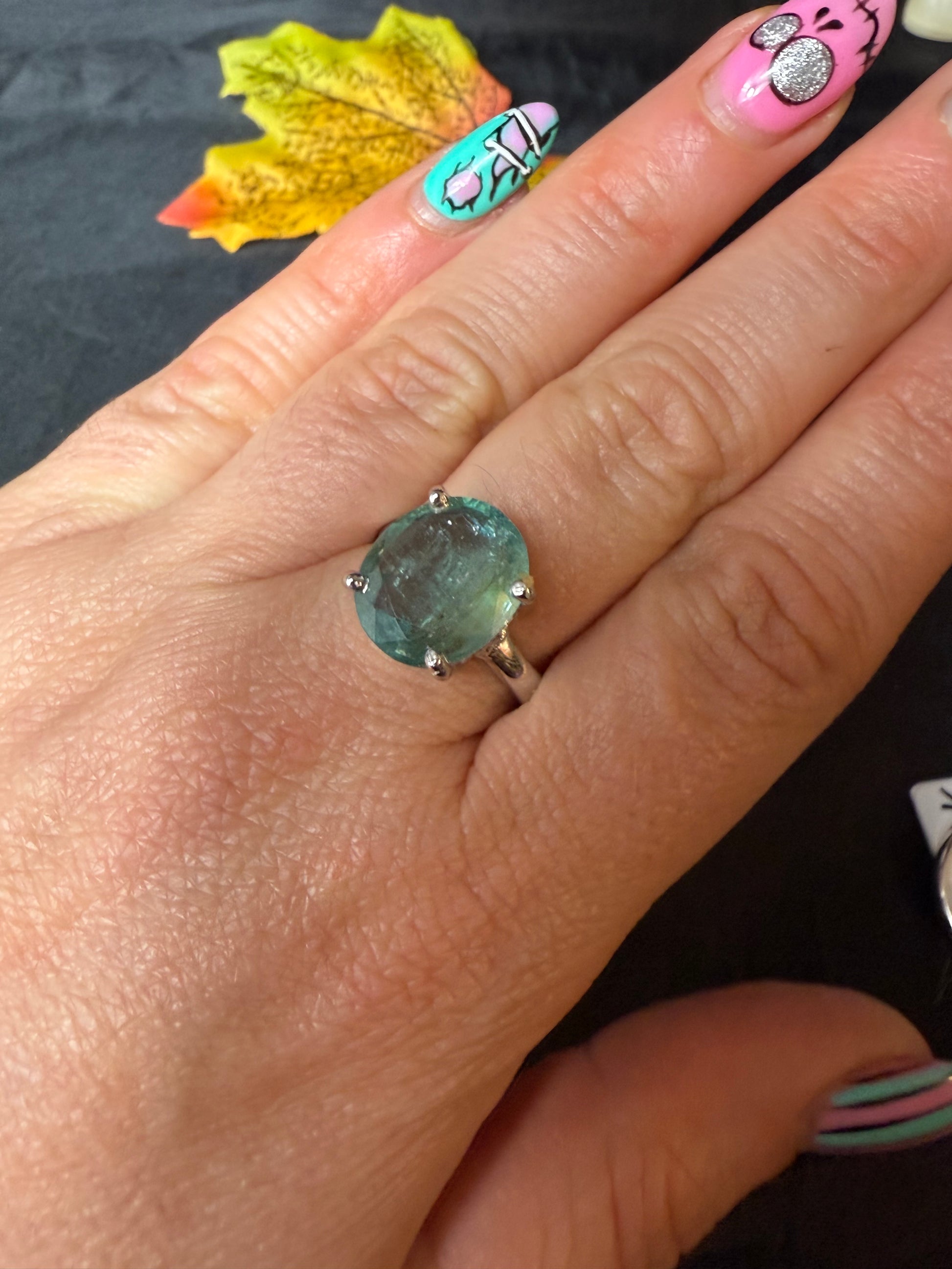Green Kyantie 925 Ring - Size Q 1/2