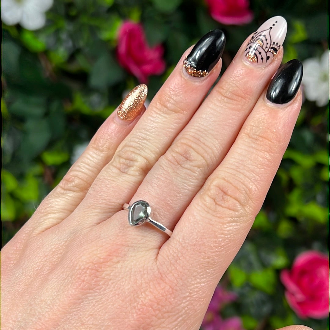 Green Tourmaline 925 Silver Ring - Size Q 1/2 - R