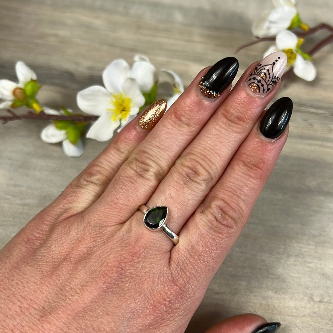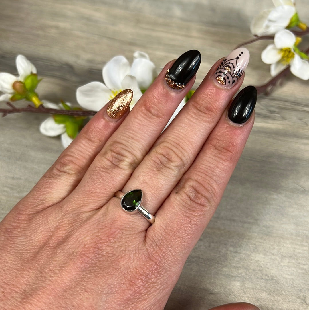 Green Tourmaline 925 Silver Ring - Size S