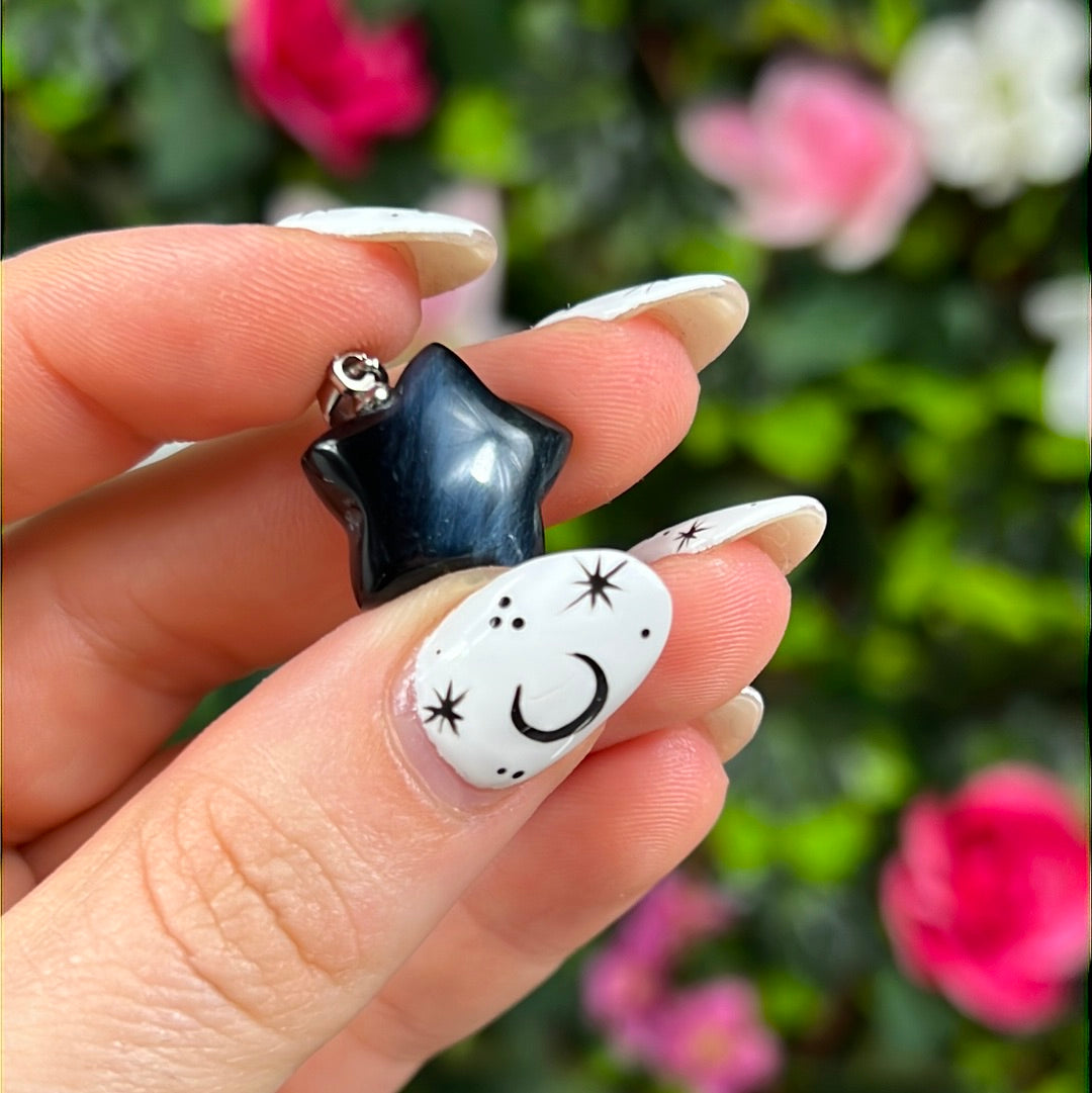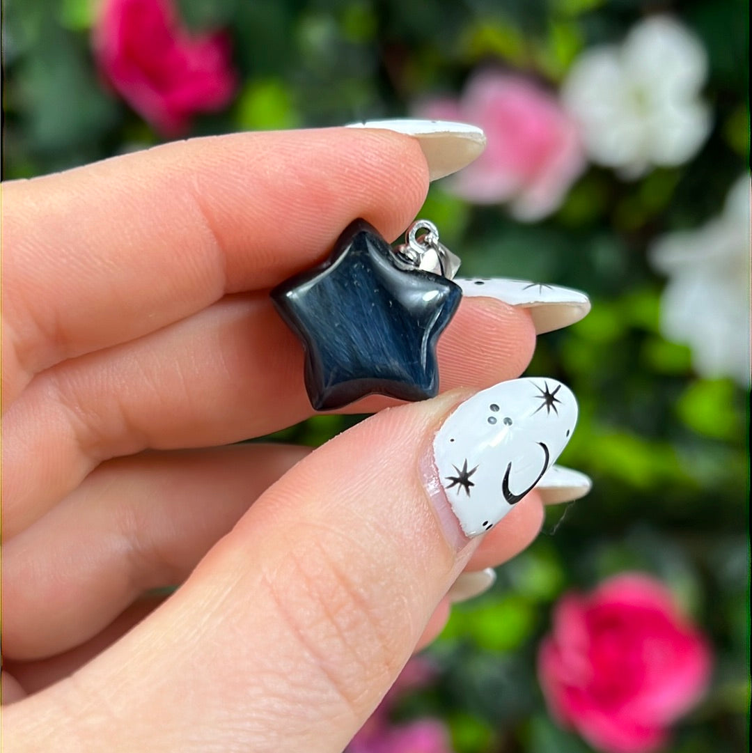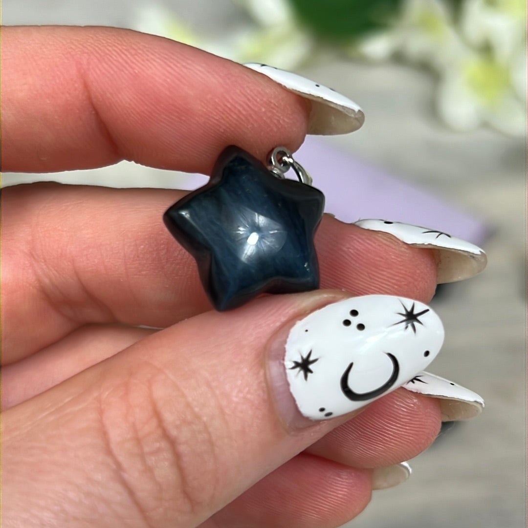 Hawks Eye Star - Blue Tigers Eye Pendant 925 Silver