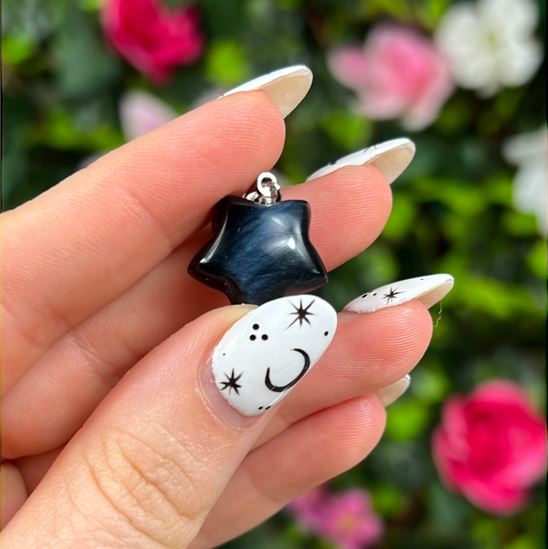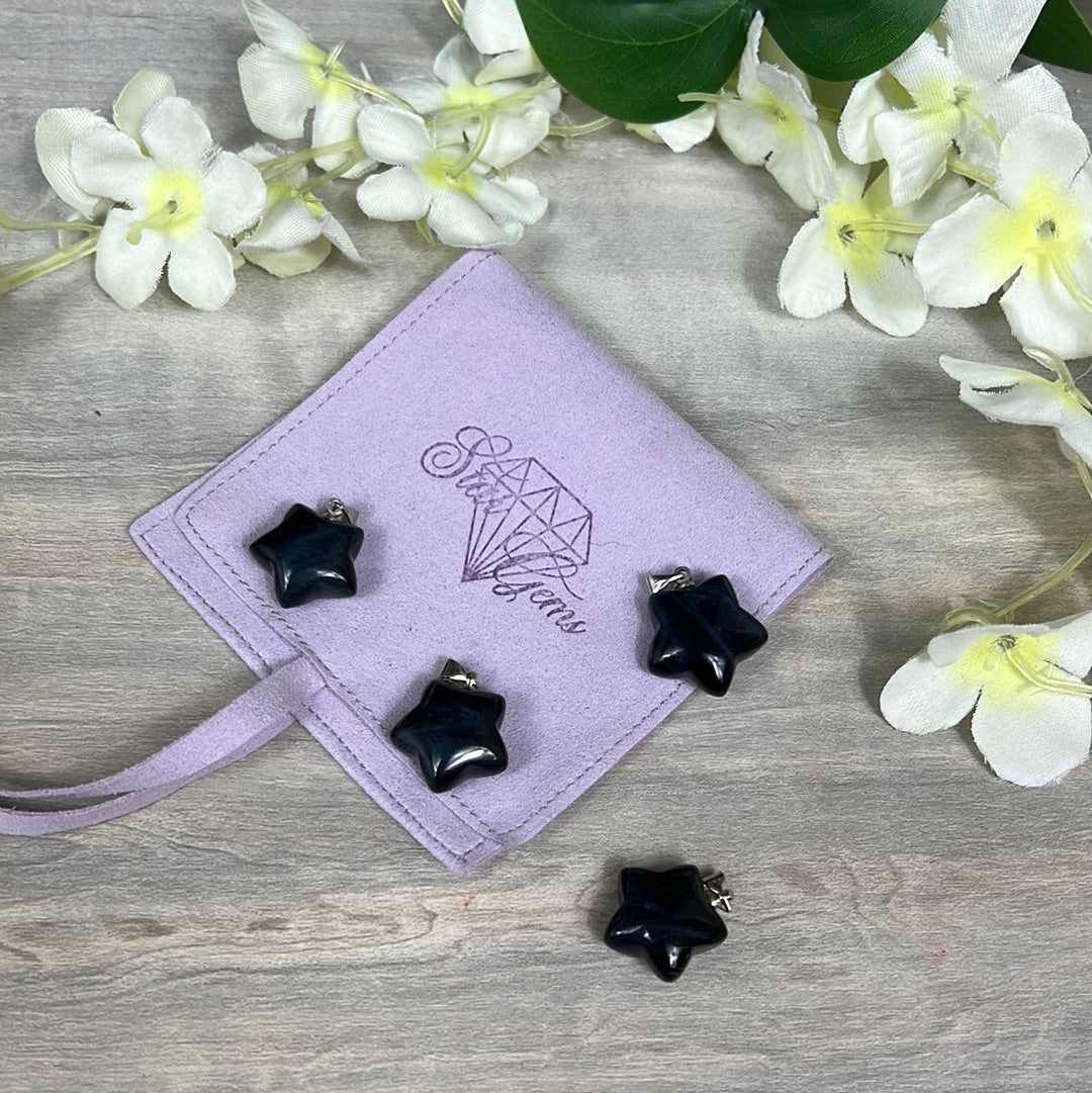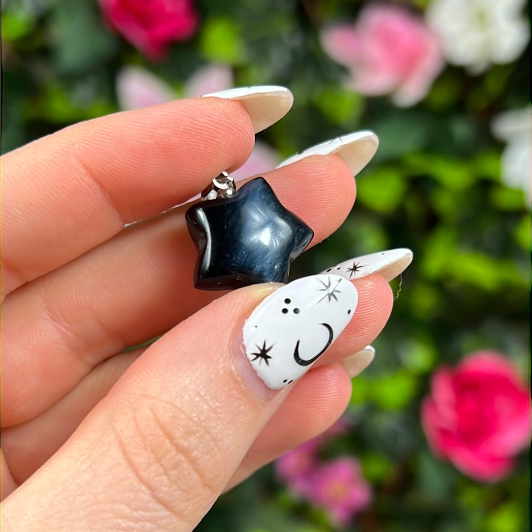 Hawks Eye Star - Blue Tigers Eye Pendant 925 Silver