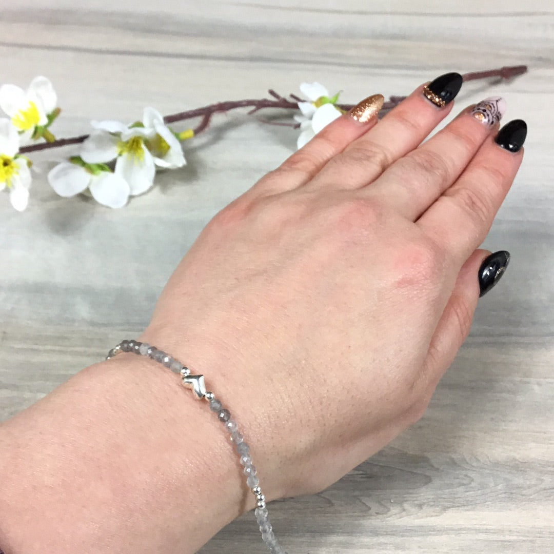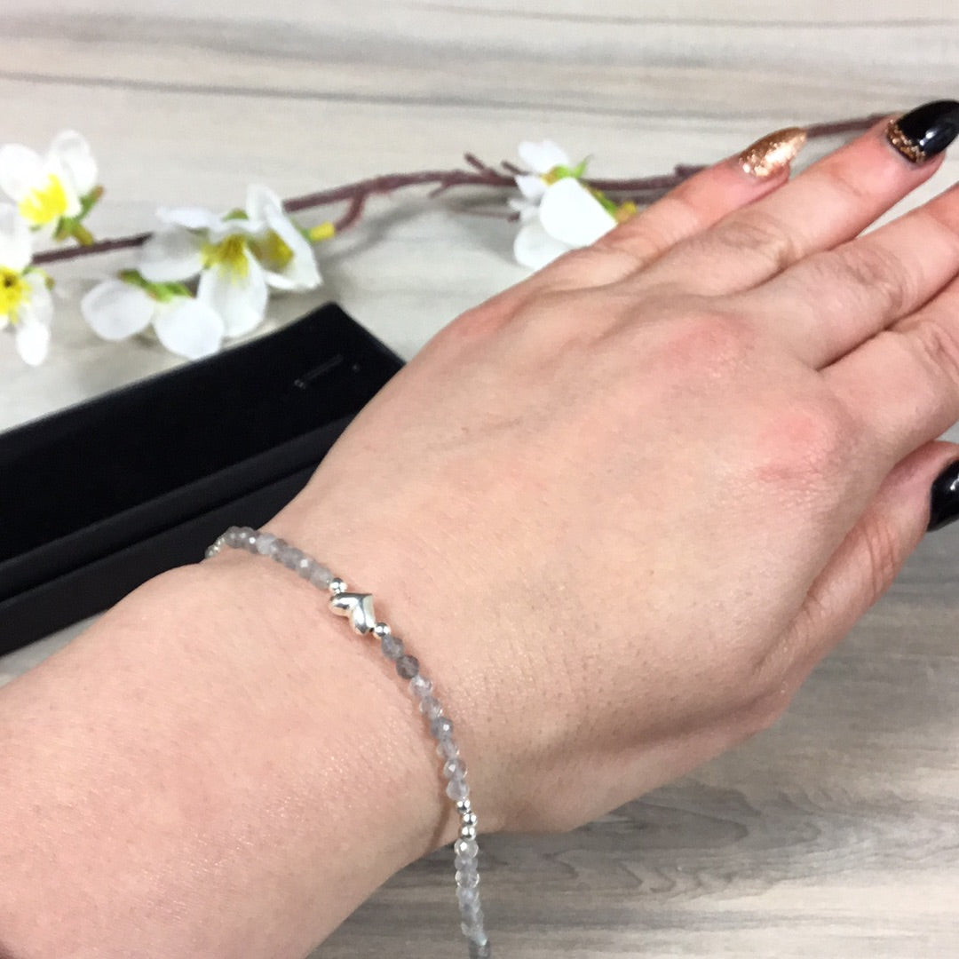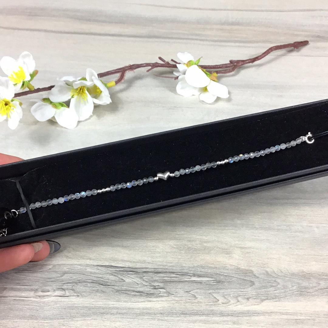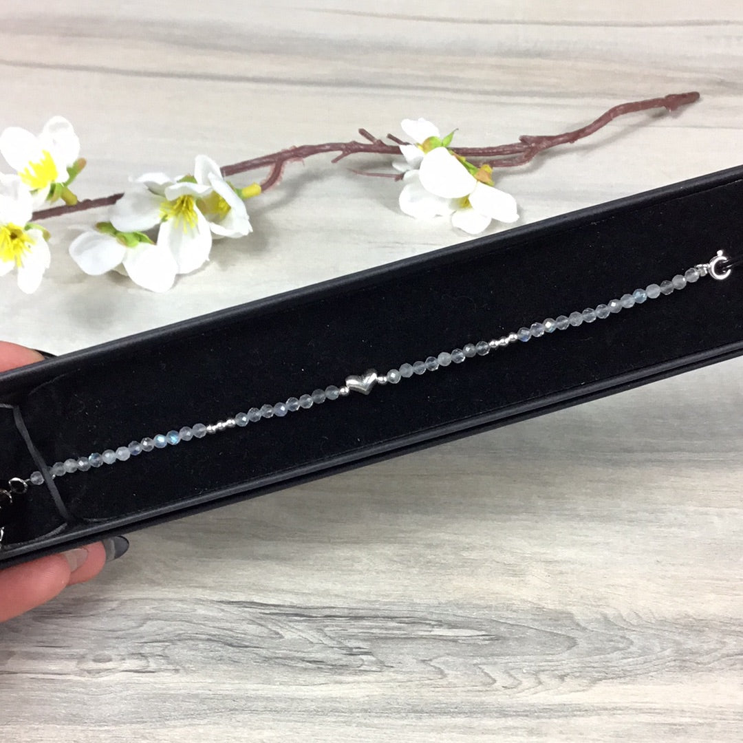 Heart Charm Facet Sterling Silver Crystal Bracelet