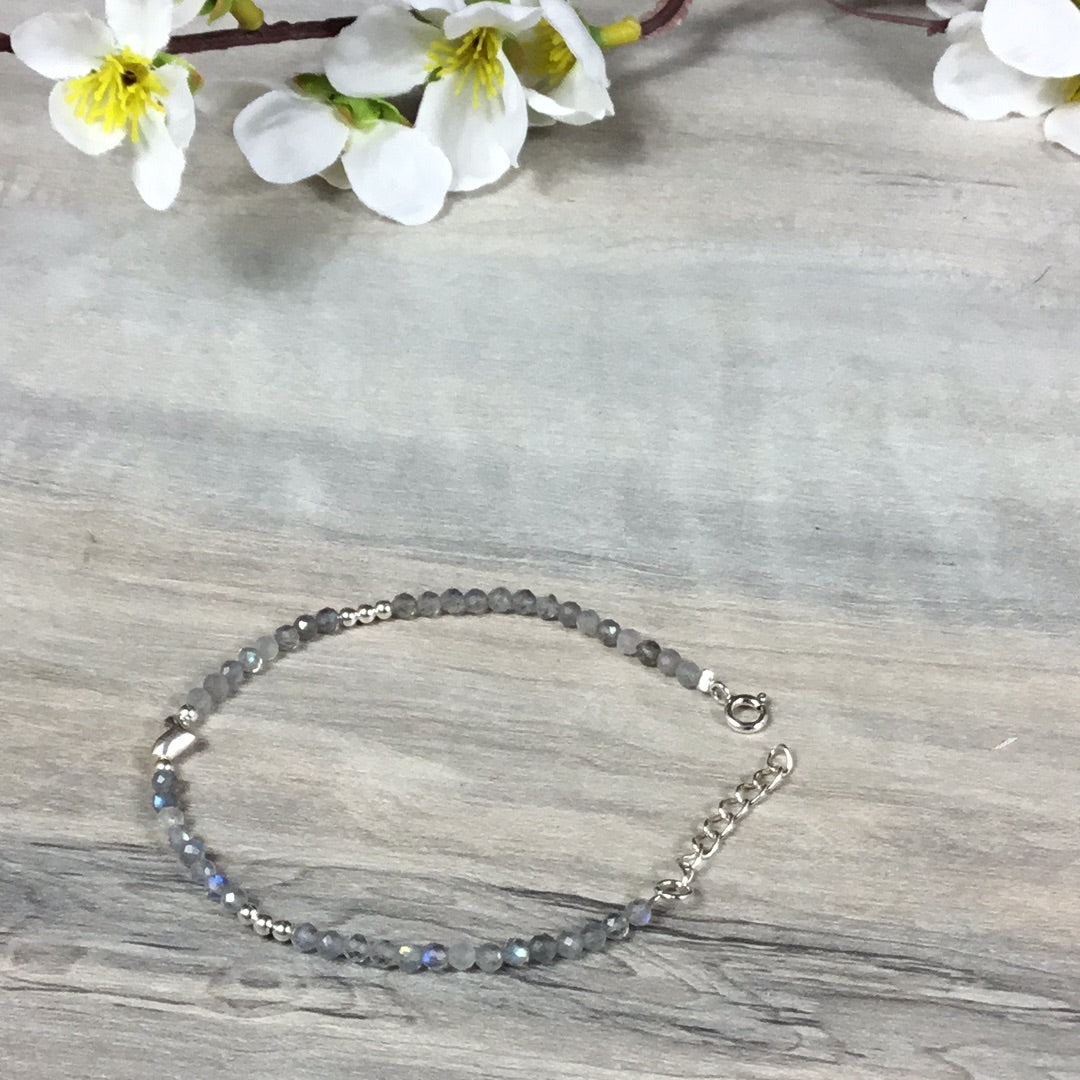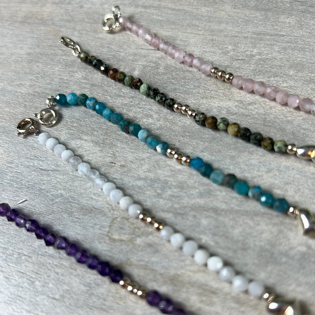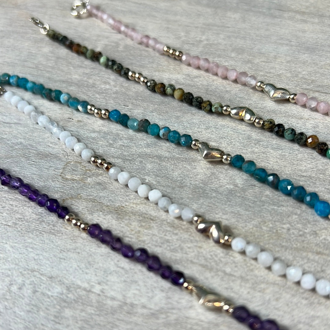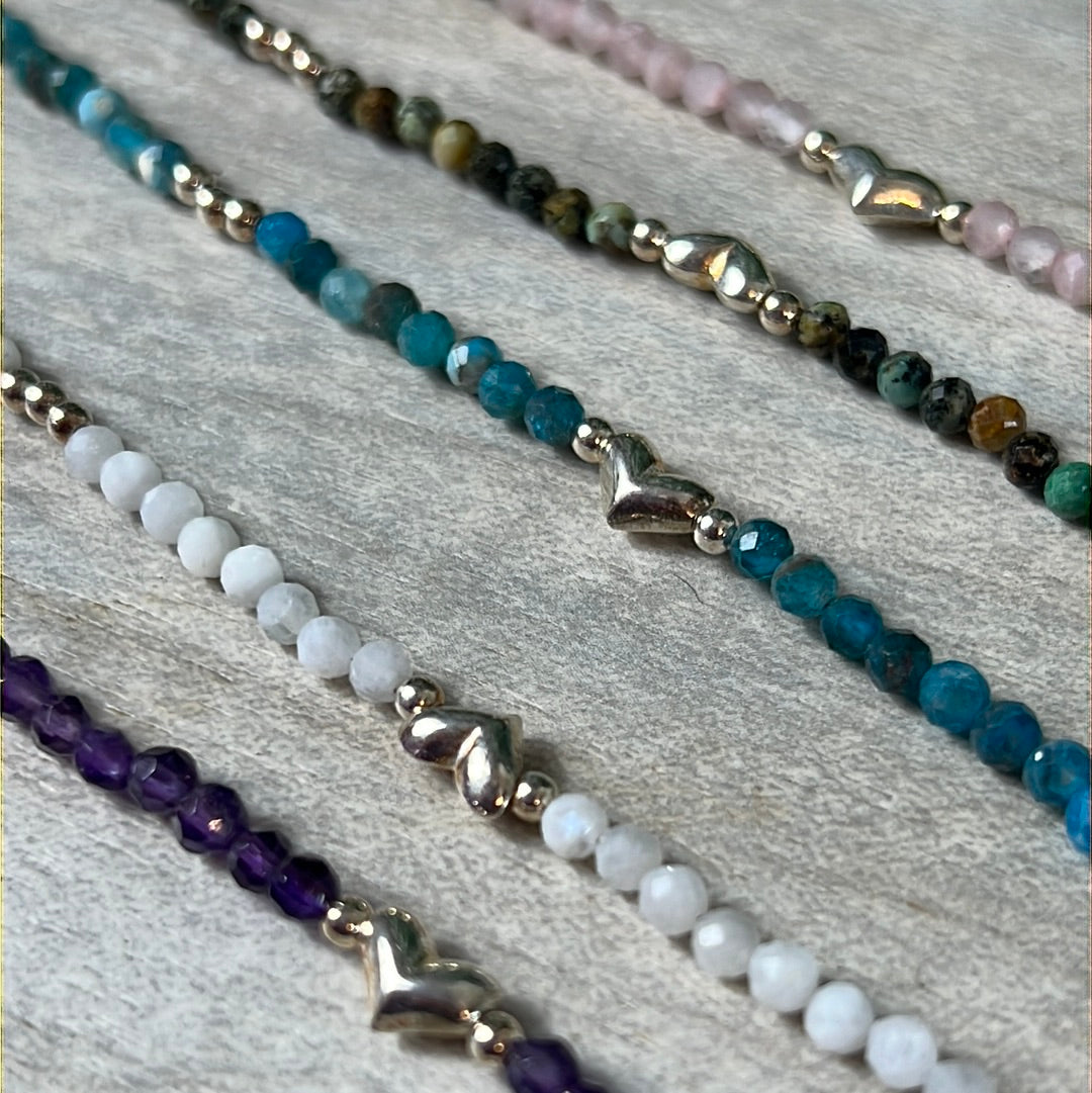 Heart Charm Facet Sterling Silver Crystal Bracelet