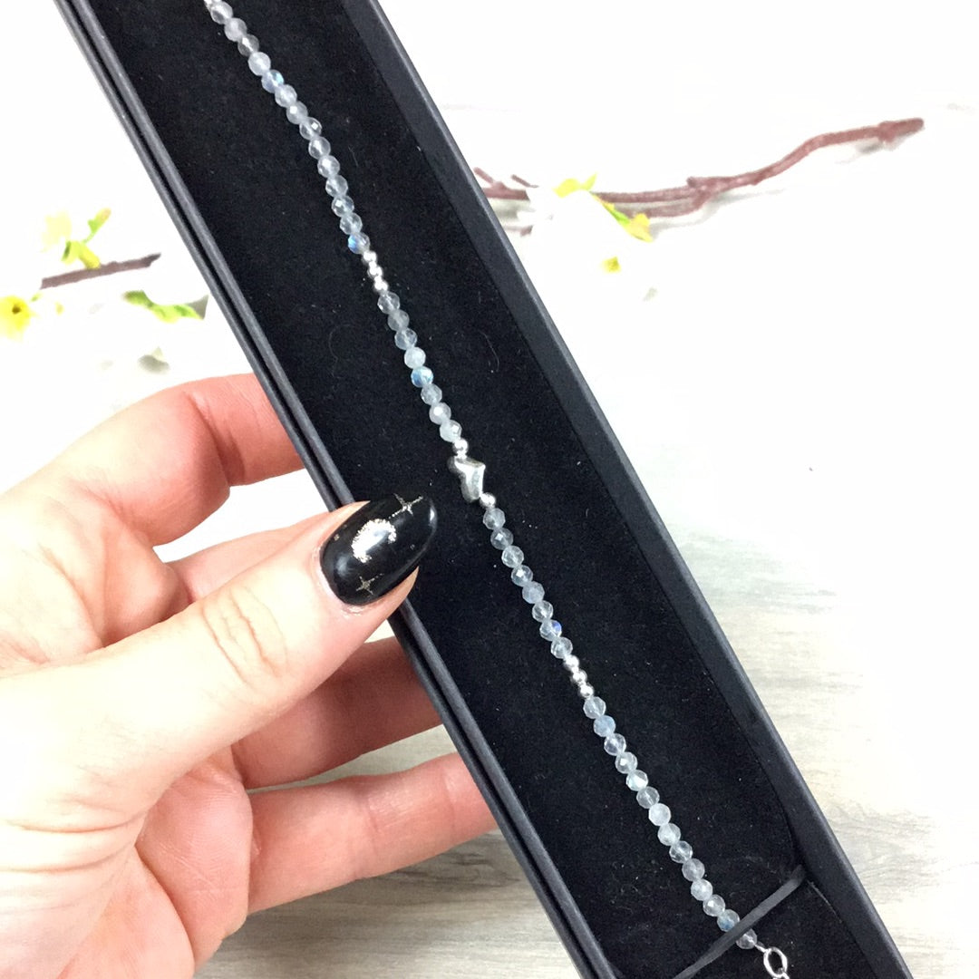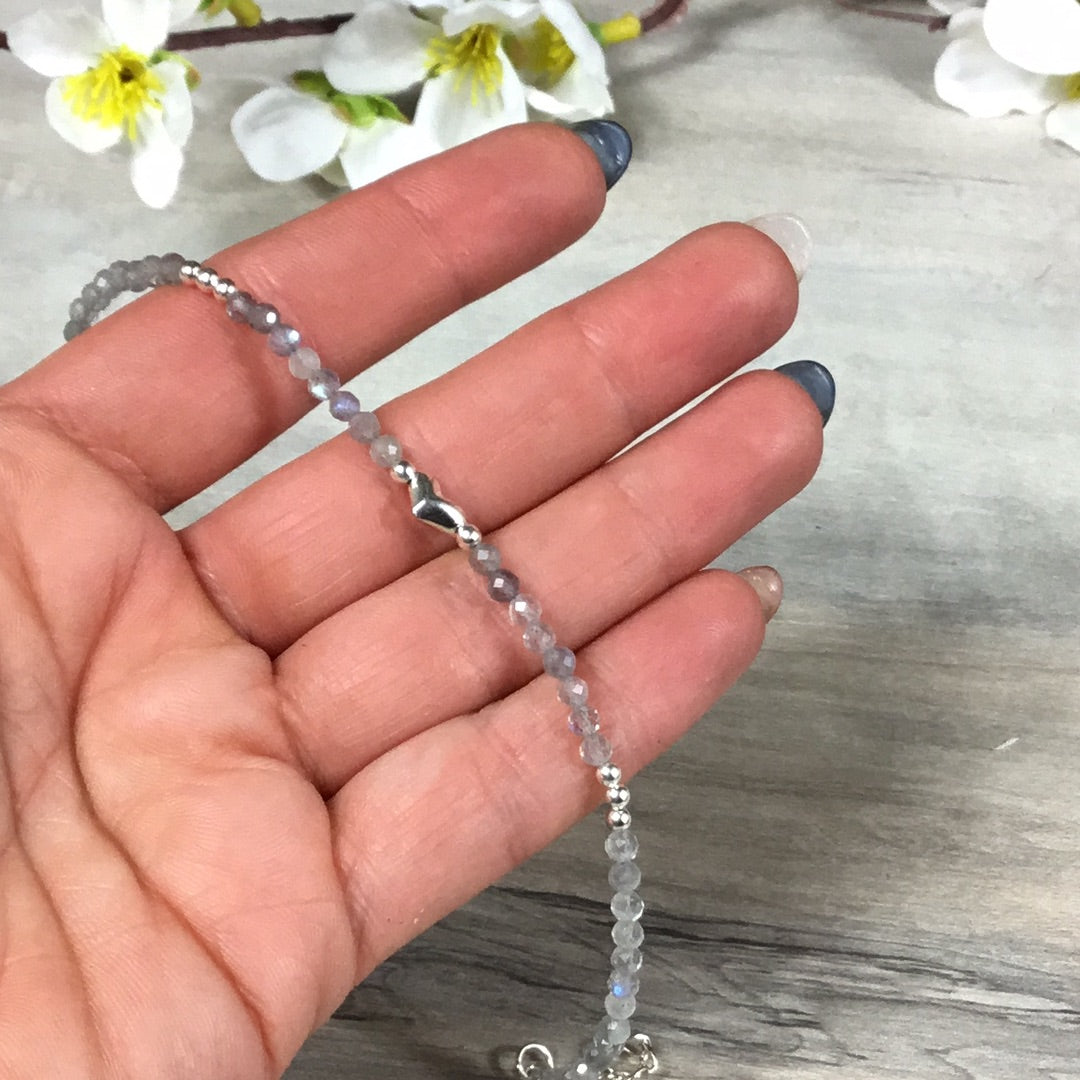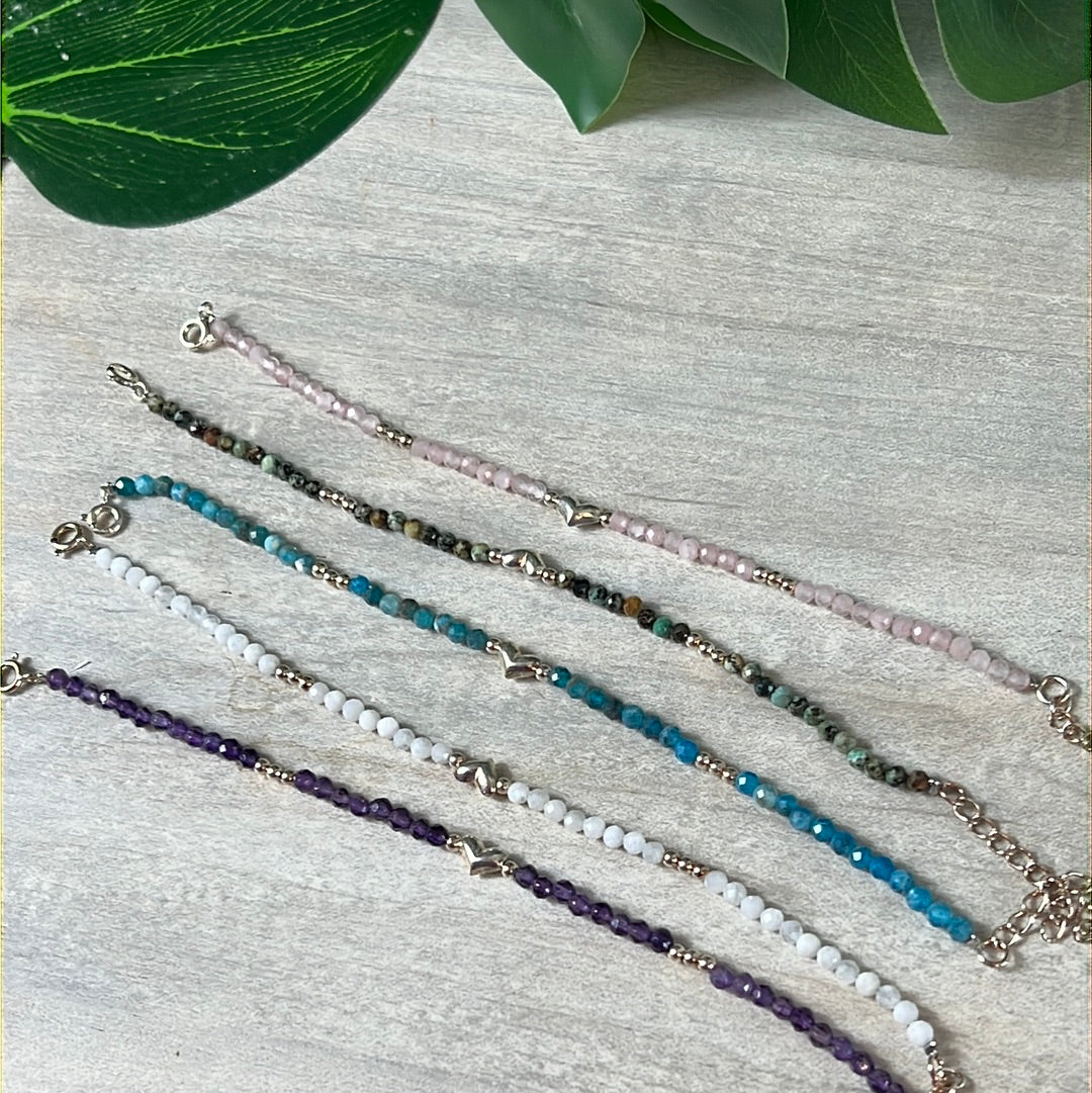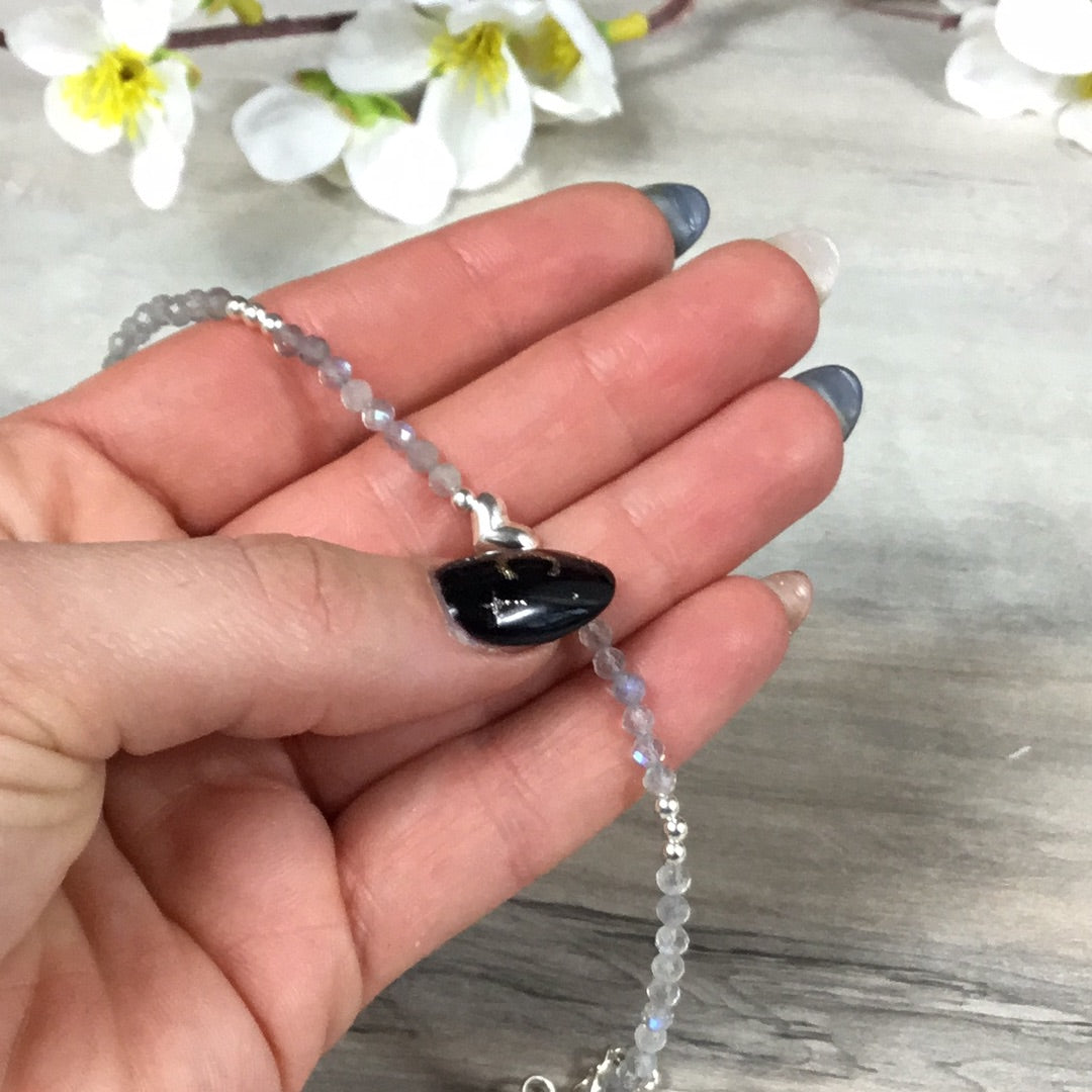 Heart Charm Facet Sterling Silver Crystal Bracelet