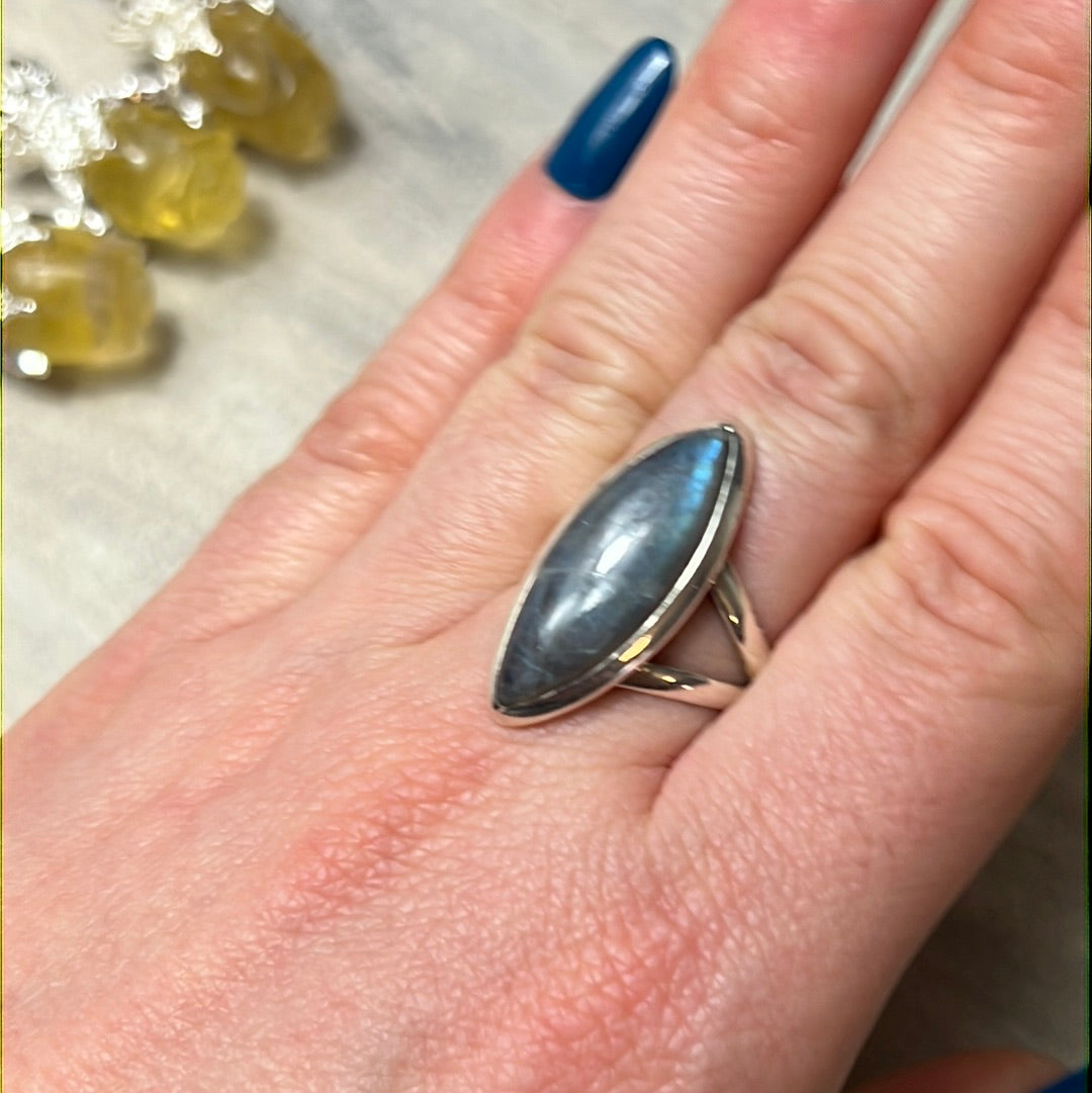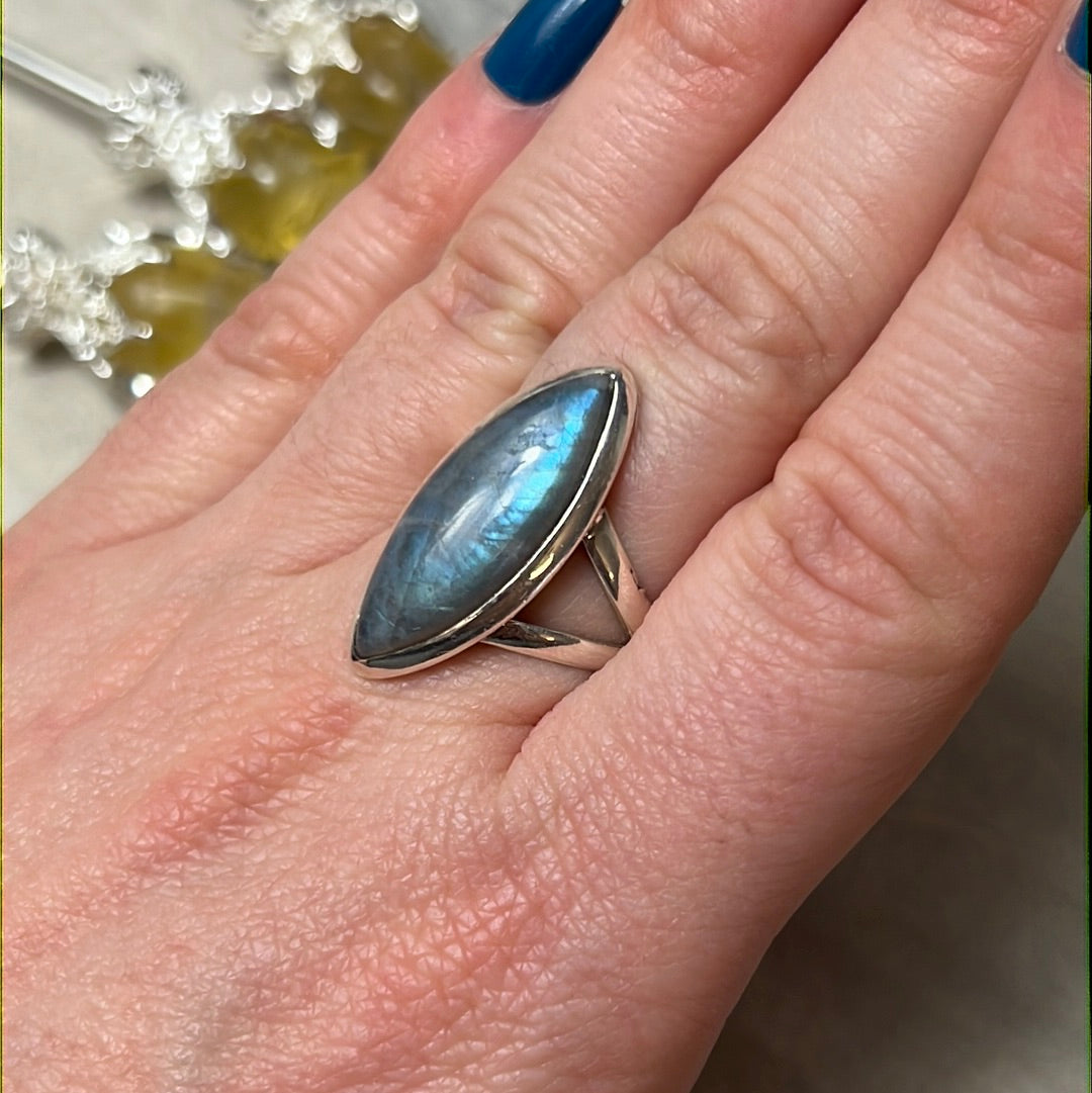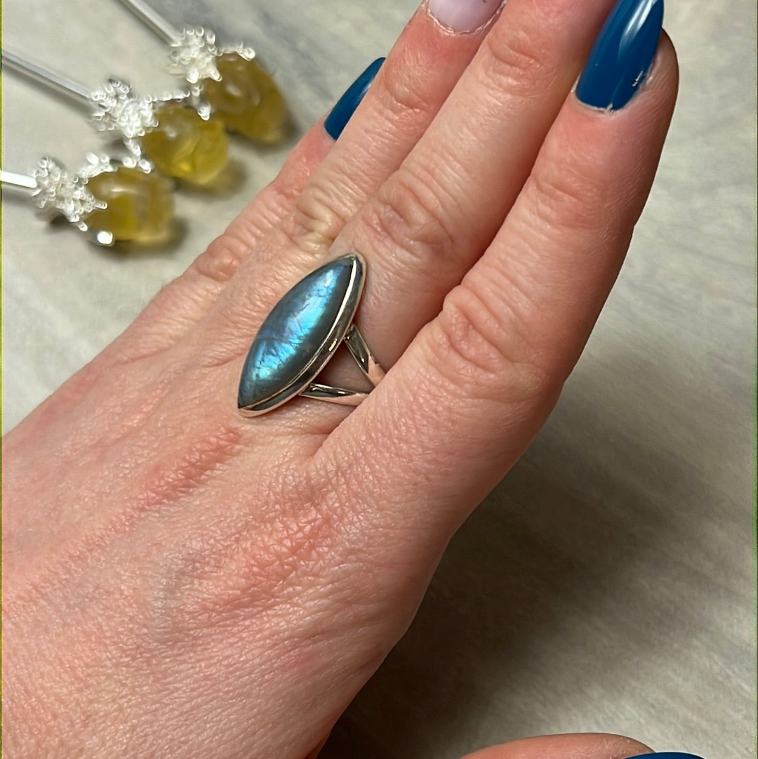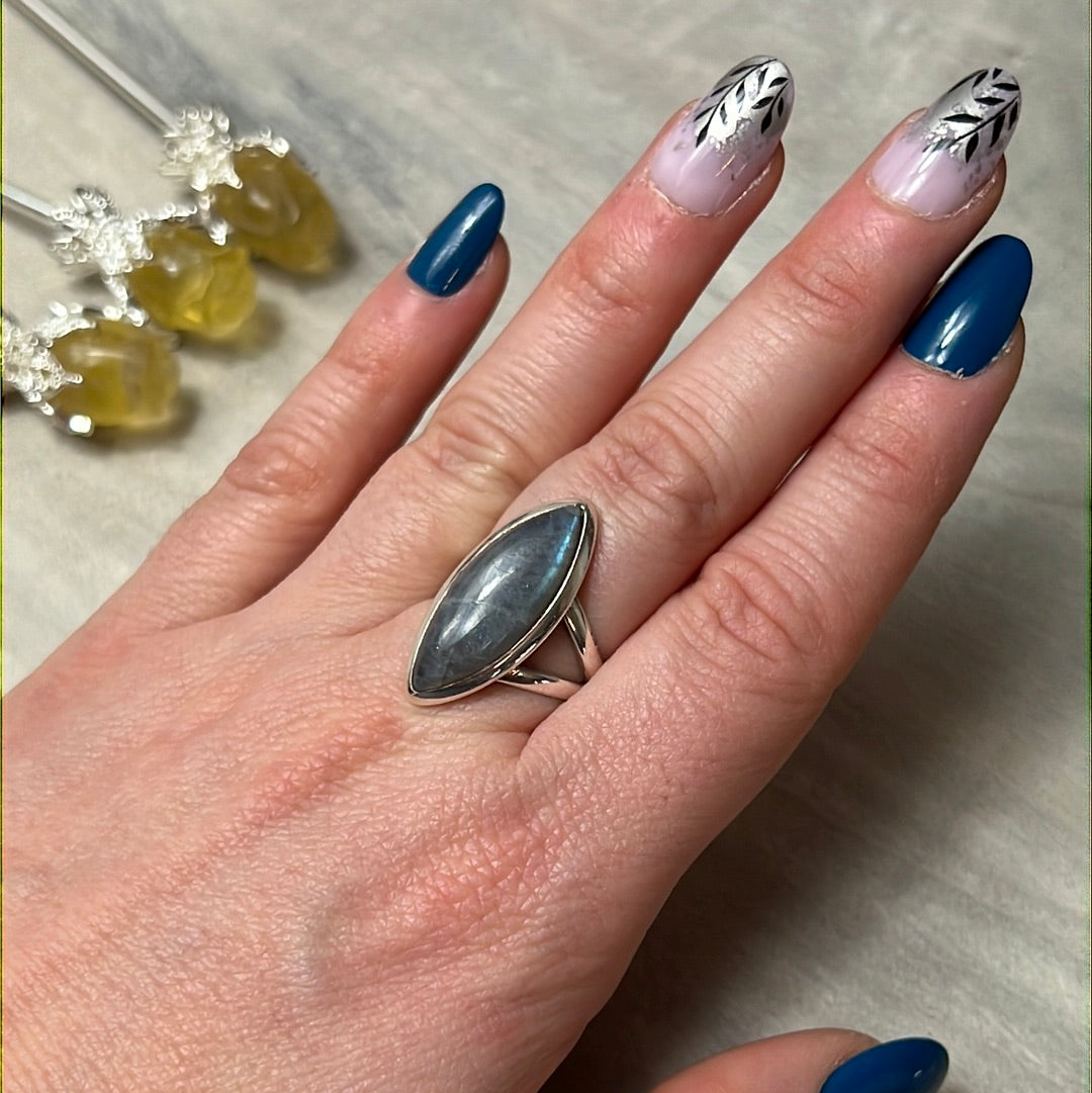 Labradorite 925 Silver Ring - Size N - N 1/2