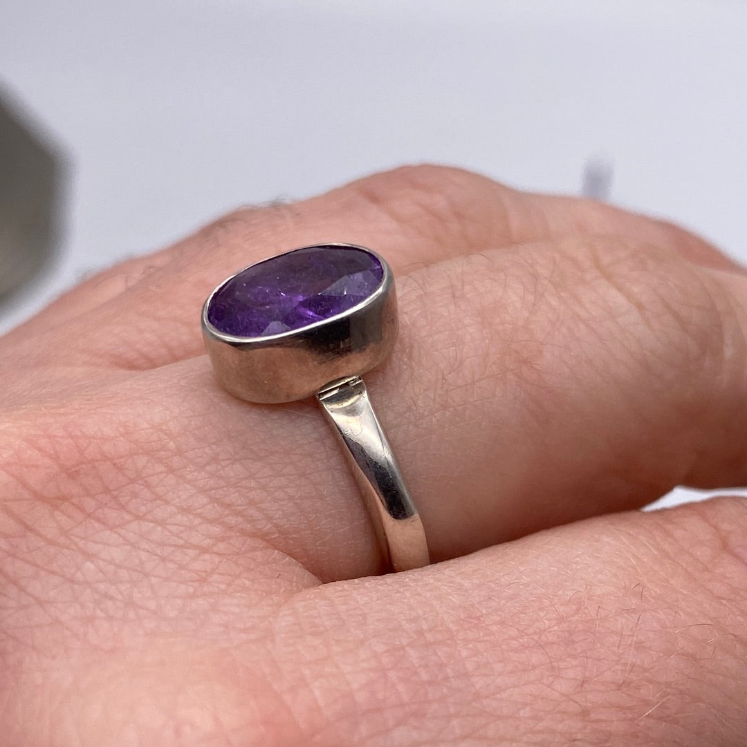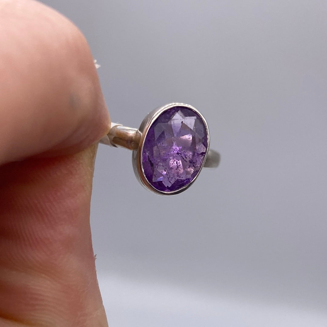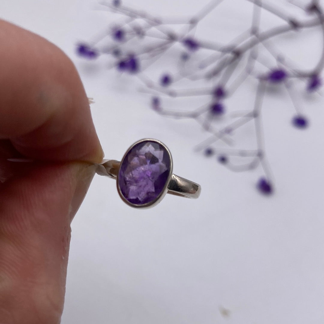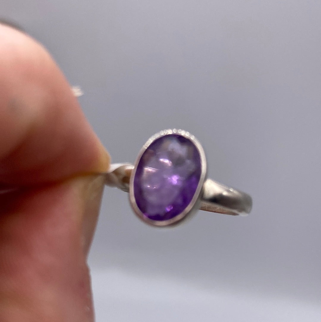 Brandberg Amethyst Facet - RARE 925 Sterling Silver Ring - Size L 1/2