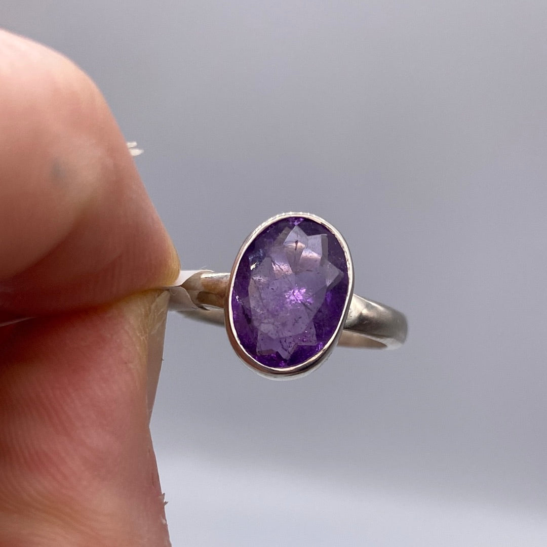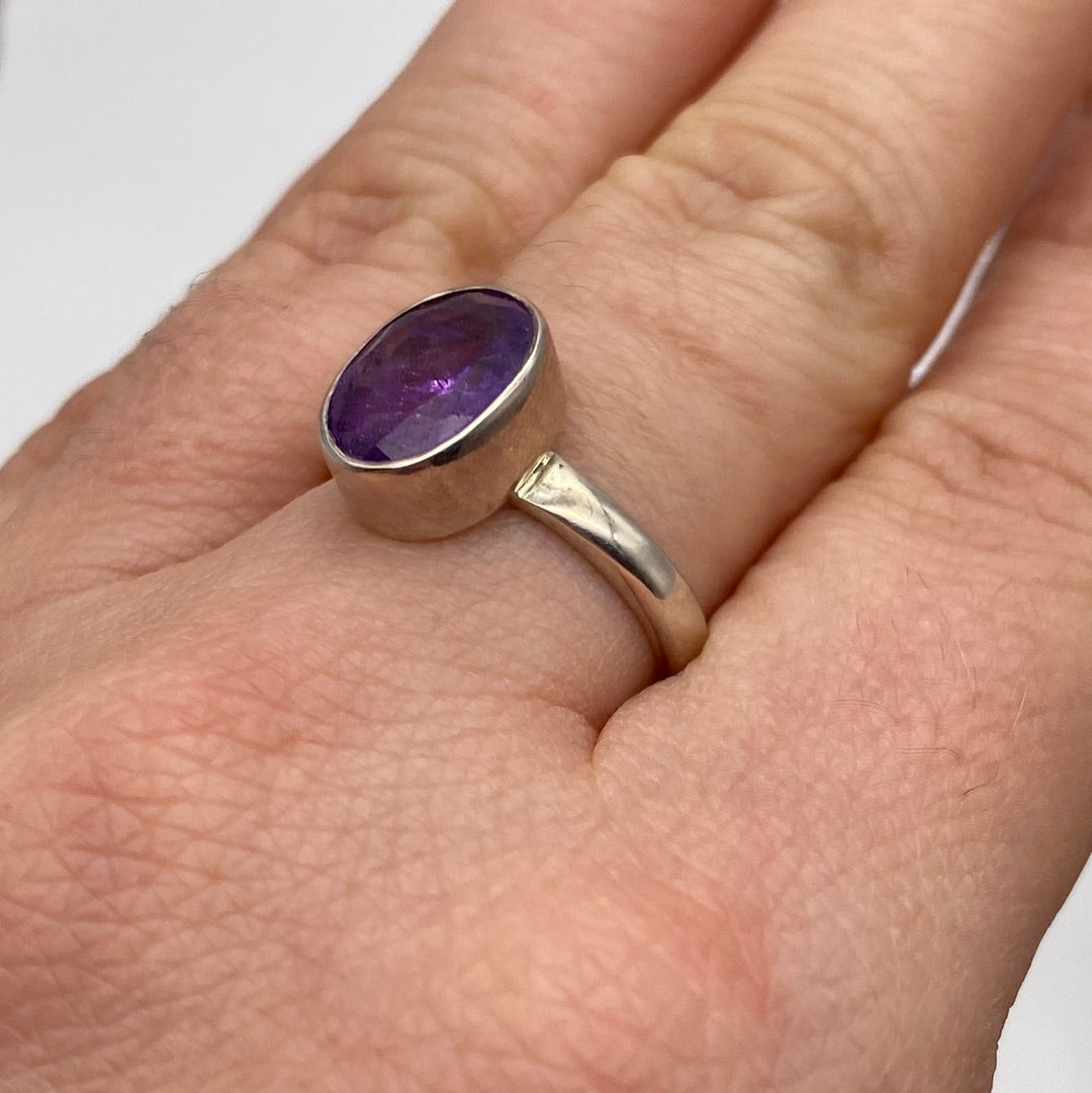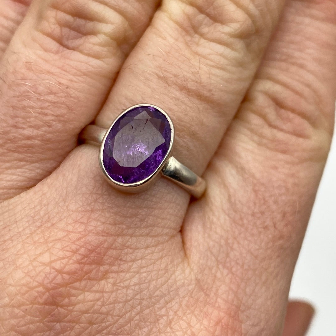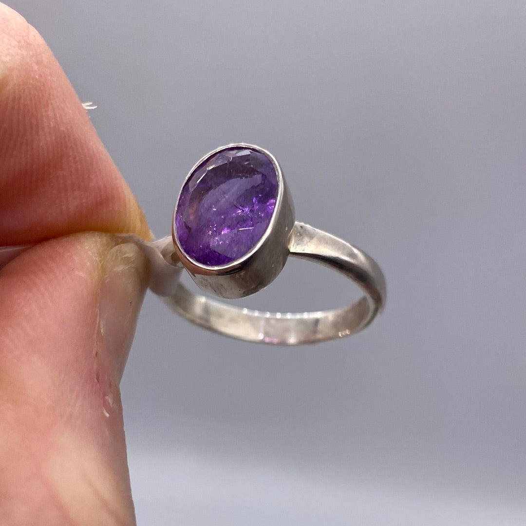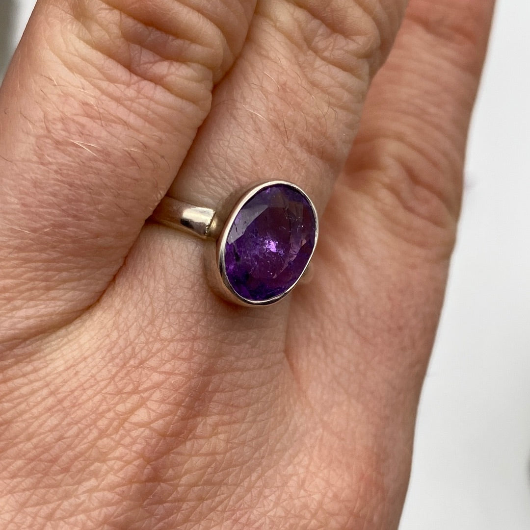 Brandberg Amethyst Facet - RARE 925 Sterling Silver Ring - Size L 1/2