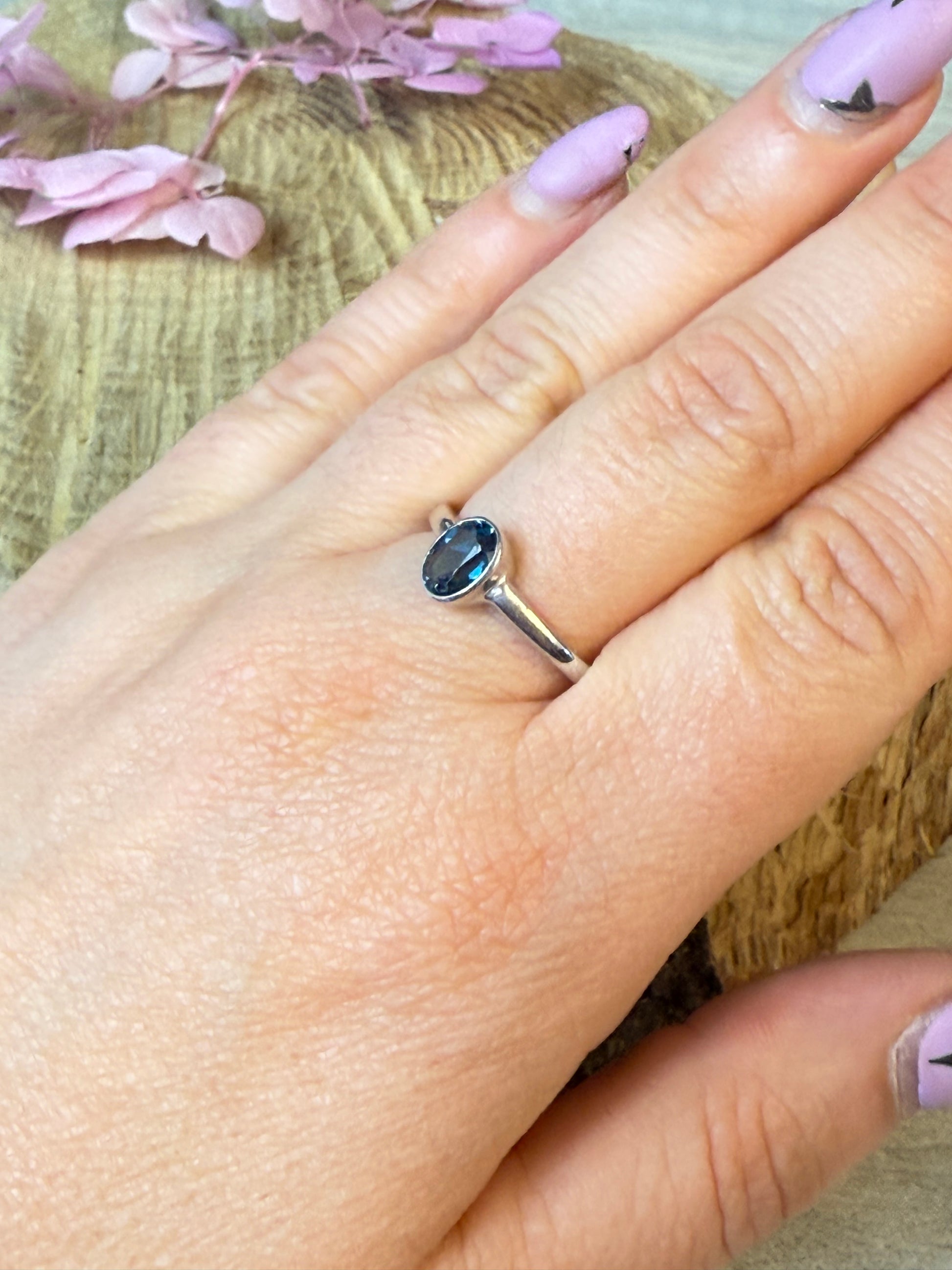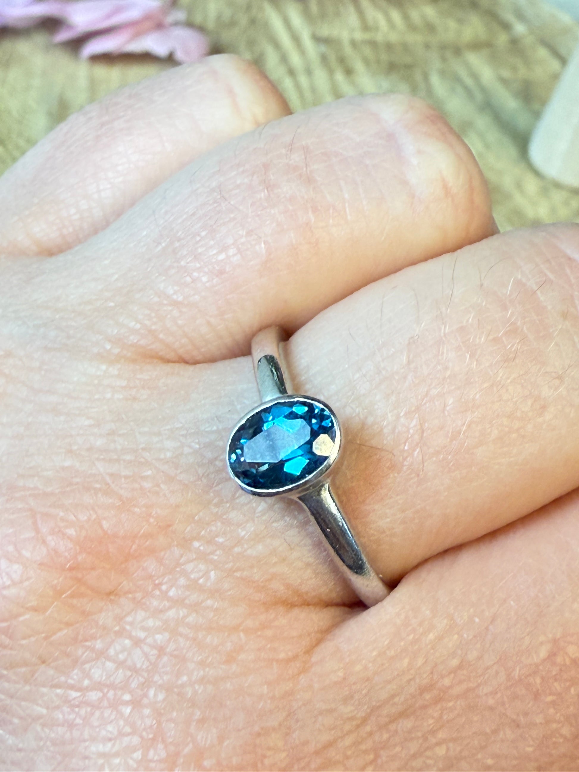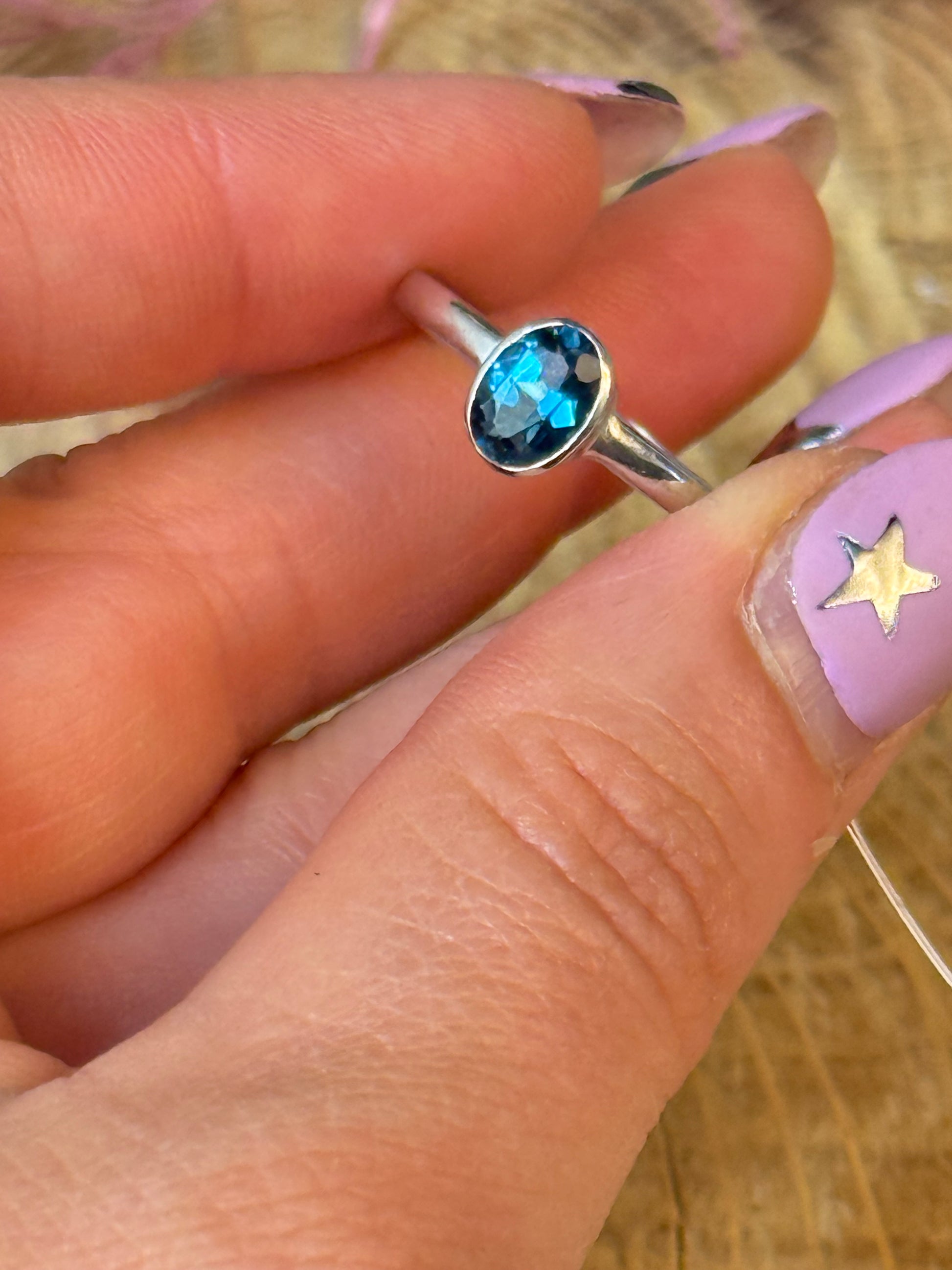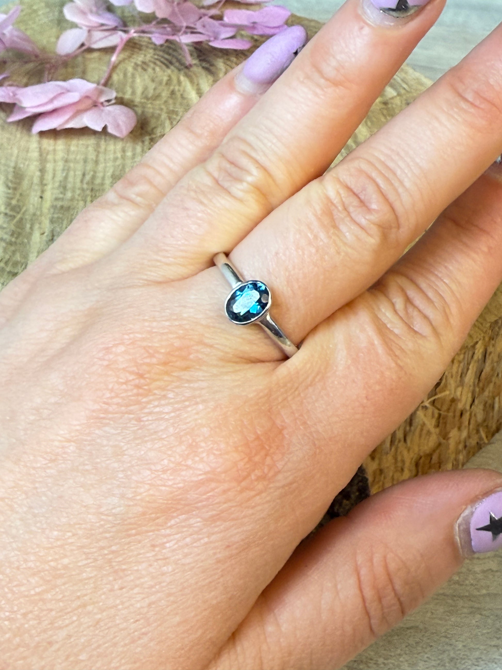 London Blue Topaz 925 Silver Ring - Size R 1/2 - S