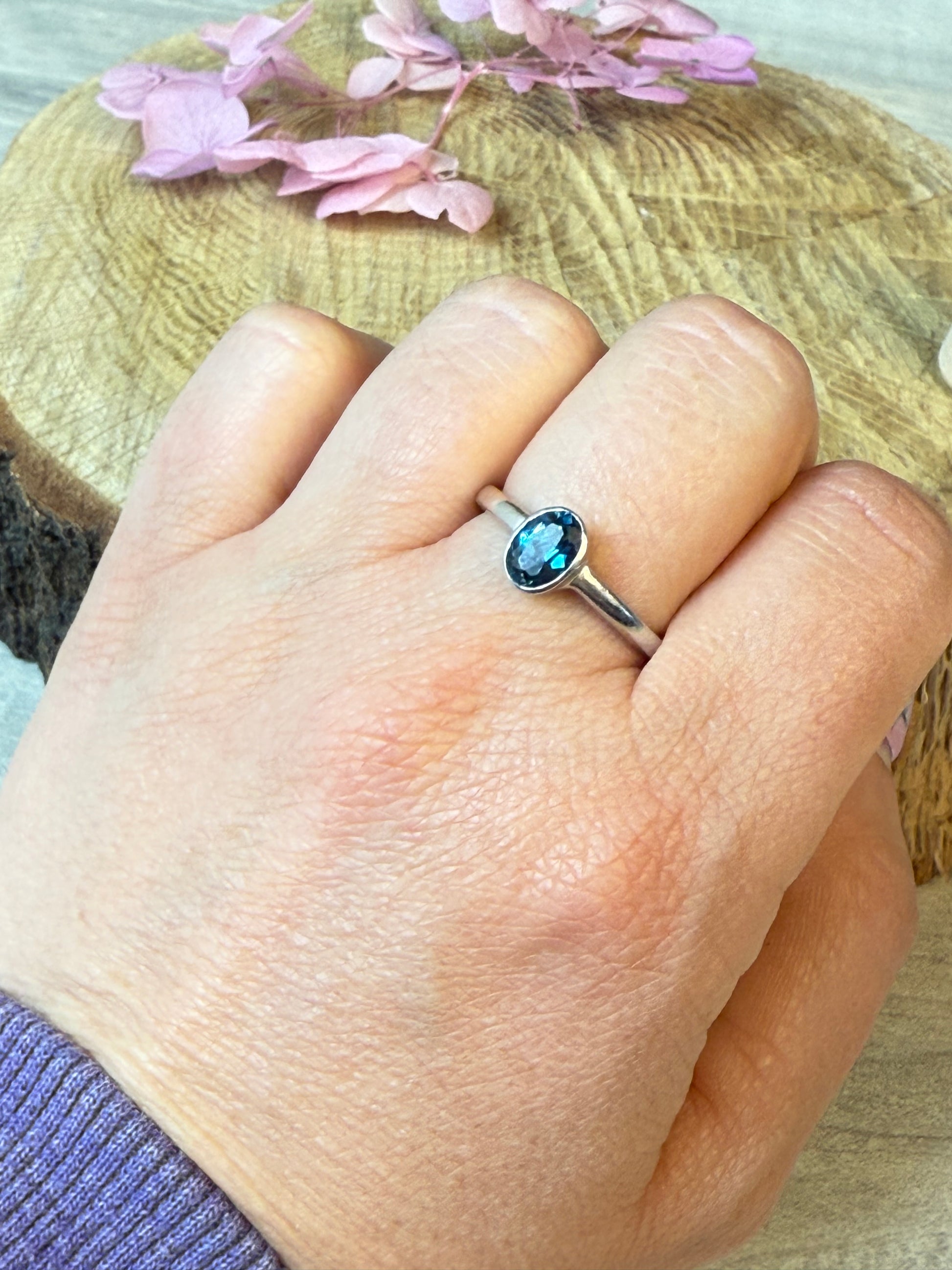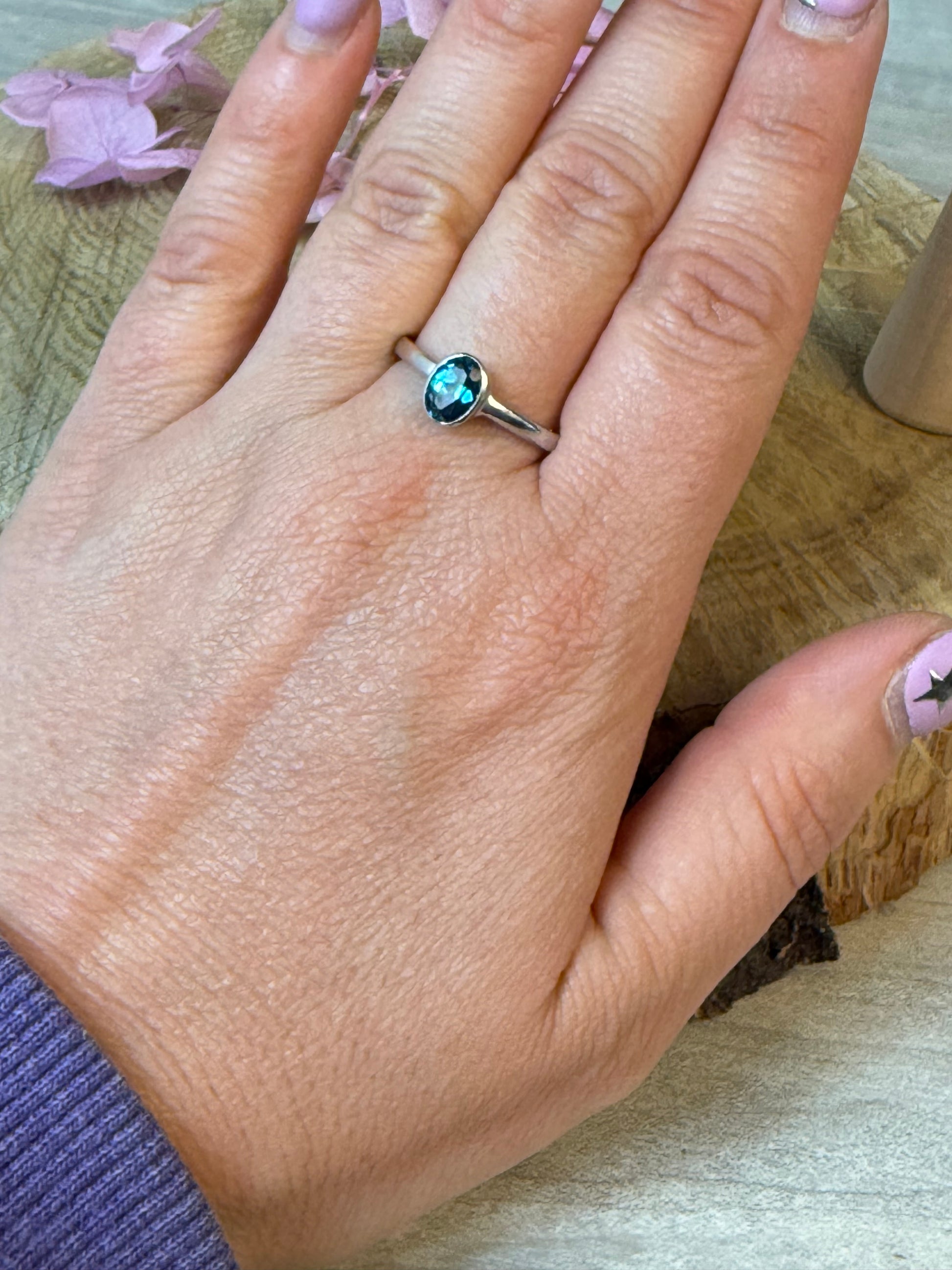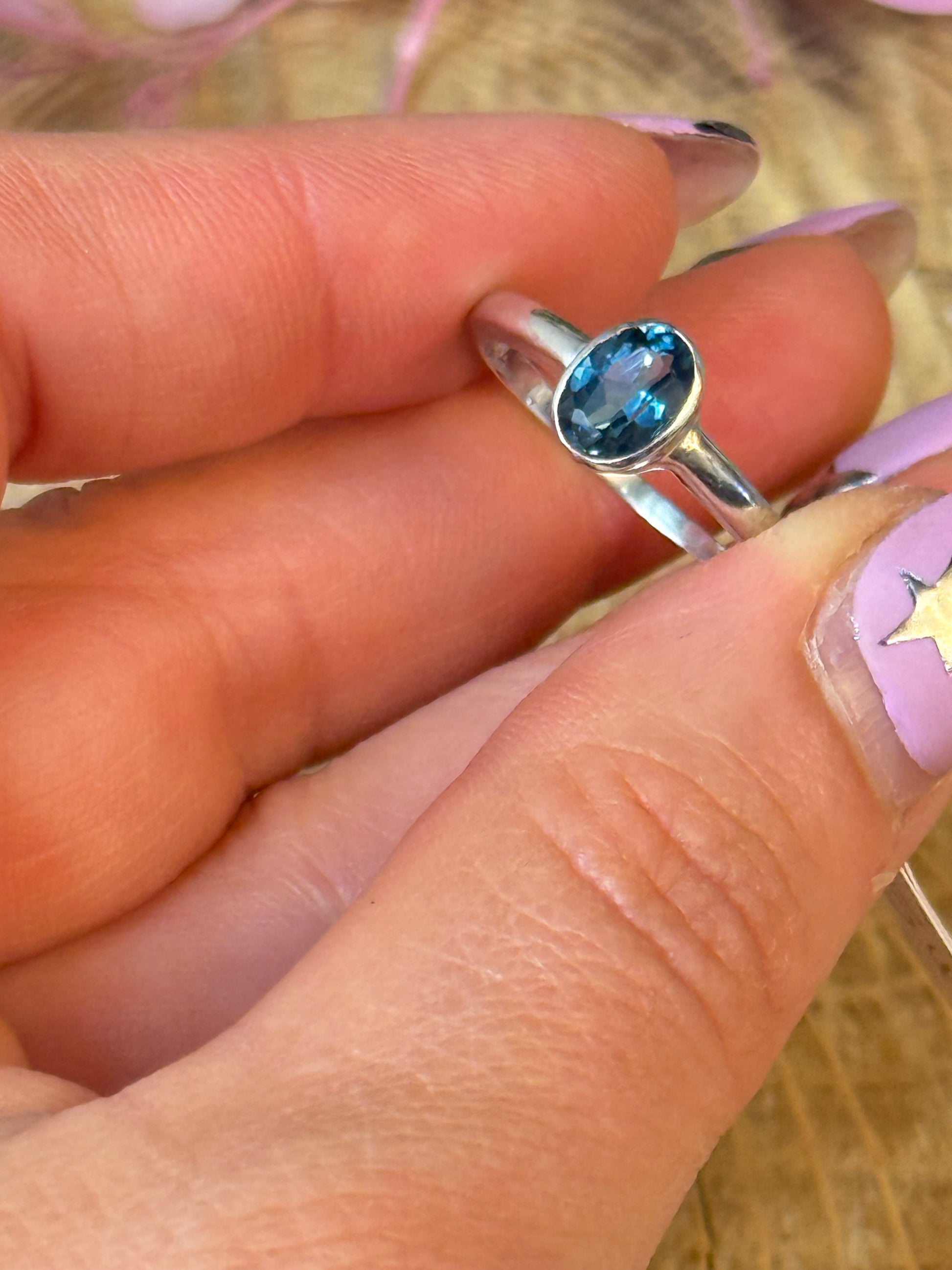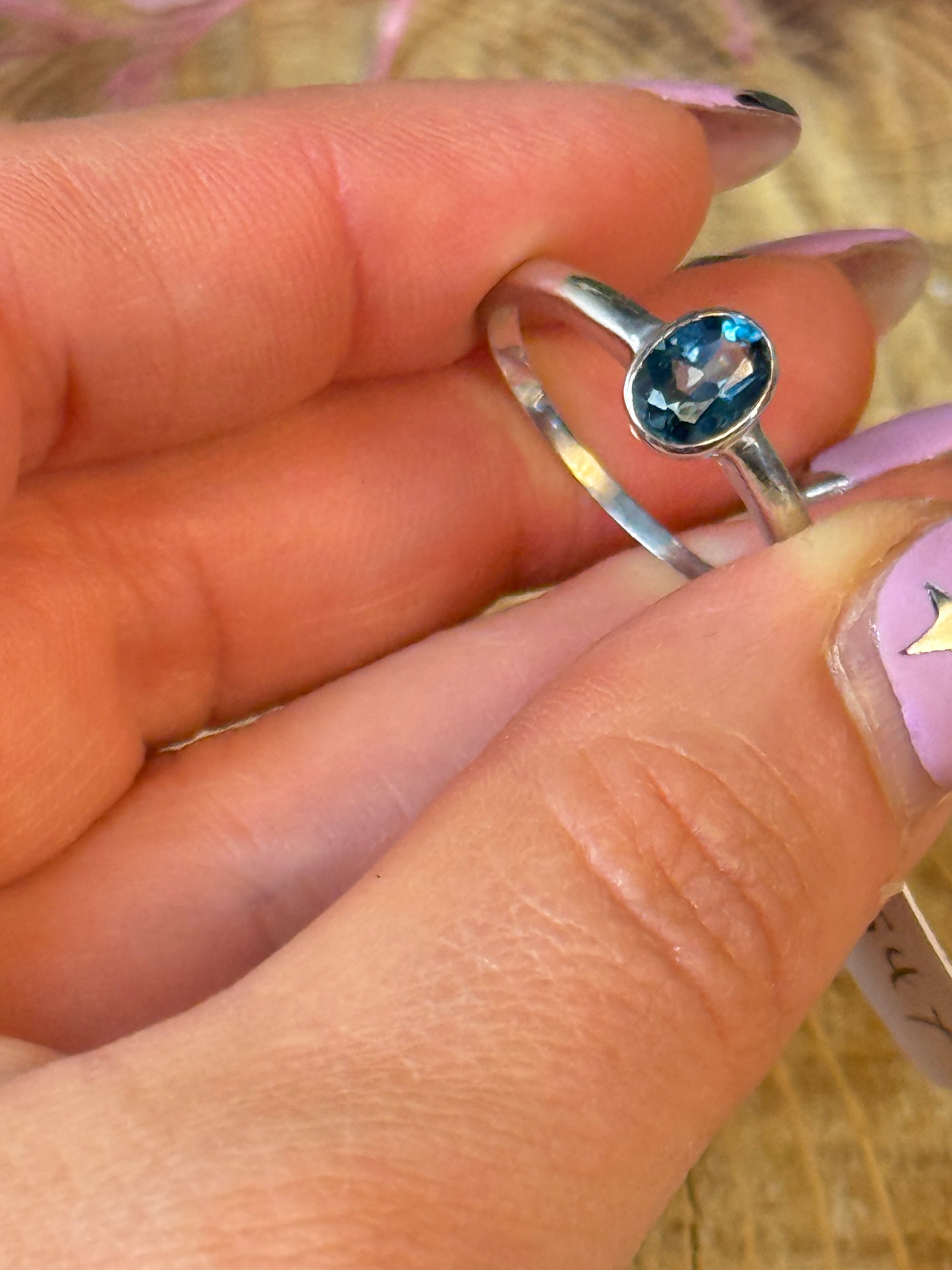 London Blue Topaz 925 Silver Ring - Size R 1/2 - S