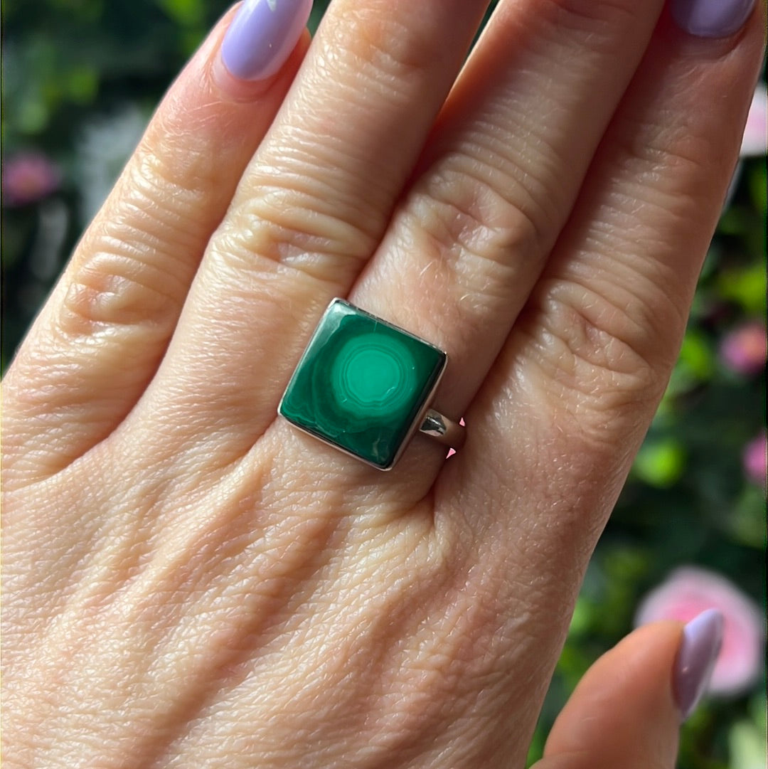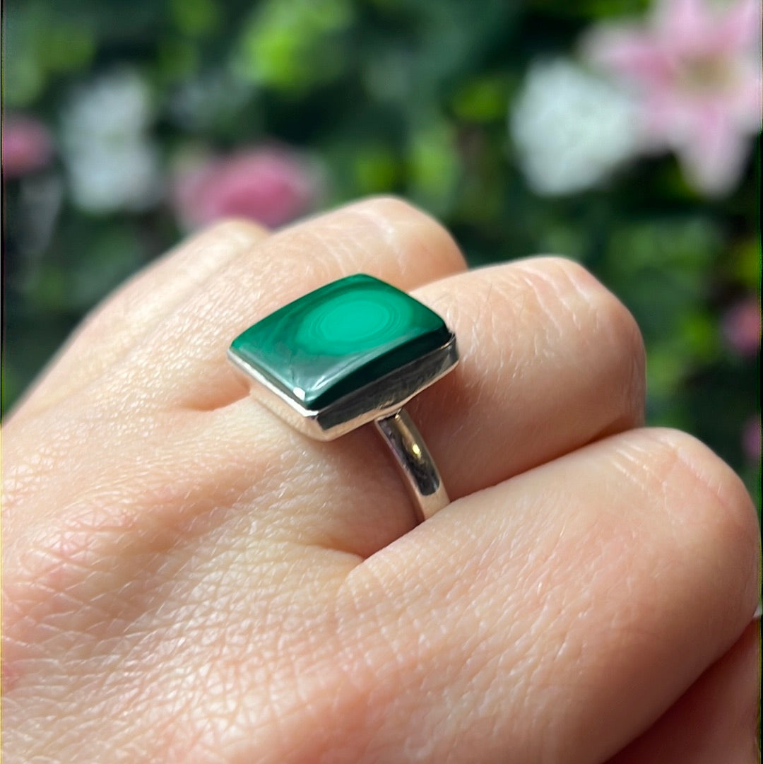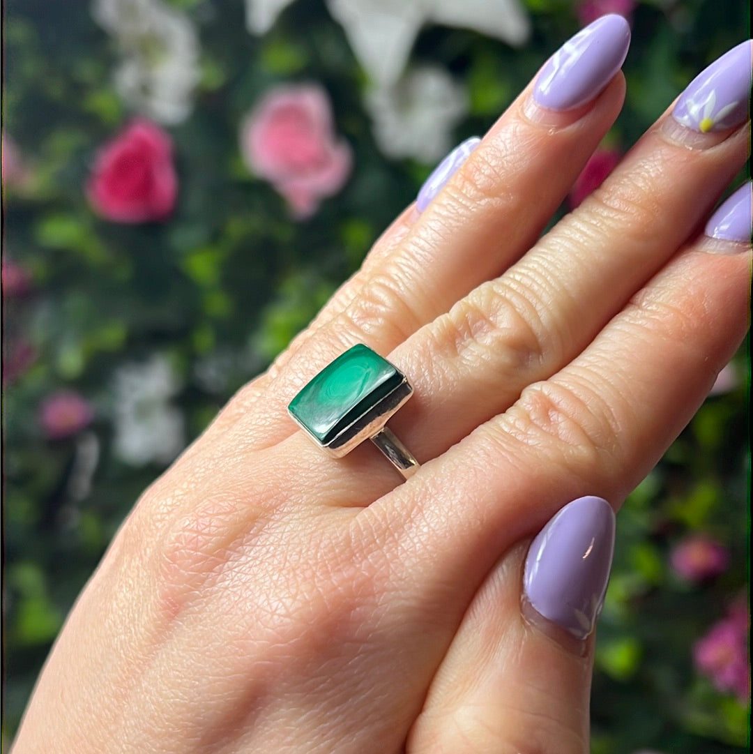 Malachite 925 Sterling Silver Ring - Size N 1/2
