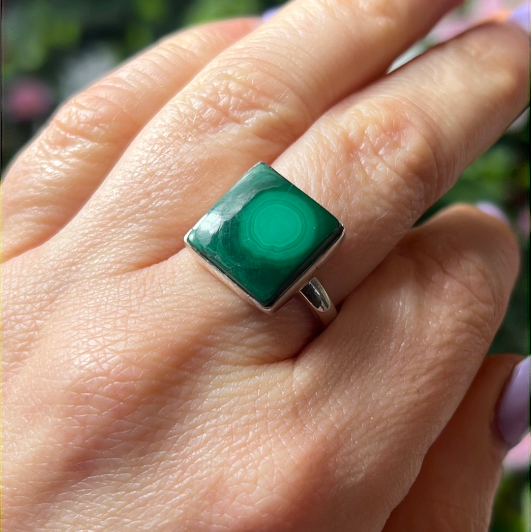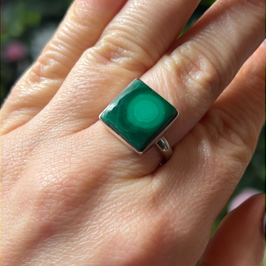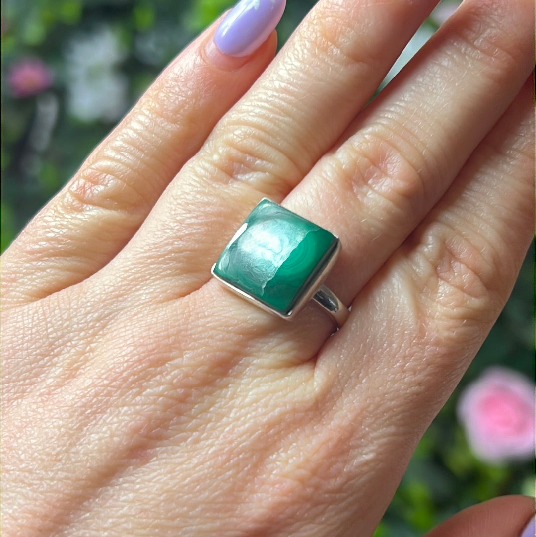 Malachite 925 Sterling Silver Ring - Size N 1/2