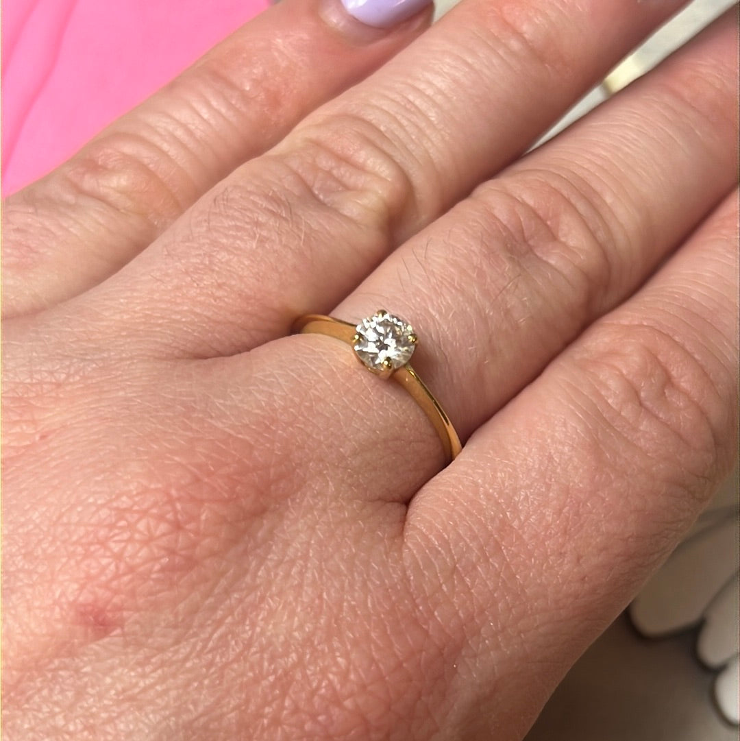 Moissanite 925 Sterling 24ct Gold Ring - Size N 1/2 - O 0.5ct
