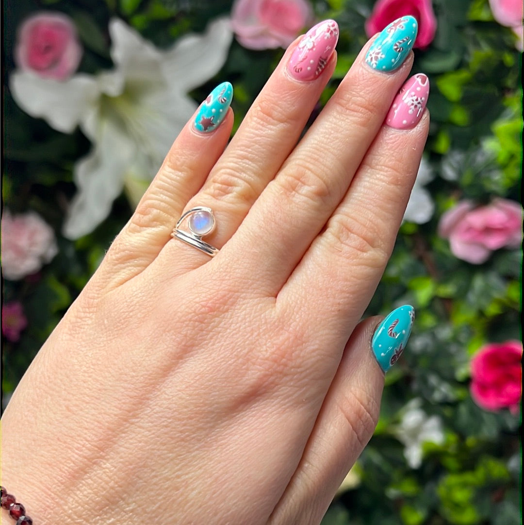 Moonstone Swirl 925 Sterling Silver Ring - Size L 1/2