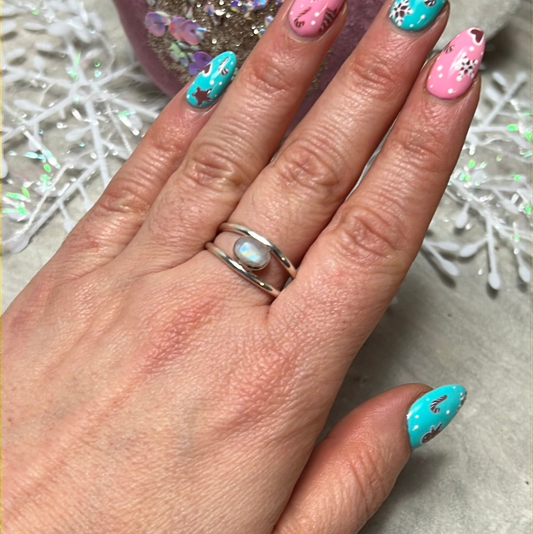 Moonstone Double Bar 925 Sterling Silver Ring - Size S 1/2