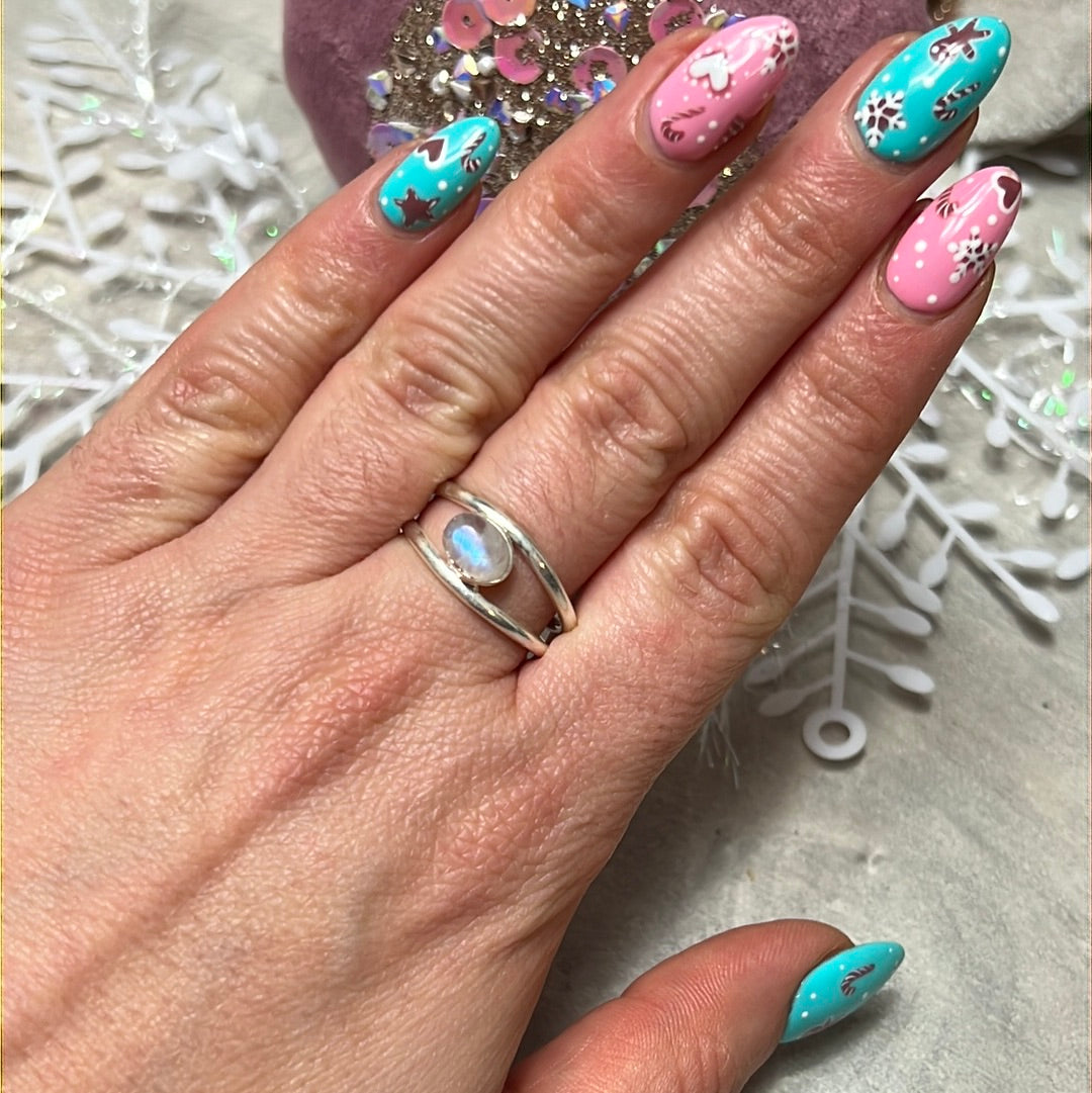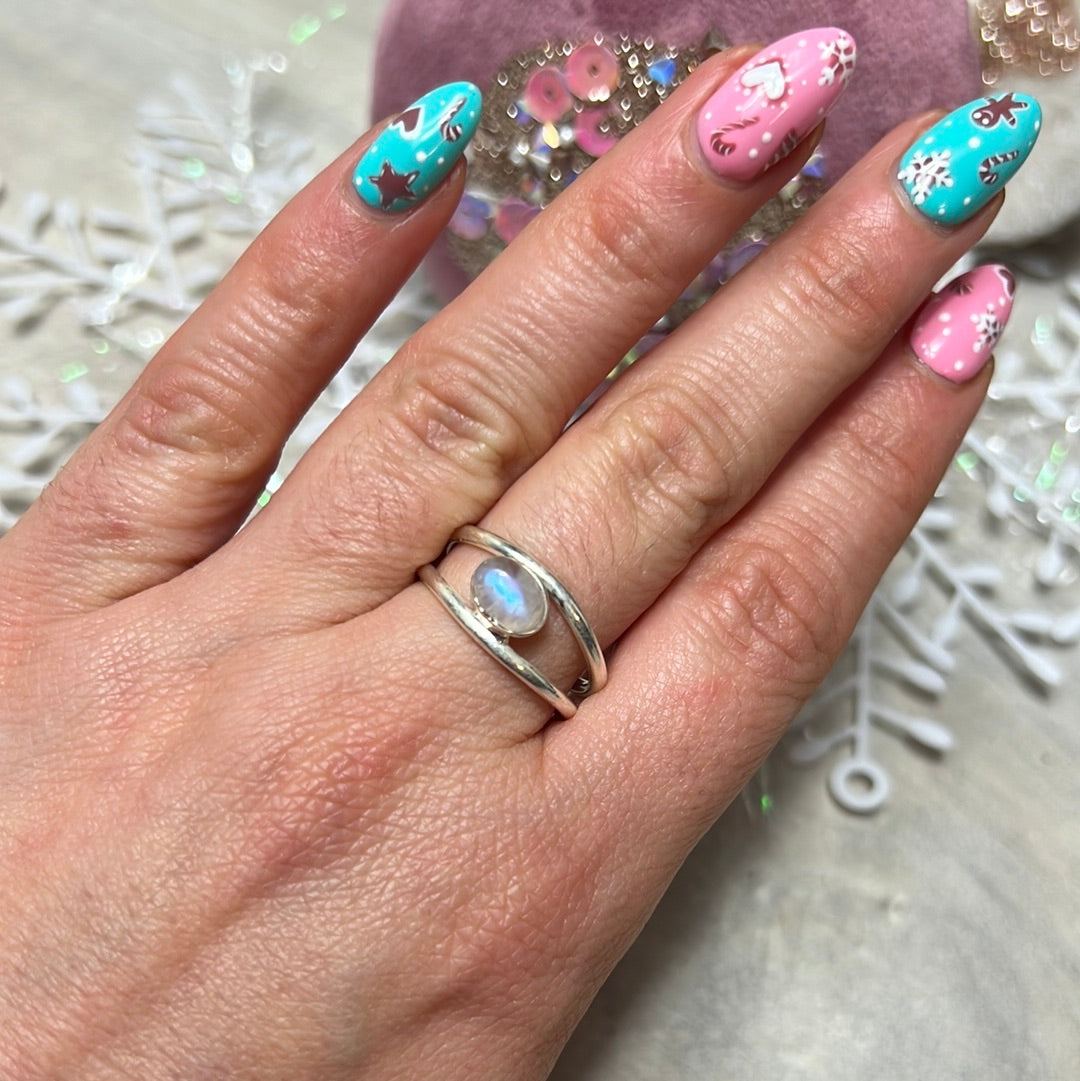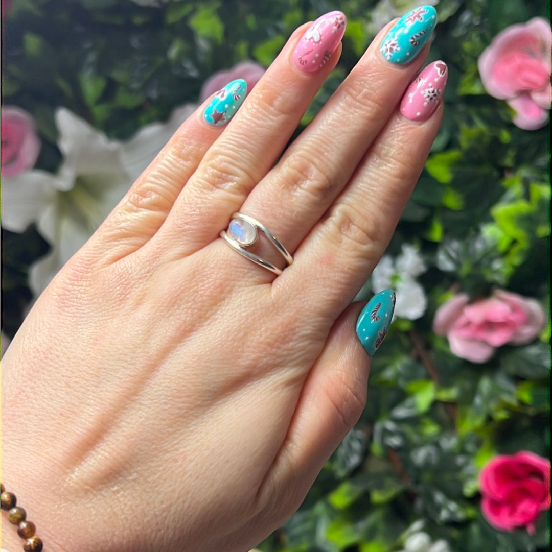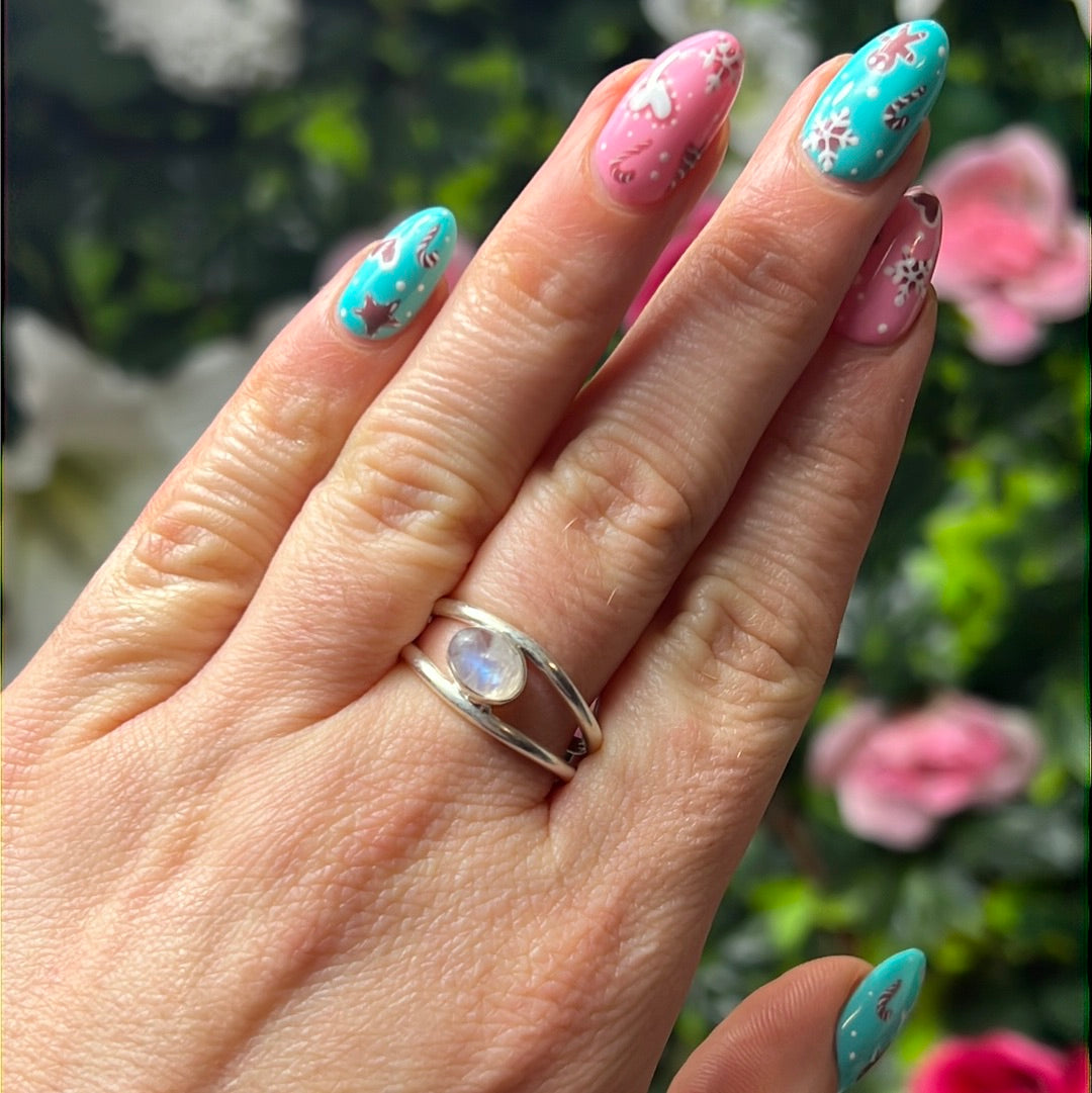 Moonstone Double Bar 925 Sterling Silver Ring - Size O 1/2