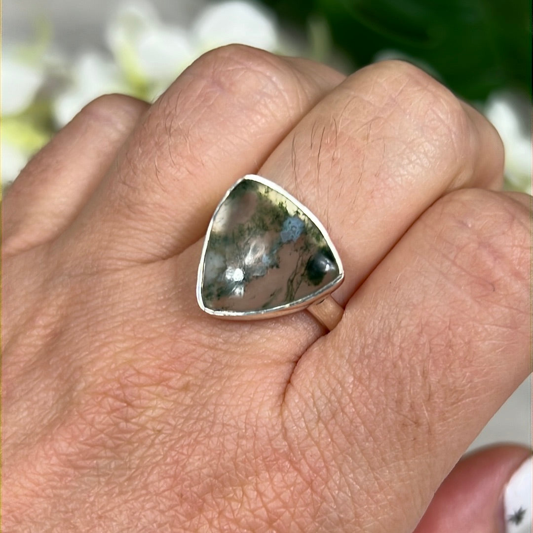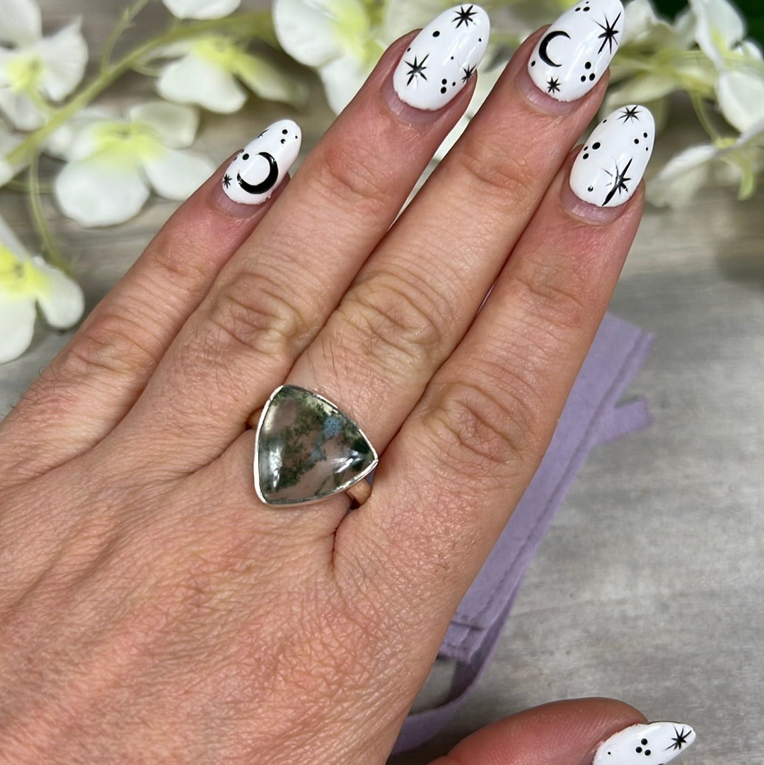 Moss Agate 925 Sterling Silver Ring - Size P 1/2 - Q