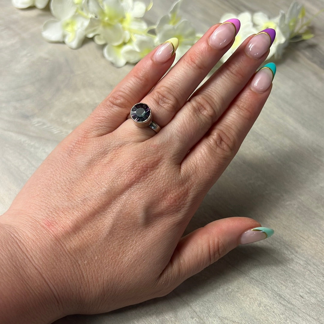Mystic Fire Topaz Facet 925 Silver Ring - Size L 1/2