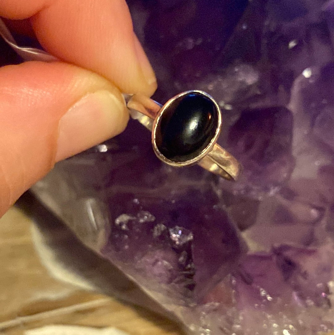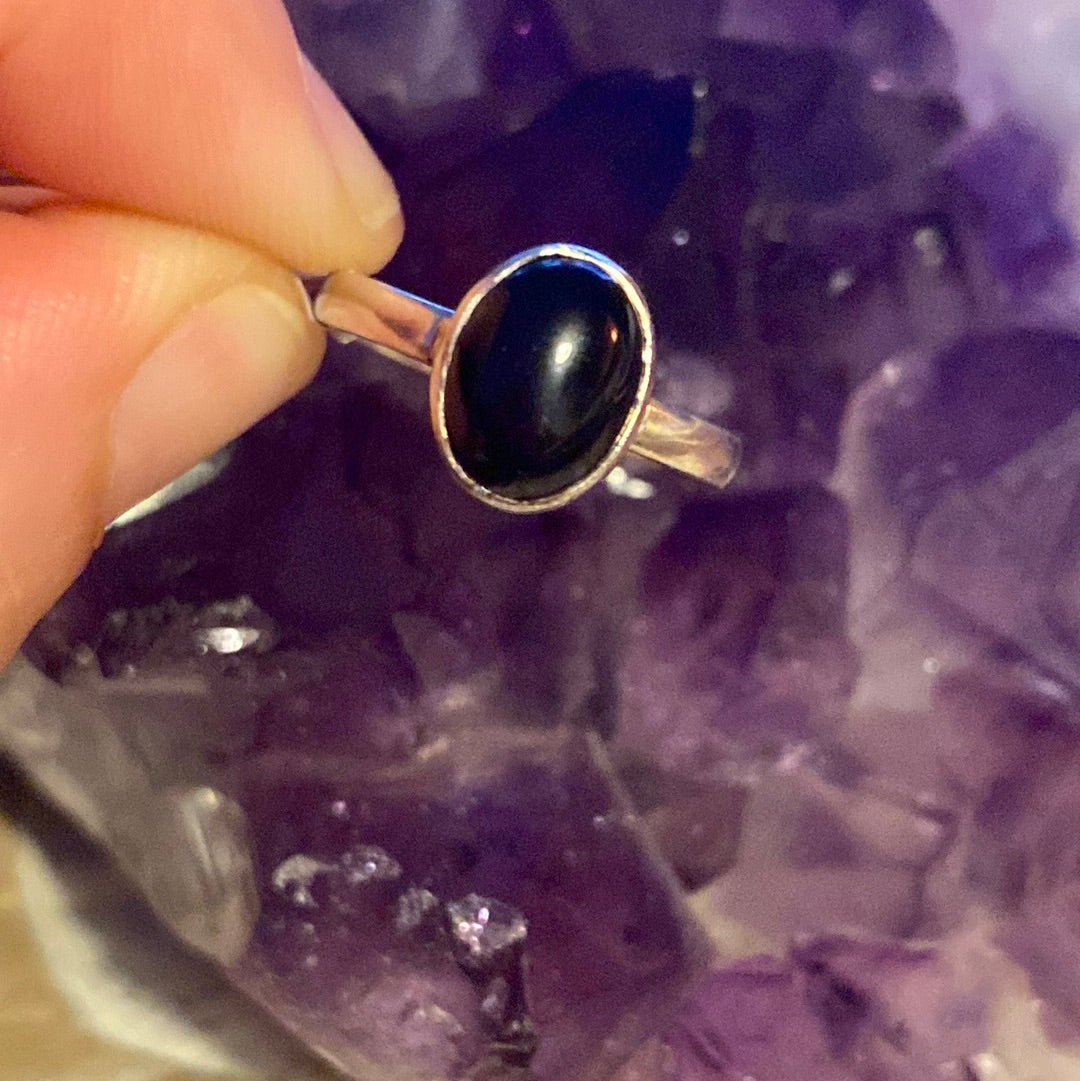Black Onyx 925 Ring - Size L