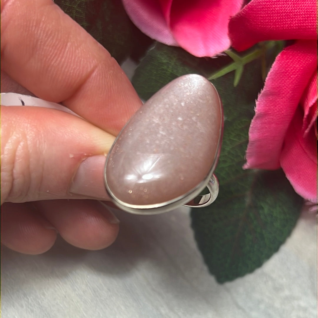 Peach Moonstone 925 Sterling Silver Ring - Size O - O 1/2
