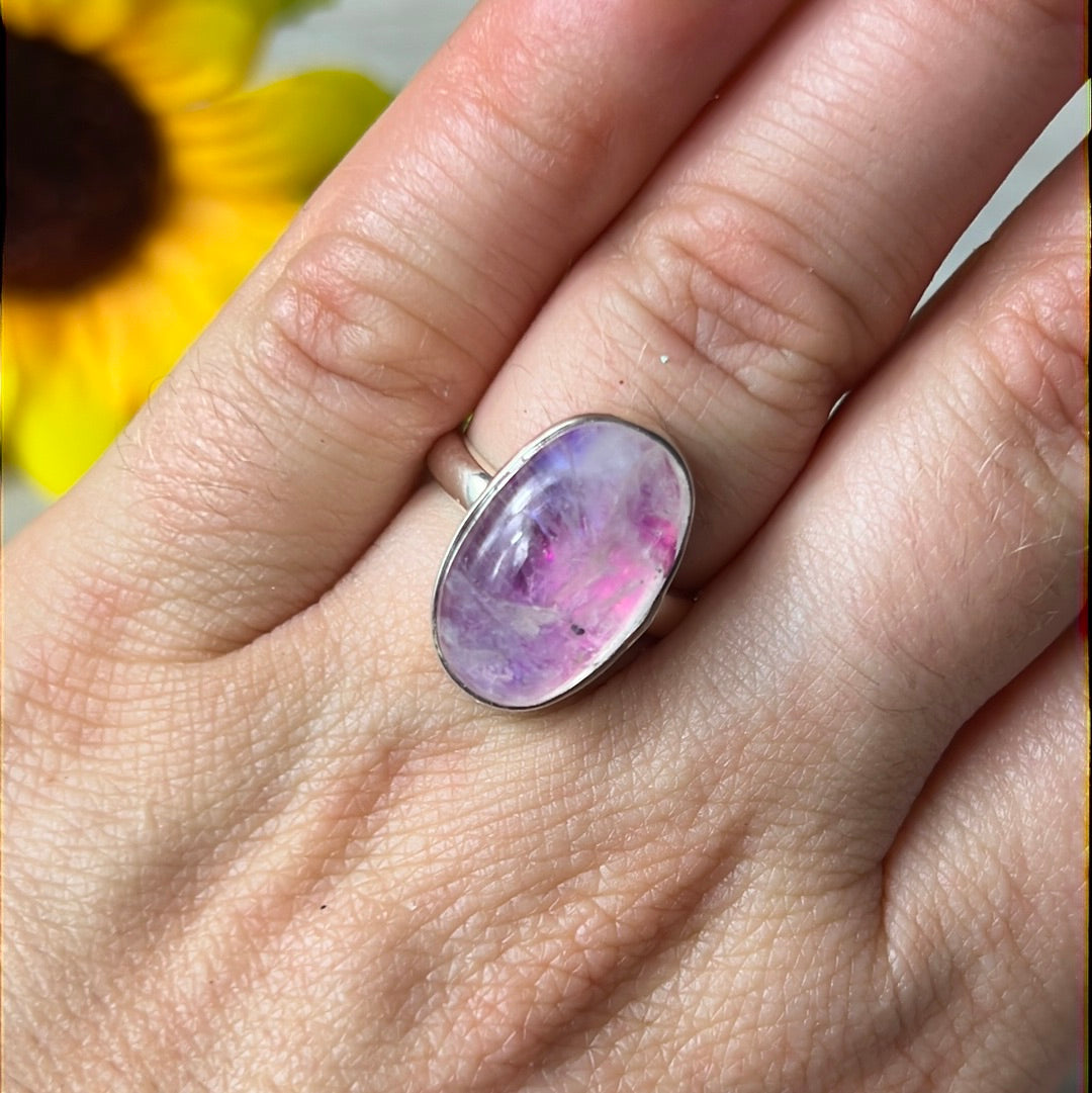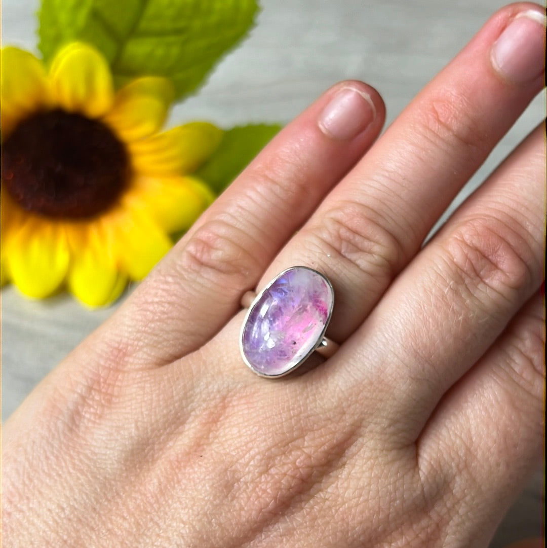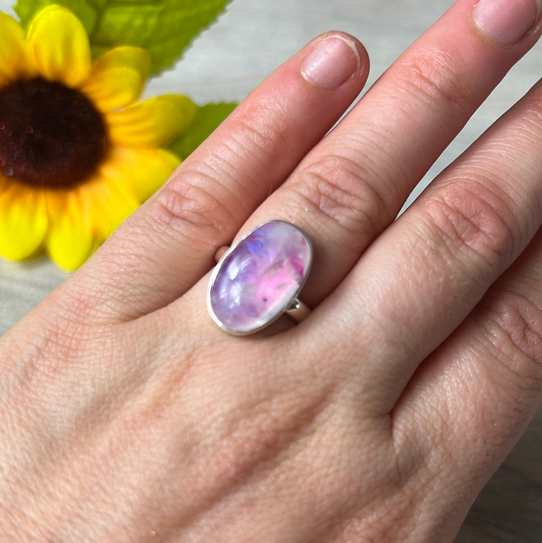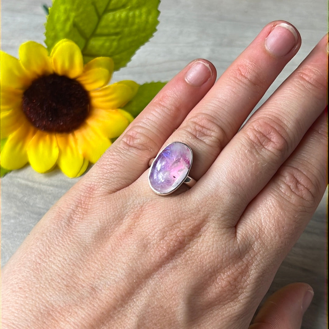 Pink Moonstone 925 Silver Ring - Size L 1/2
