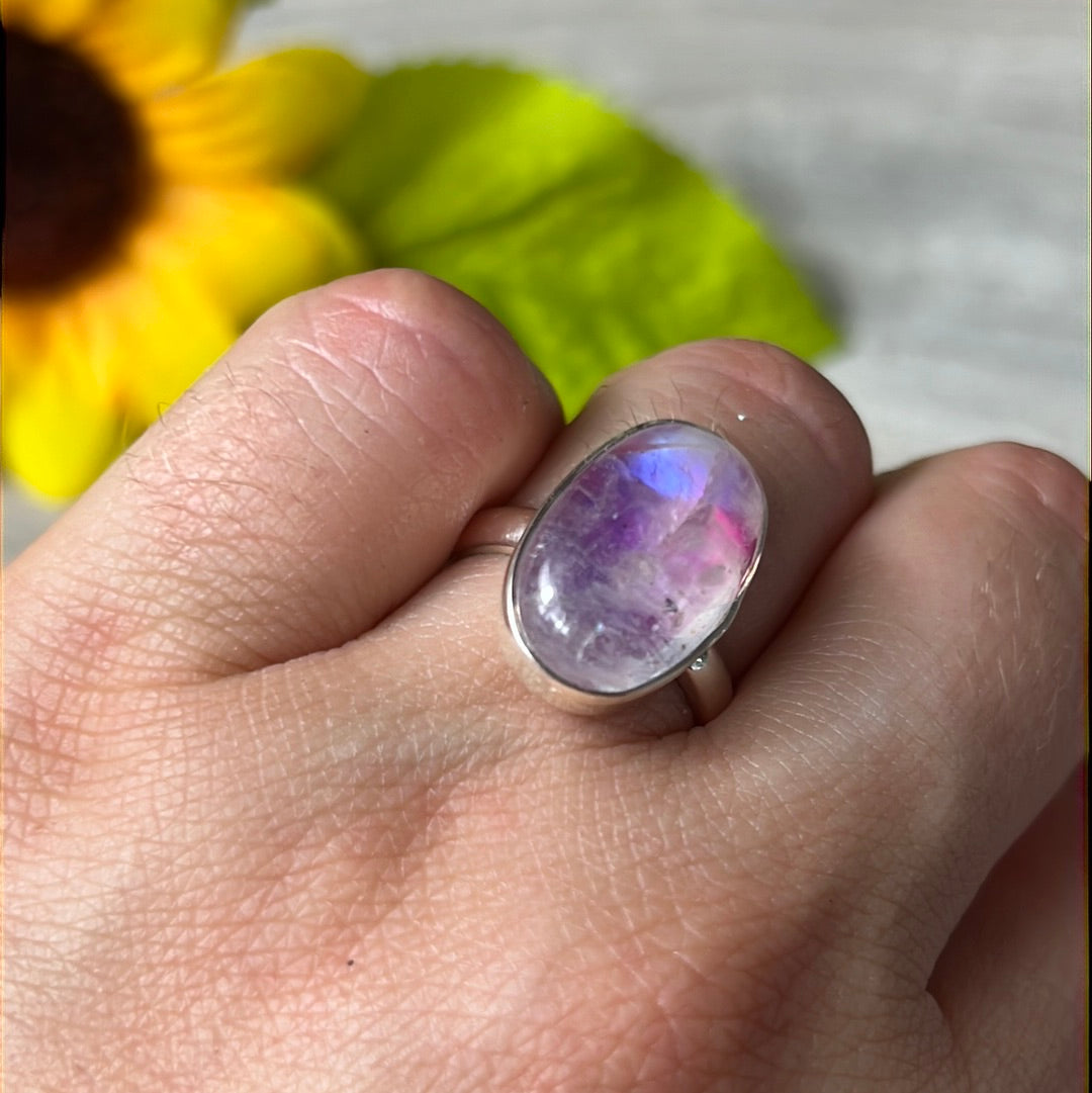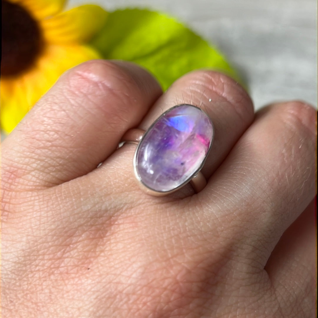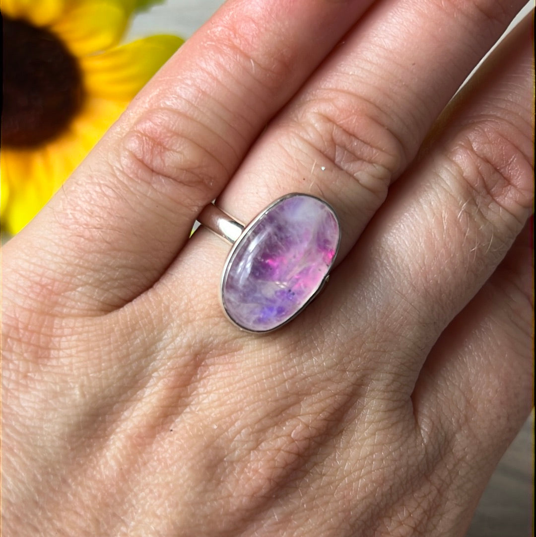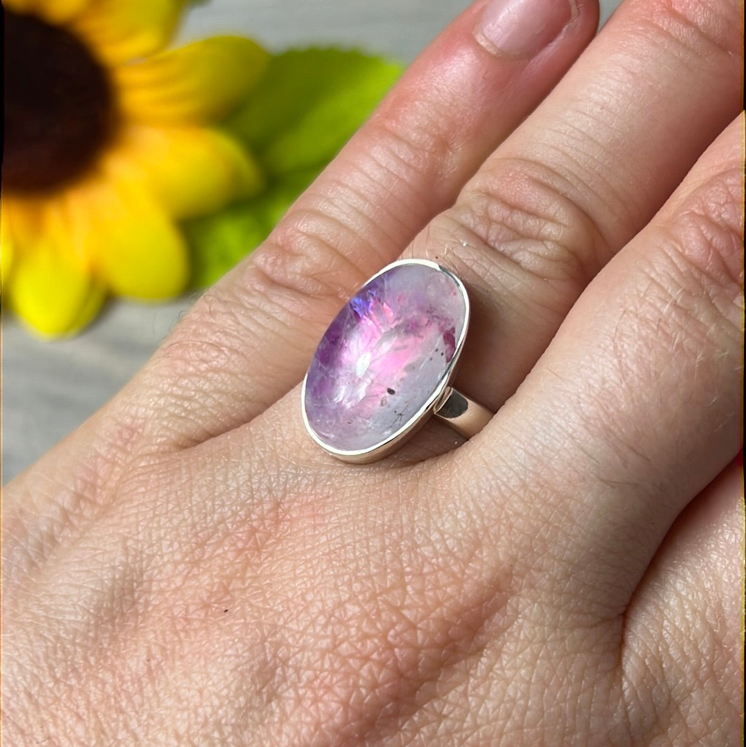 Pink Moonstone 925 Silver Ring - Size L 1/2