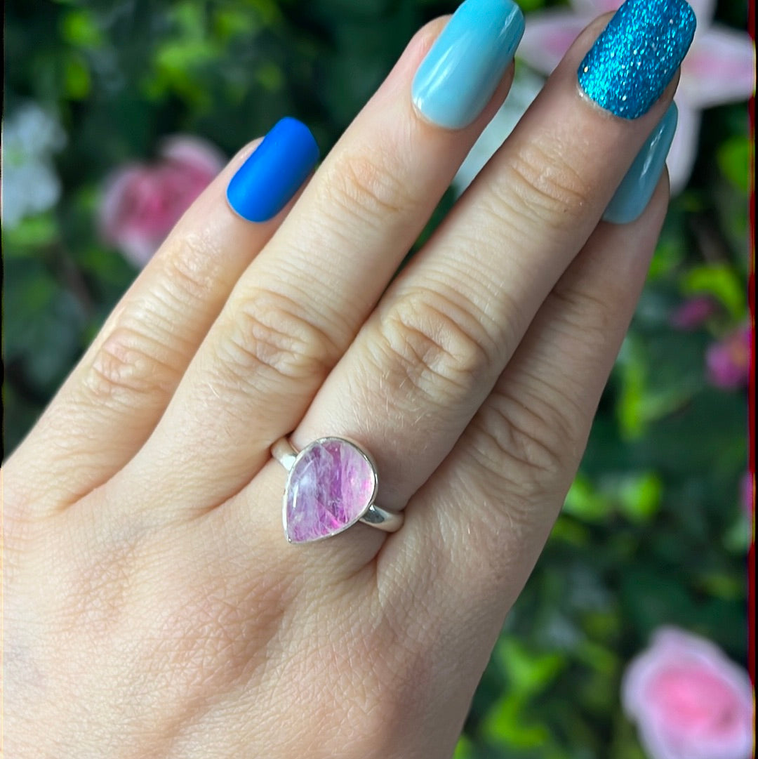 Pink Moonstone 925 Silver Ring - Size N 1/2
