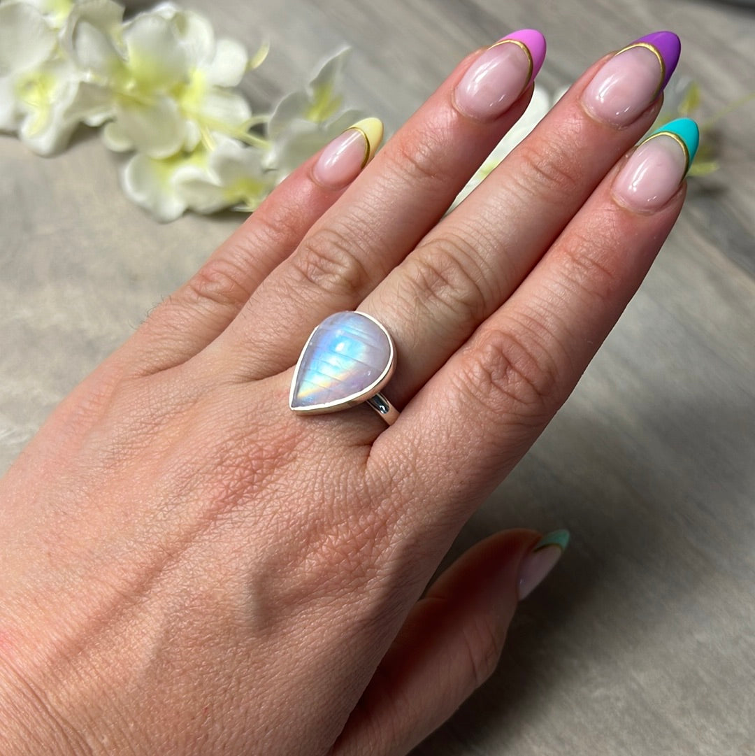 Pink Moonstone 925 Silver Ring - Size P 1/2