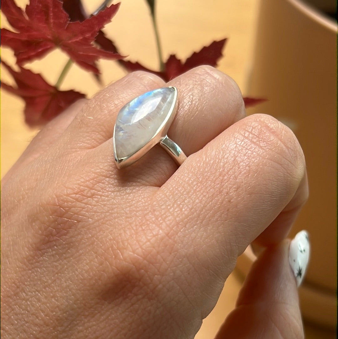 Rainbow Moonstone 925 Sterling Silver Ring - Size P 1/2