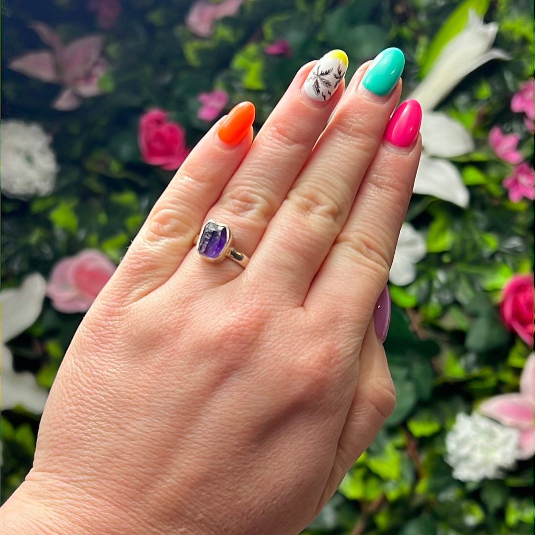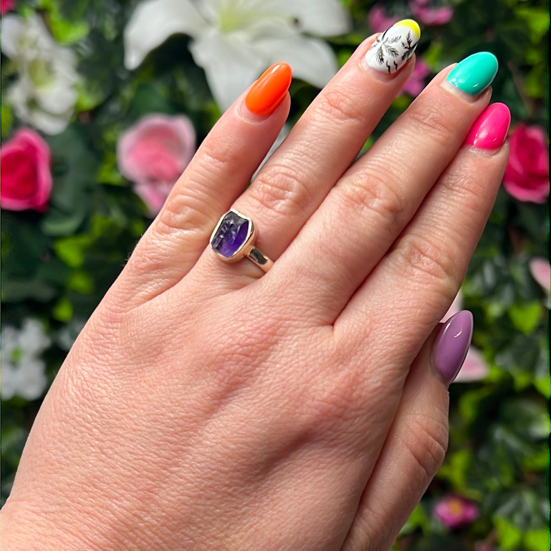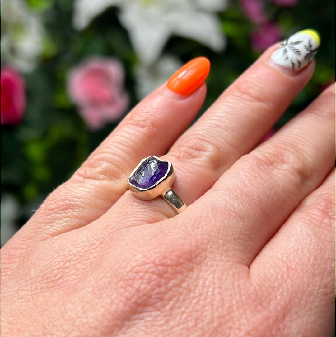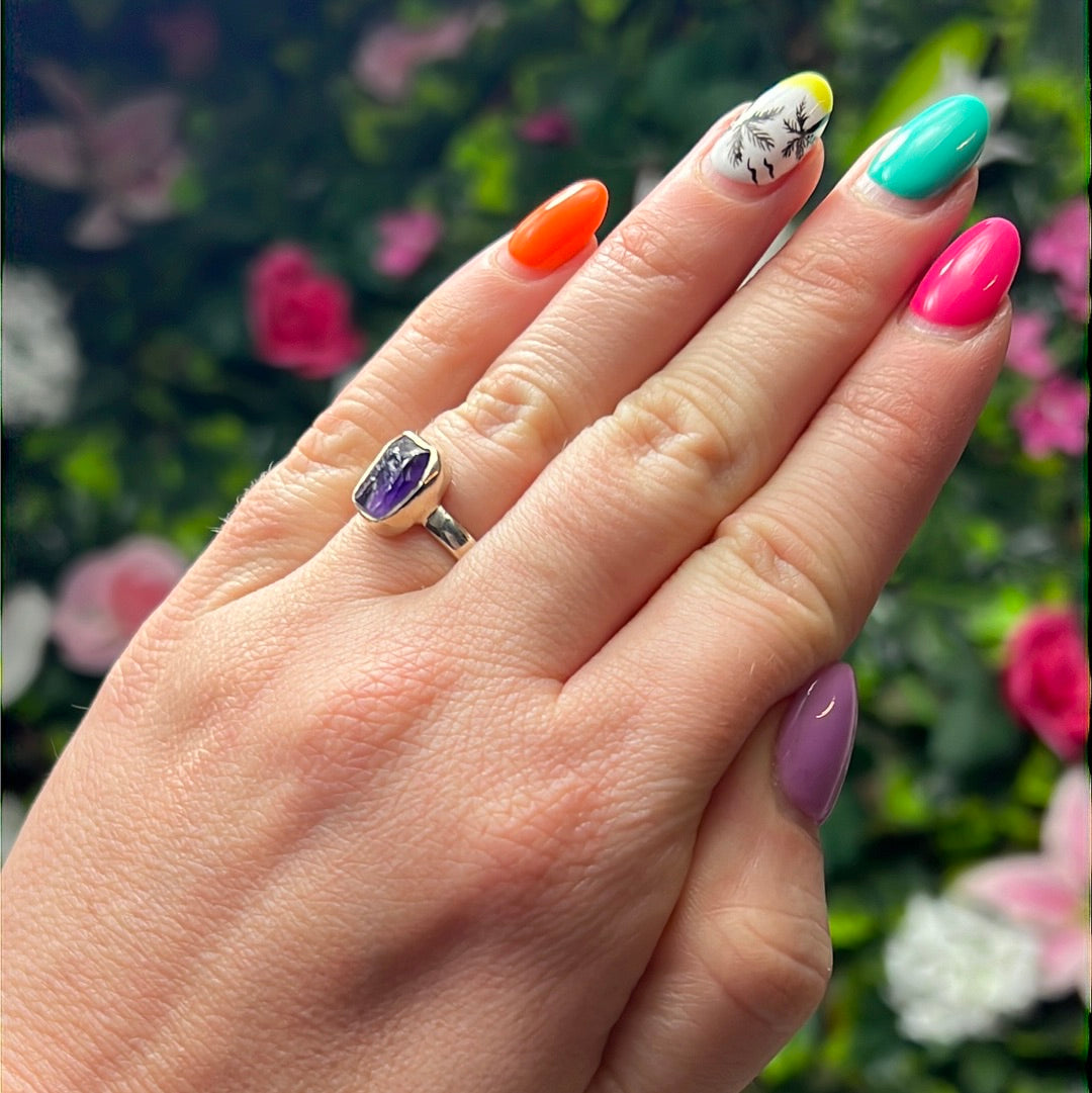 Amethyst Raw 925 Sterling Silver Ring - Size M