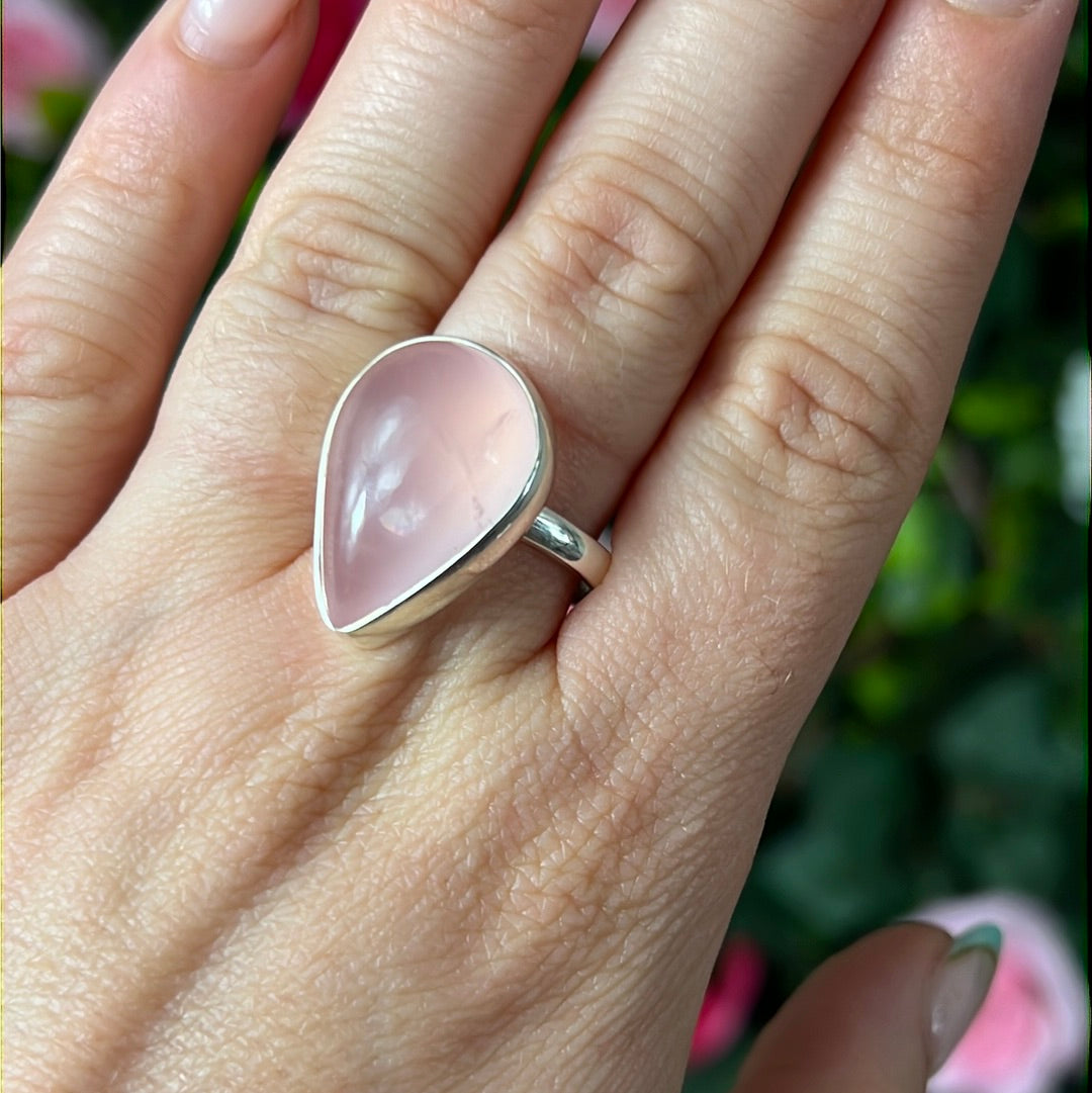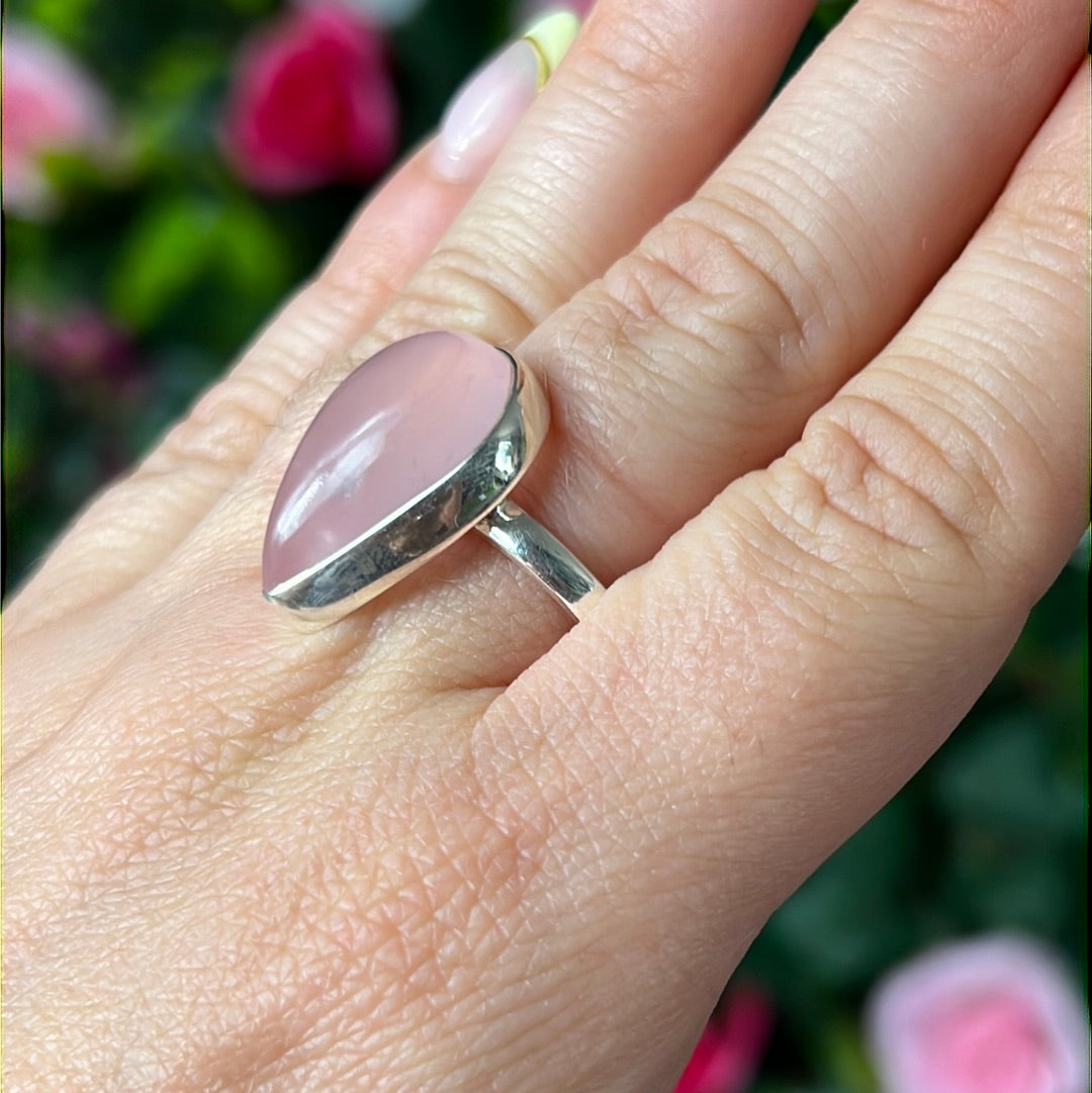 Rose Quartz 925 Silver Ring - Size S 1/2