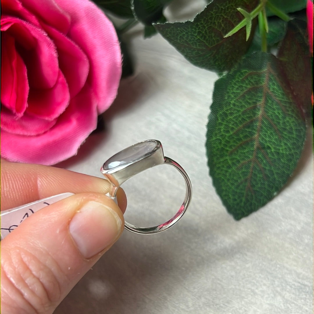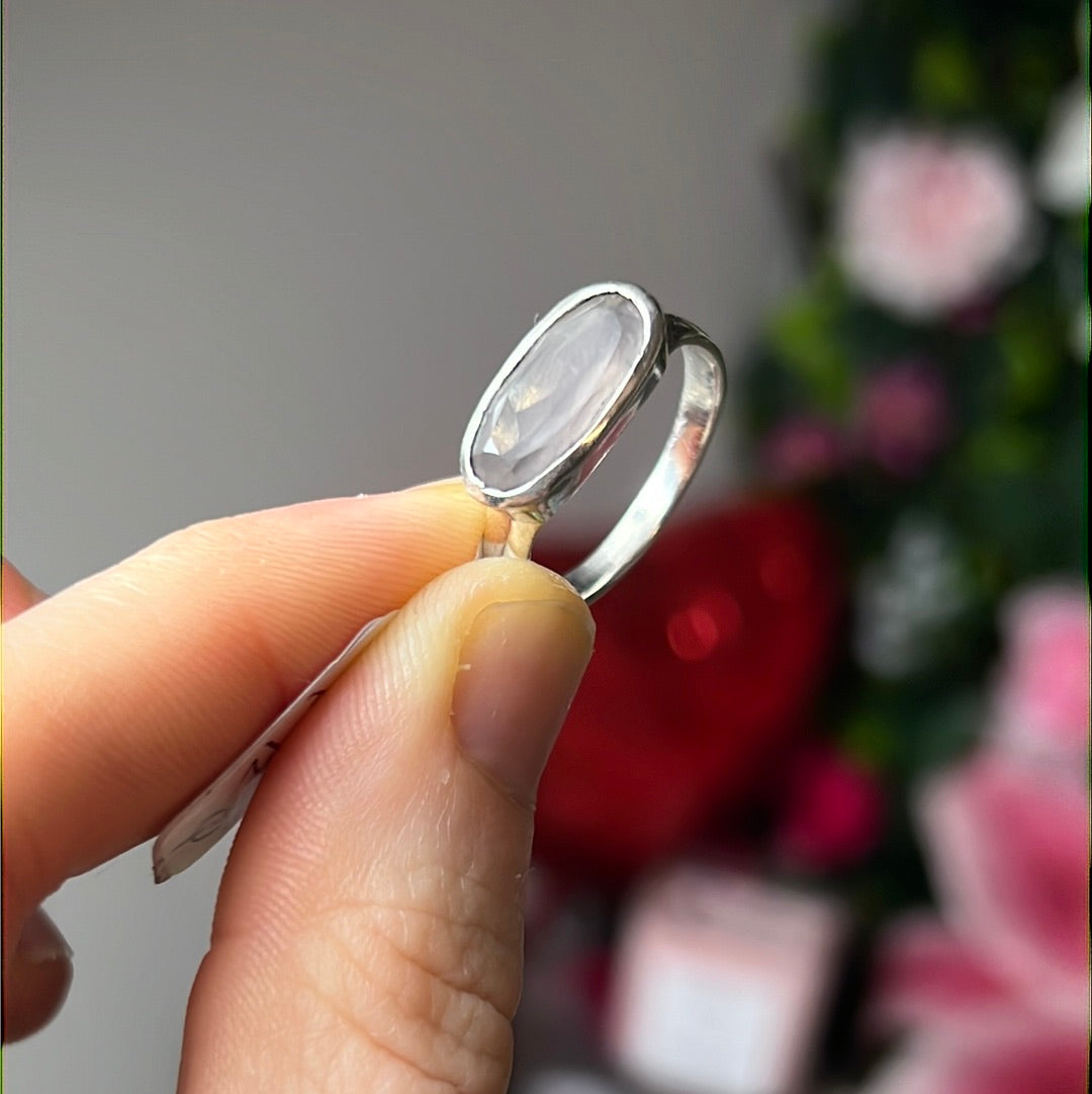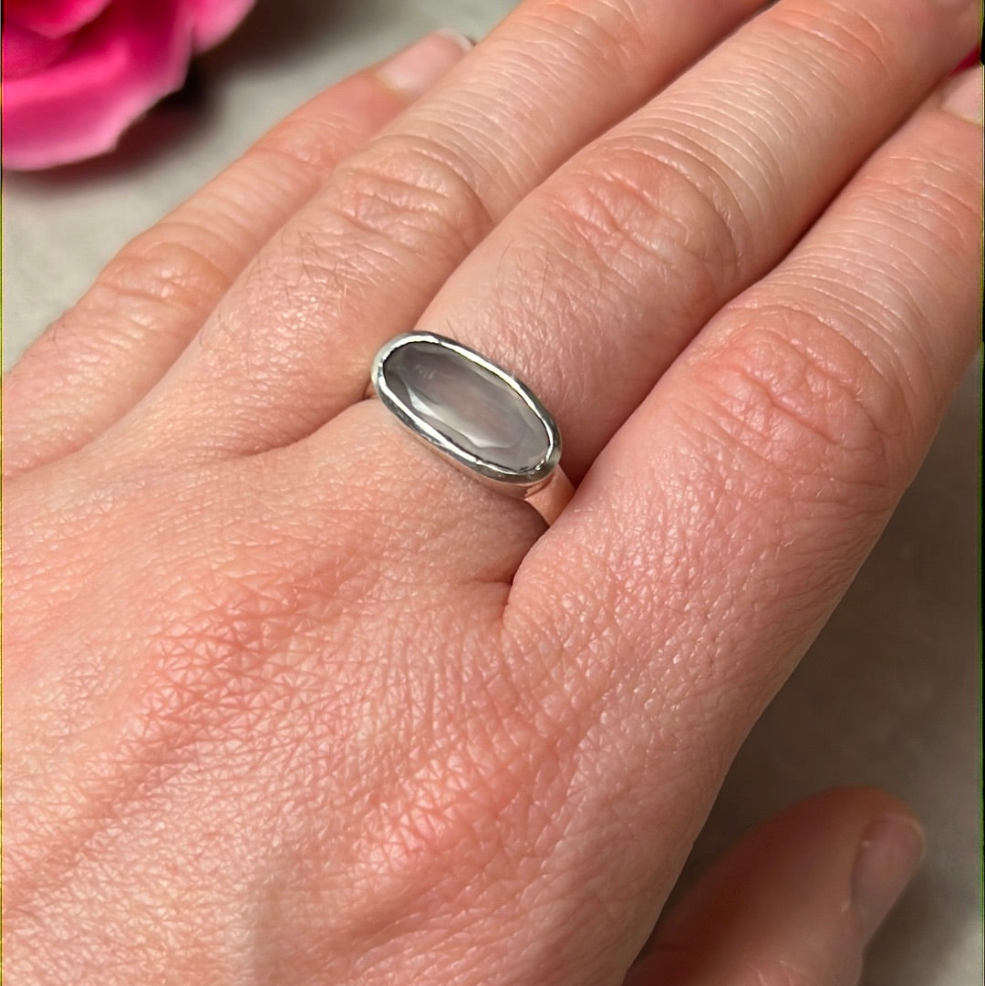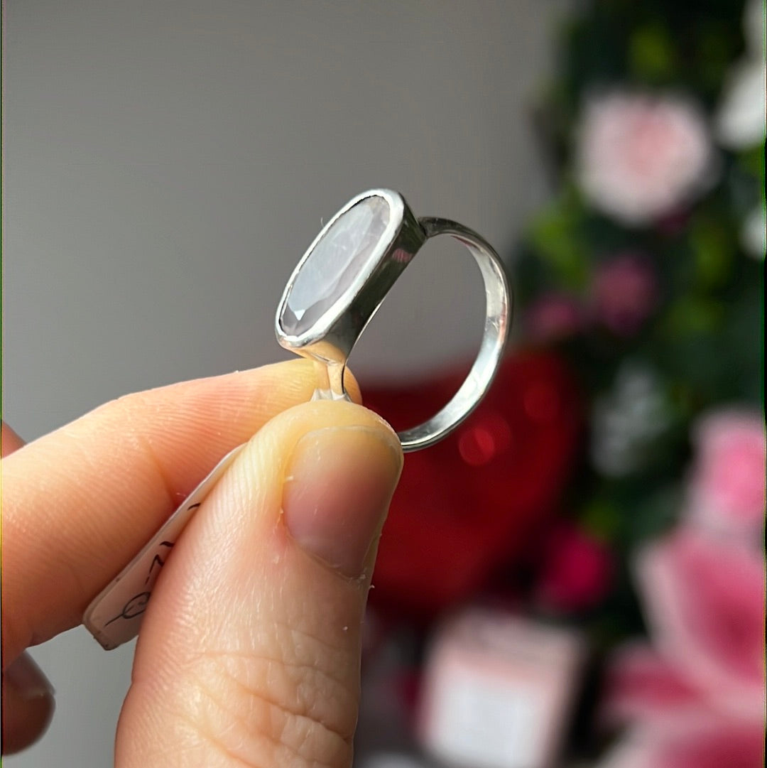 Rose Quartz Facet Bar 925 Ring - Size P 1/2- Q
