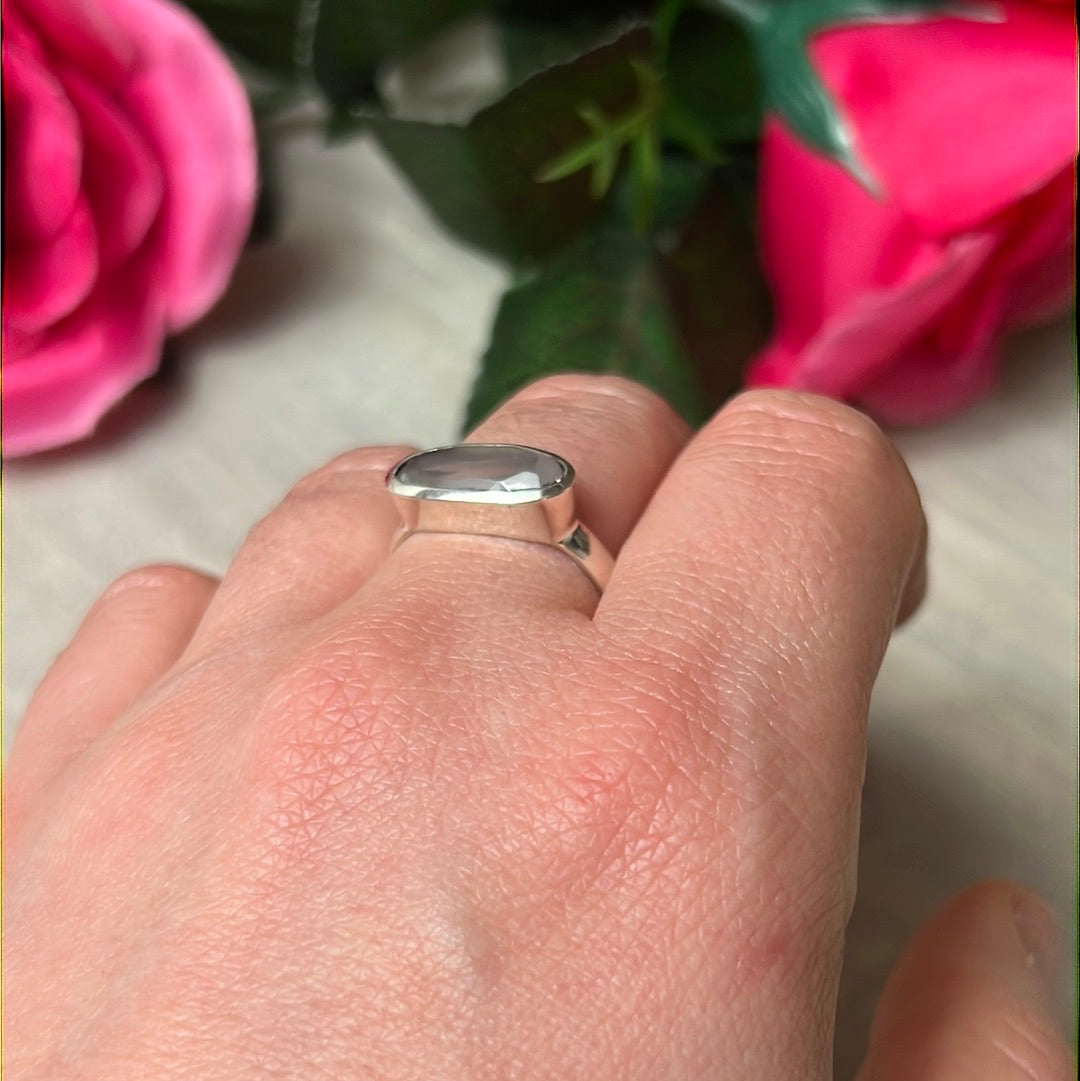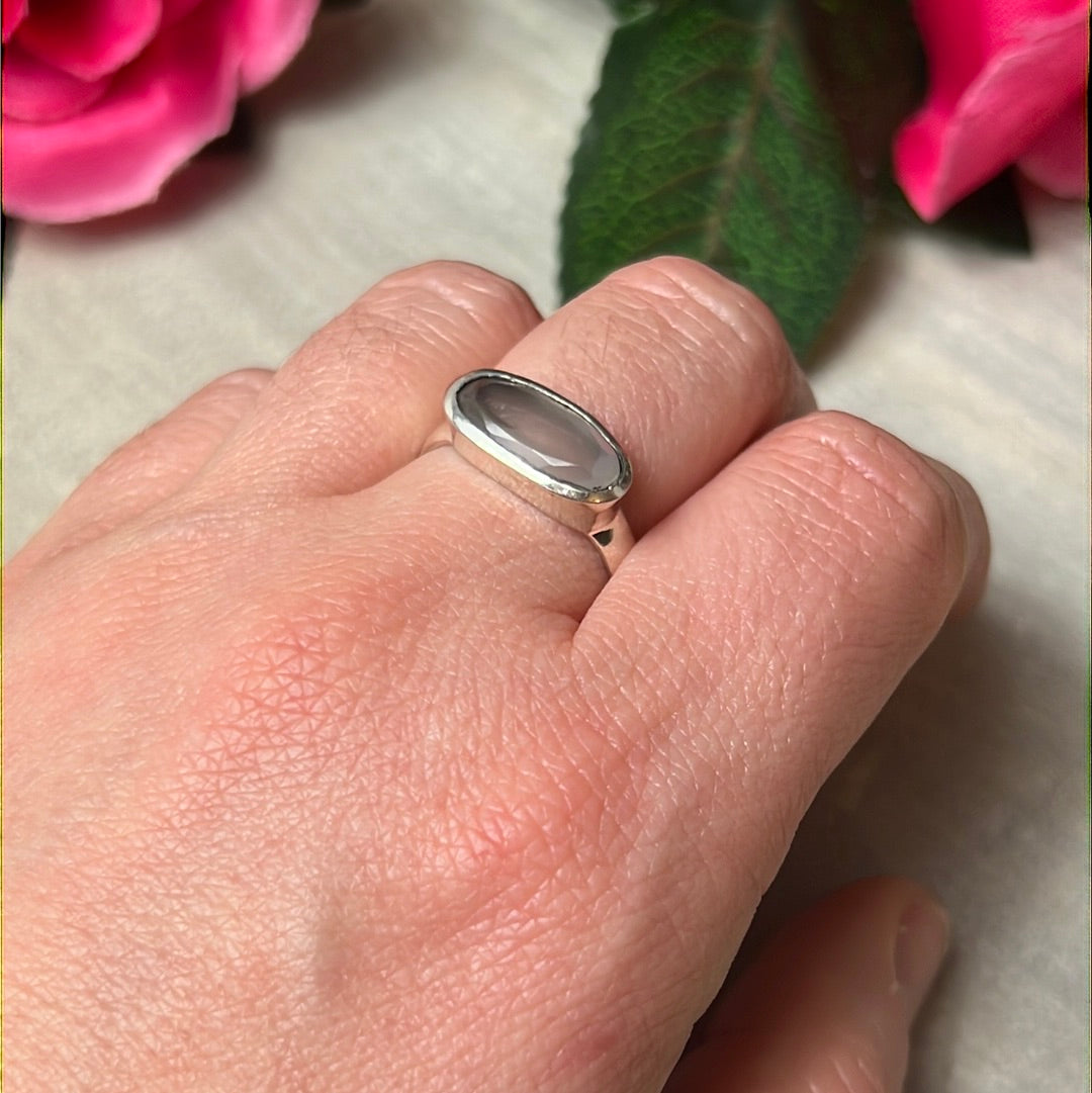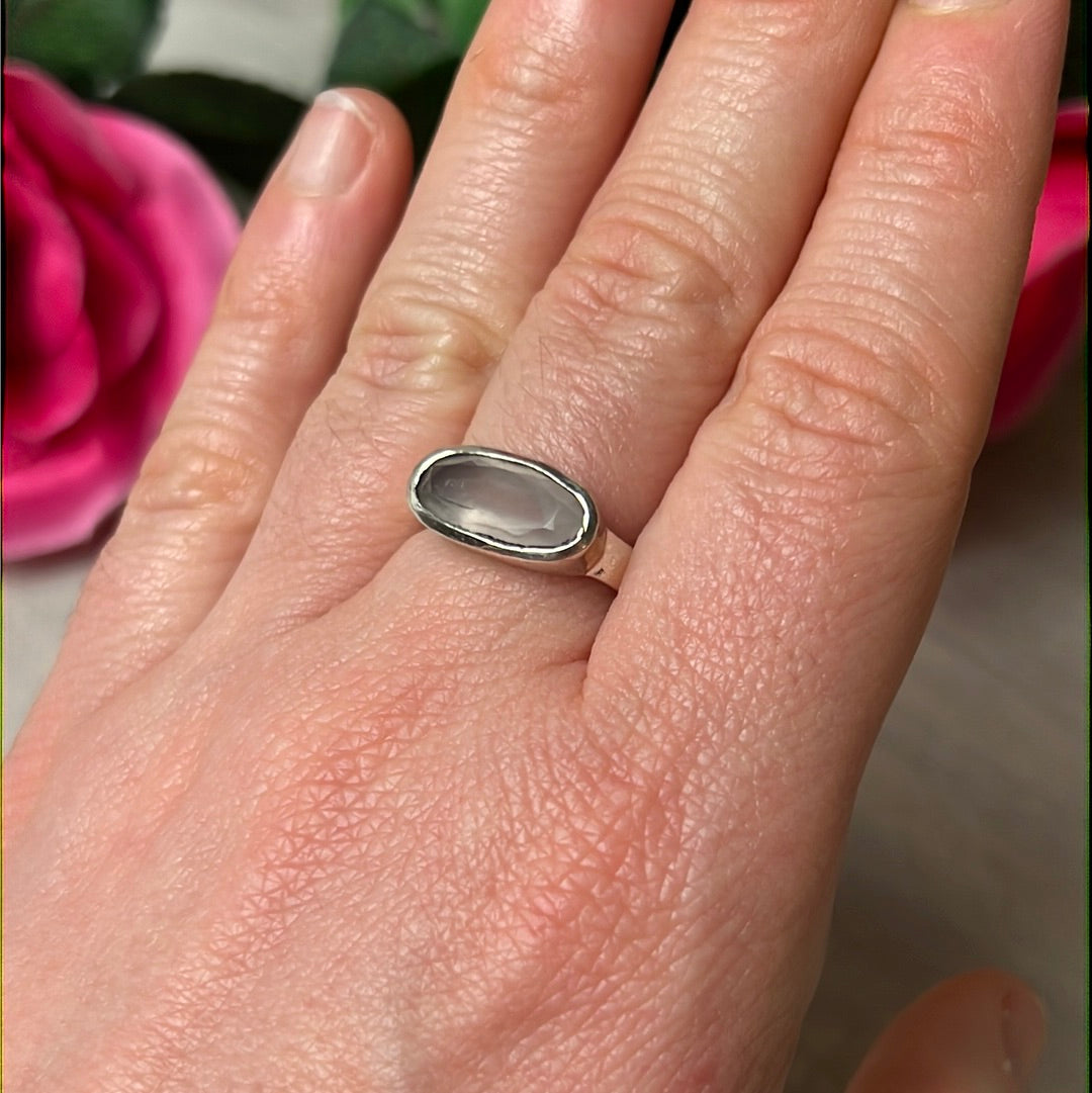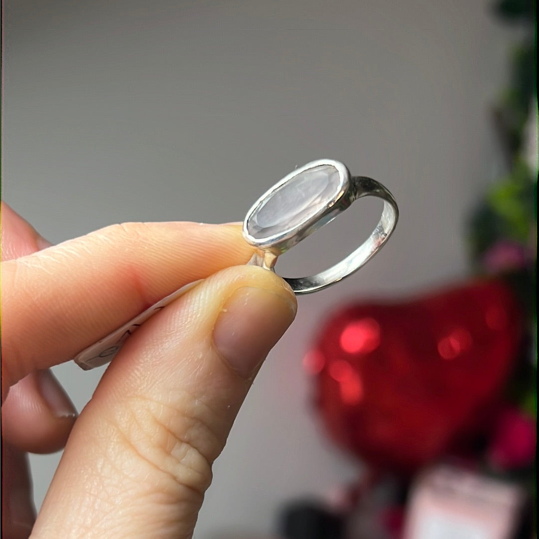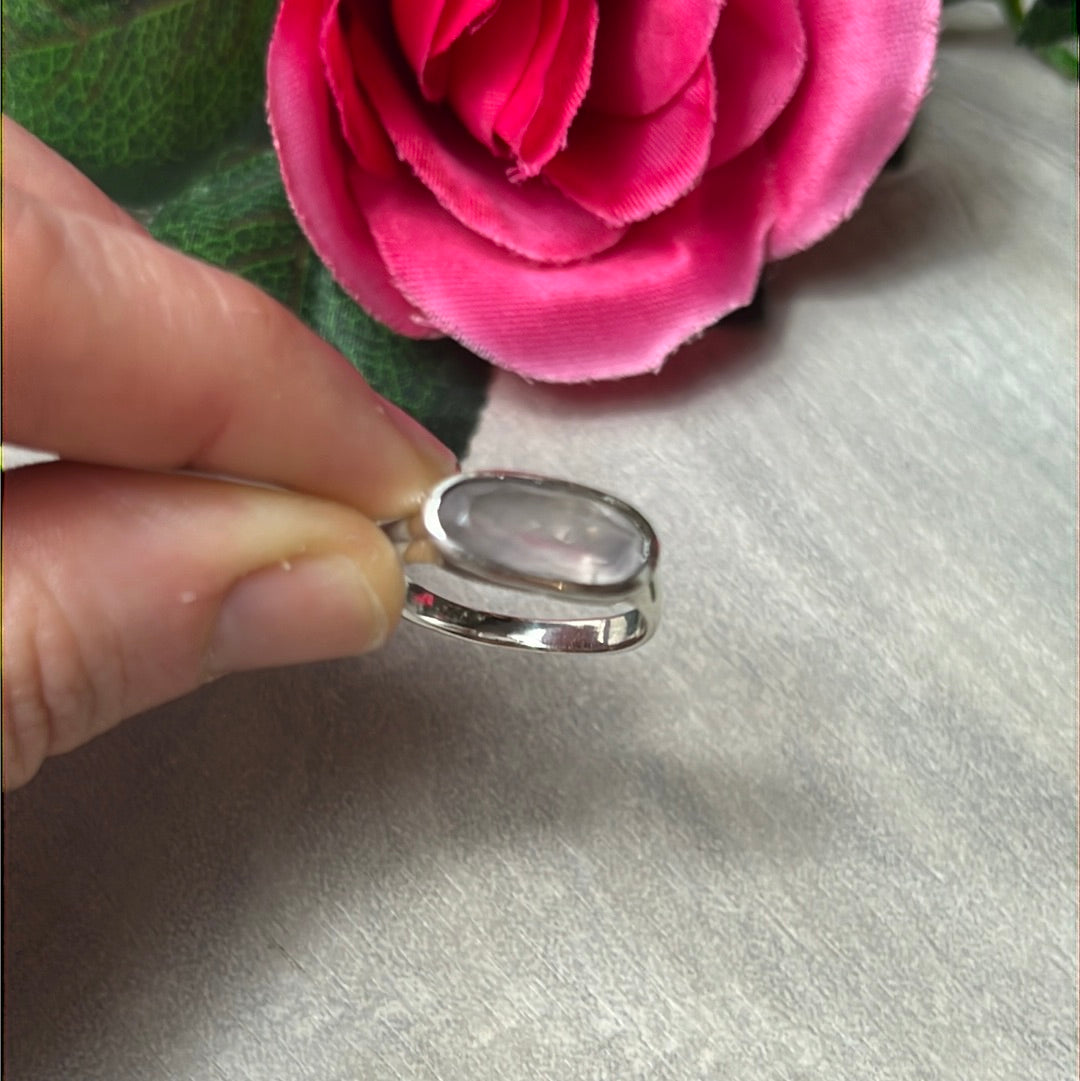 Rose Quartz Facet Bar 925 Ring - Size P 1/2- Q