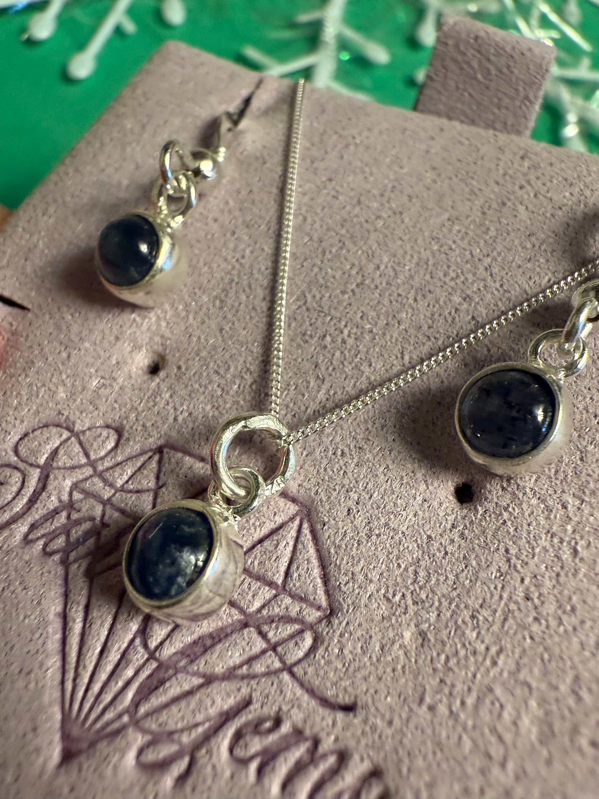 Blue Sapphire Sterling Silver Earring & Necklace Set