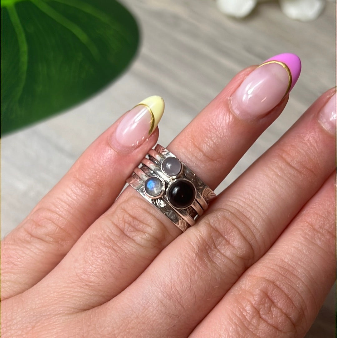 Trio Mix Fidget Spinner Ring - Sterling Silver 925 - Size J 1/2
