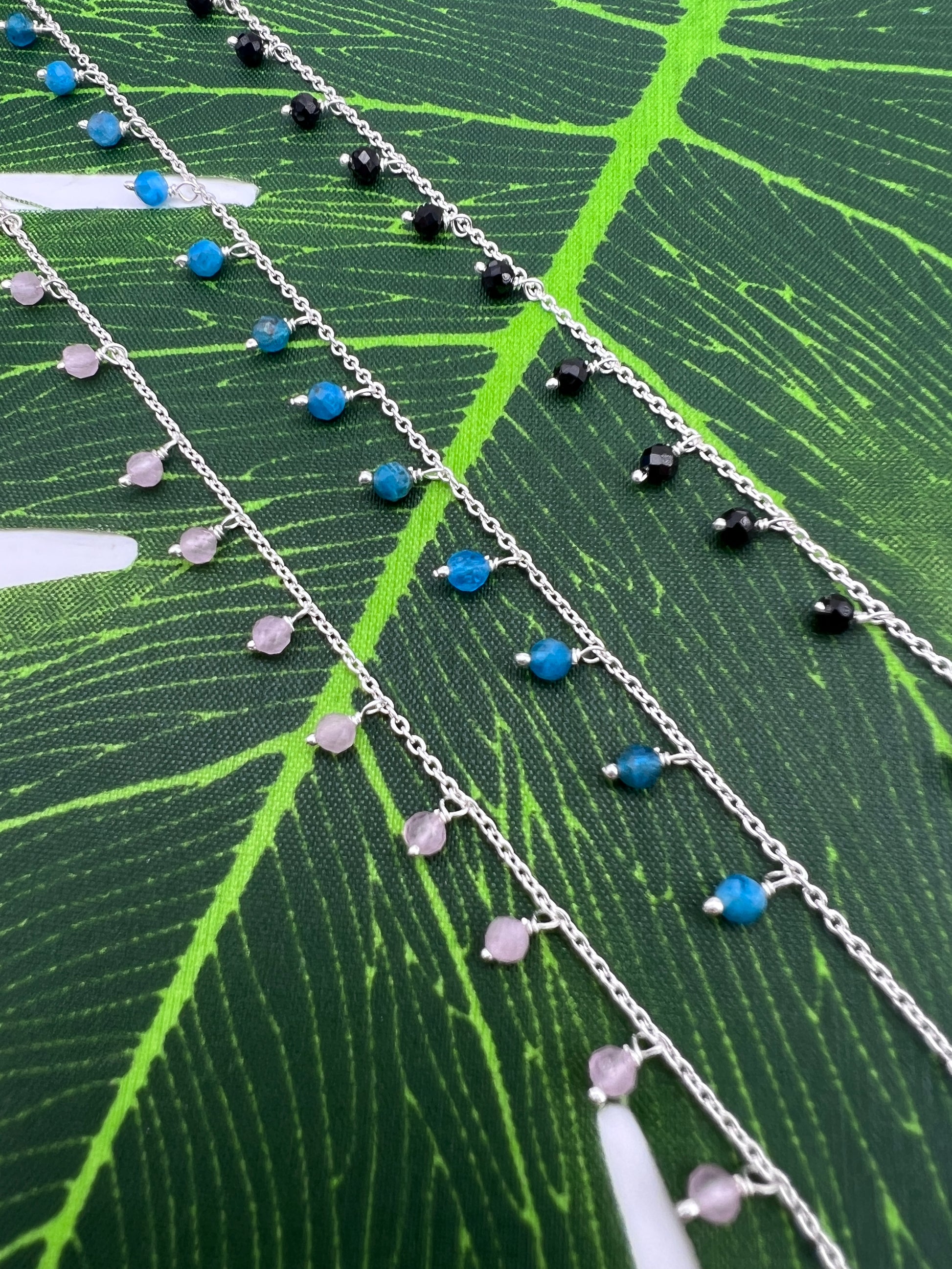 Adorn your delicate ankles with this delicate droplet silver Anklet! This beautiful piece of jewellery not only looks lovely on any beach holiday but also worn all year round in the uk! Sterling charms, gemstone facet beads and chain