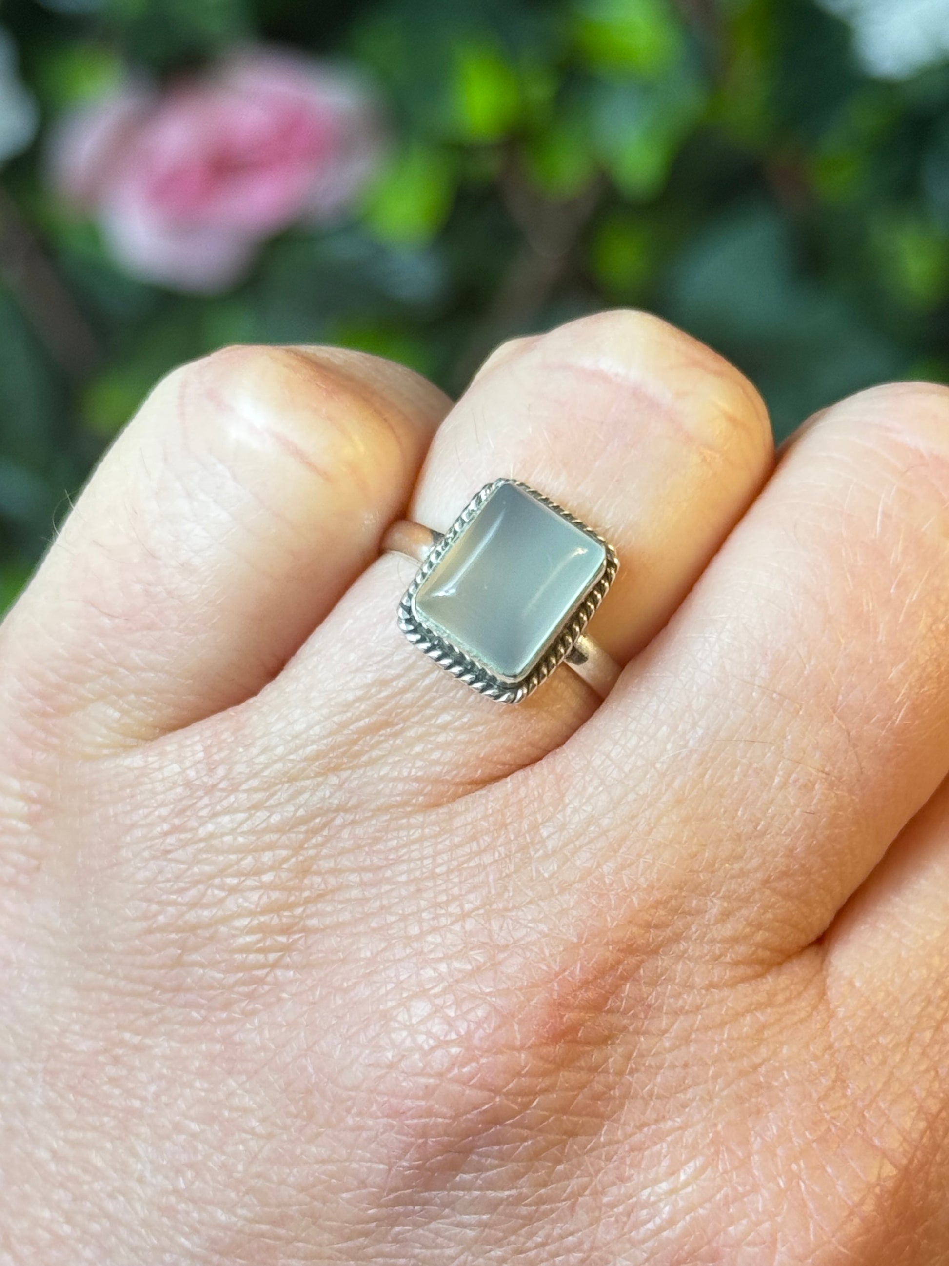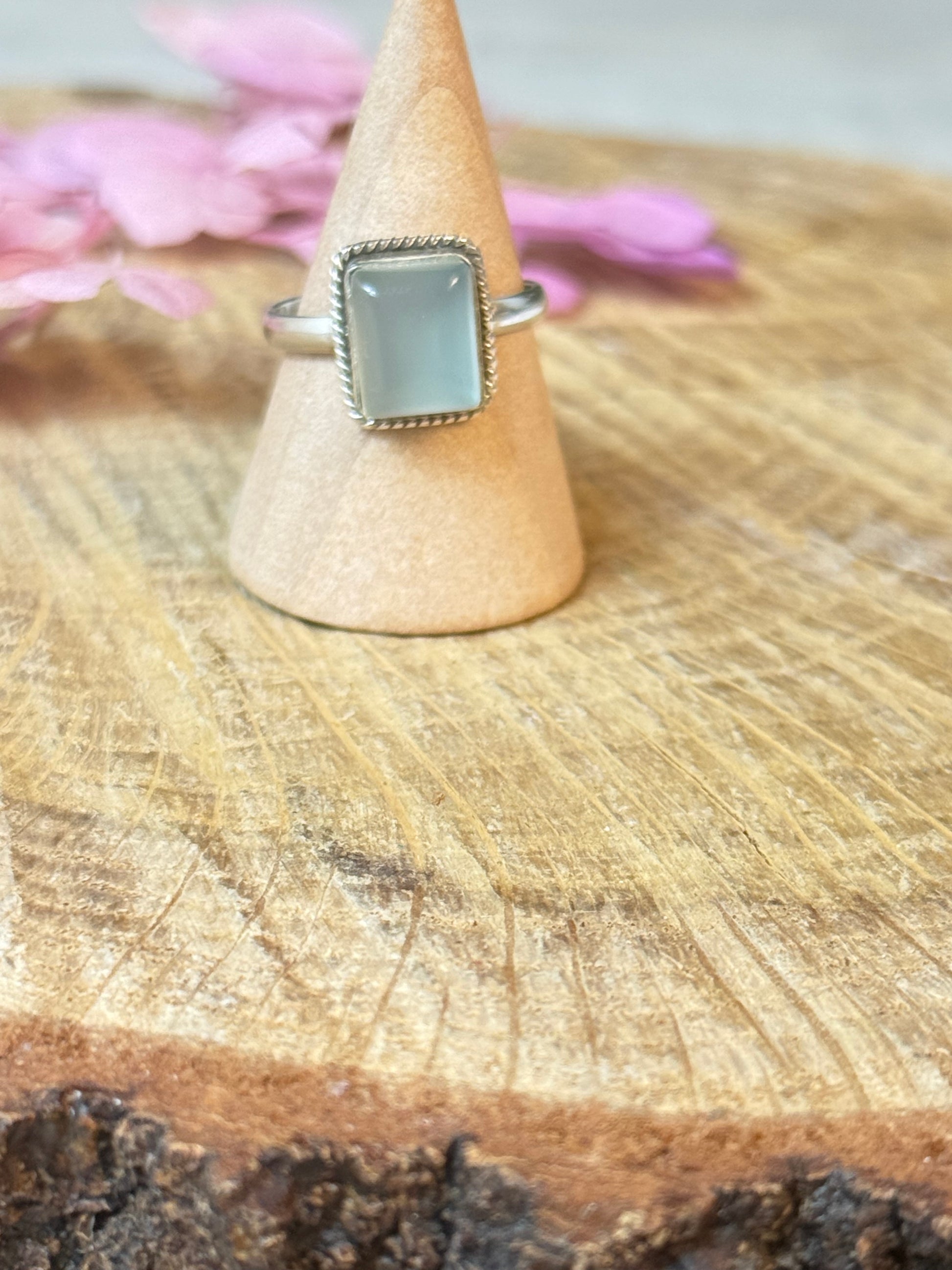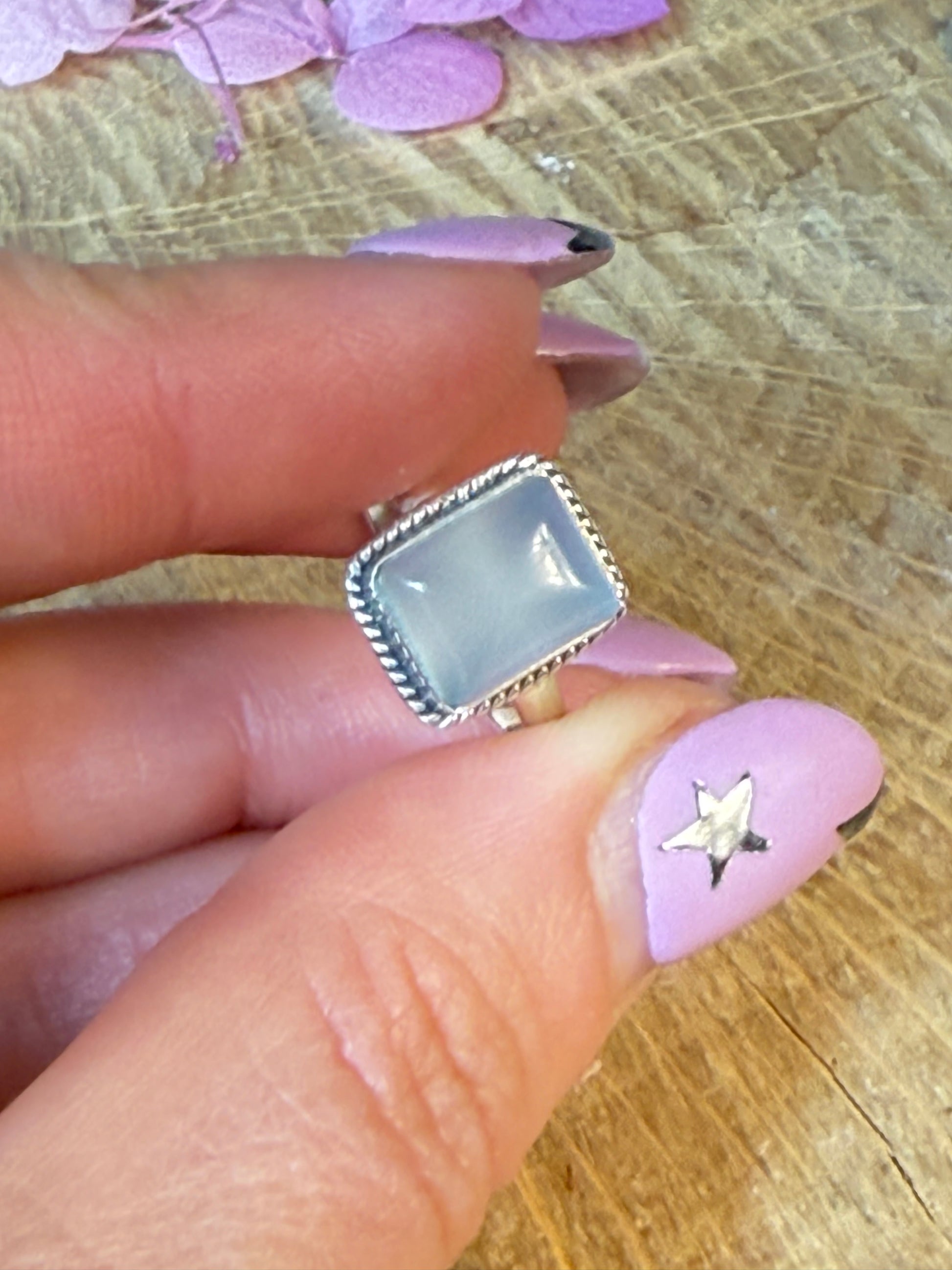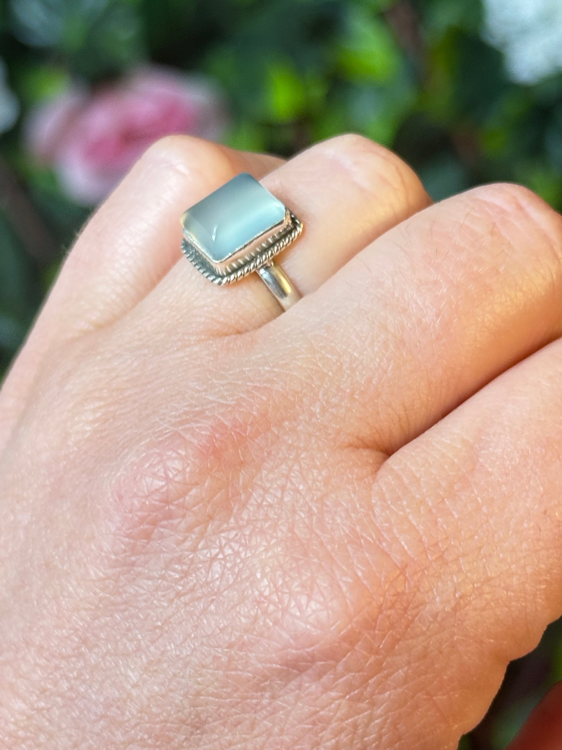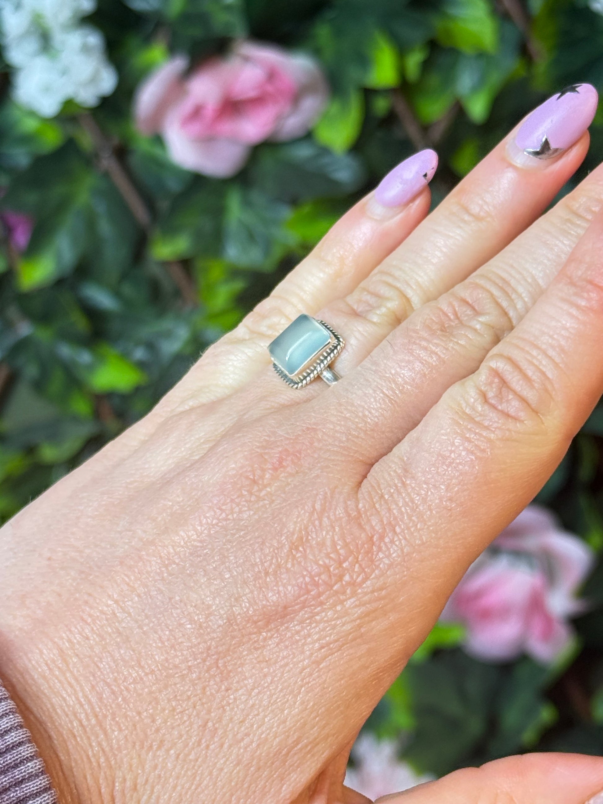 Square Aqua Chalcedony 925 Silver Ring - Size L 1/2